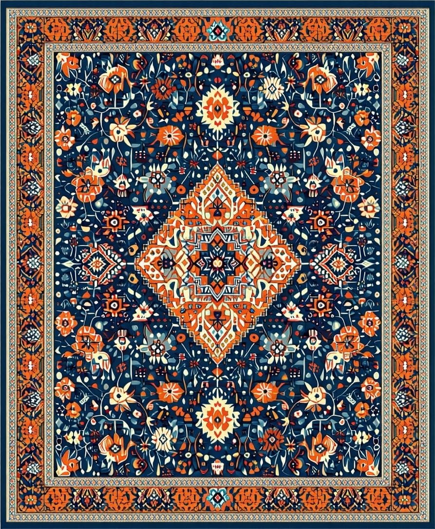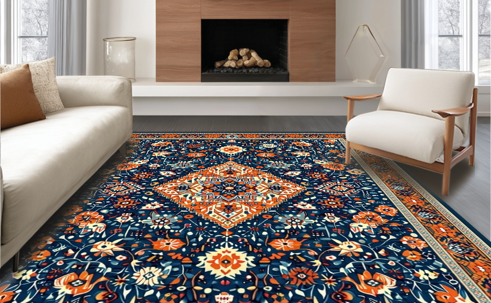 Ultra Soft Area Rug, Non Slip, Stain Resistant, Washable Area Rugs for Living Room, Bedroom, Sophisticated Soft Pastel Motif(Blue) Overview: