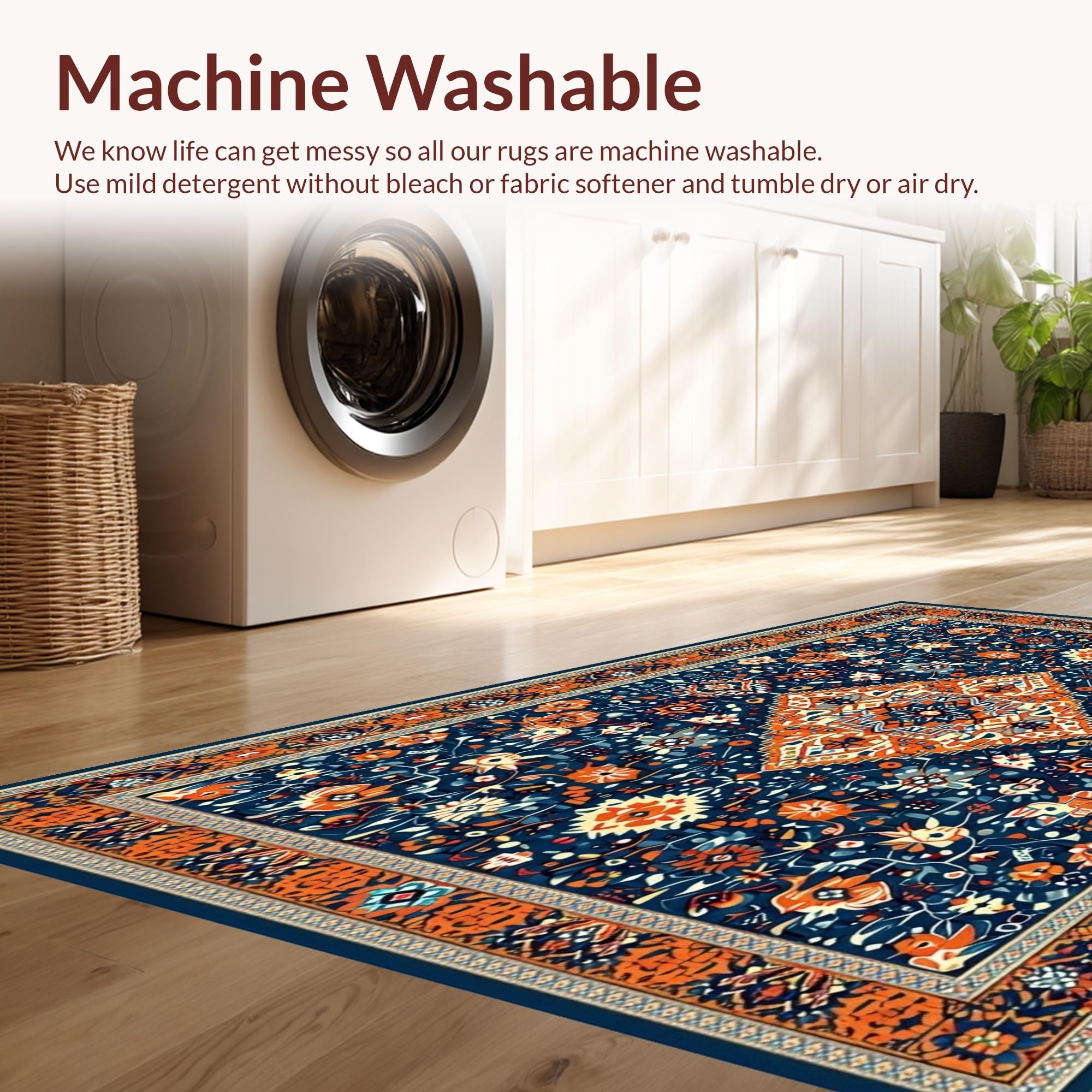 - Machine Washable: Our rugs can be easily thrown in the wash machine.