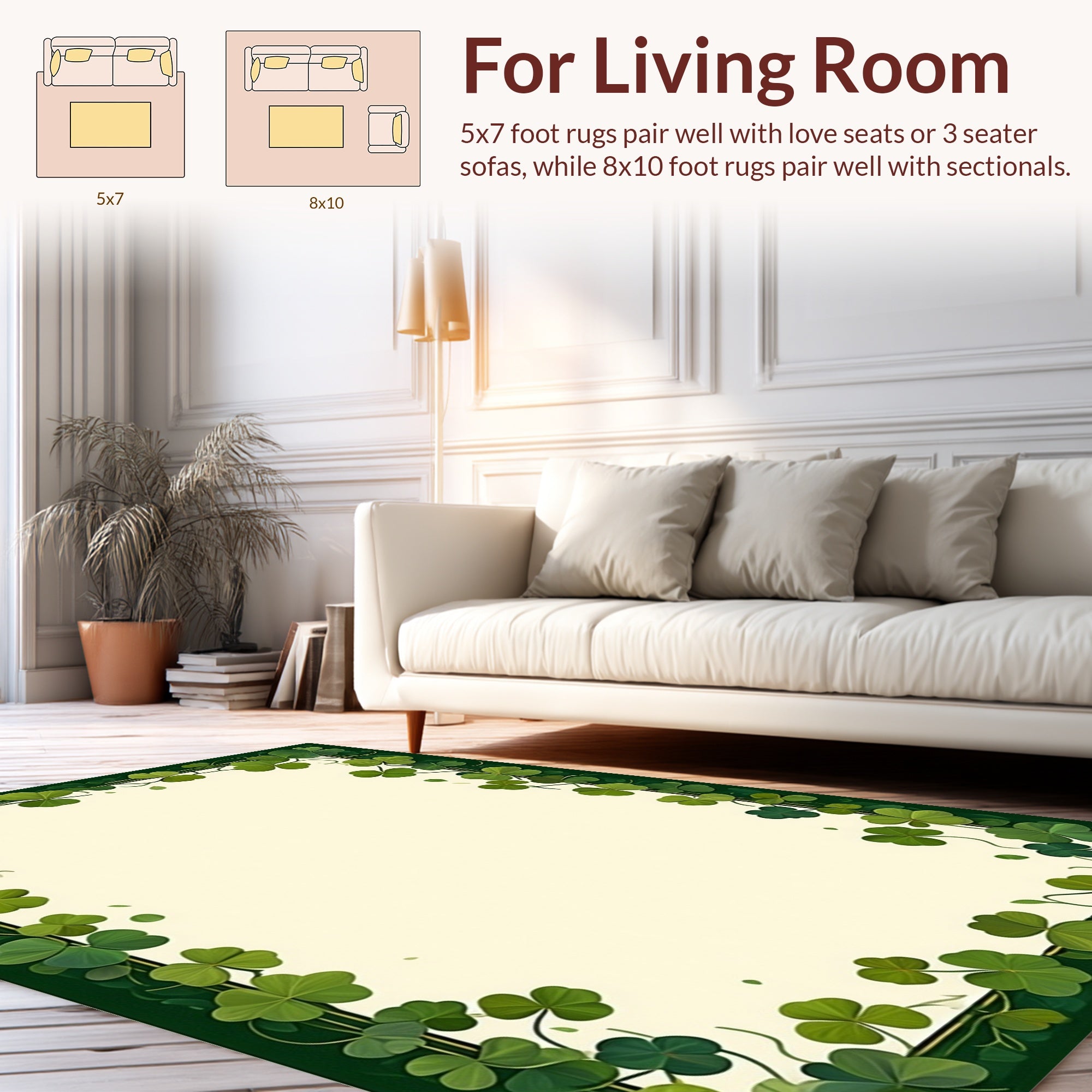 Flatwoven High Traffic Area Rug, Sophisticated St Patrick Day Theme, Non Slip, Stain Resistant, Washable Area Rugs for Living Room, Bedroom (Green) Overview: