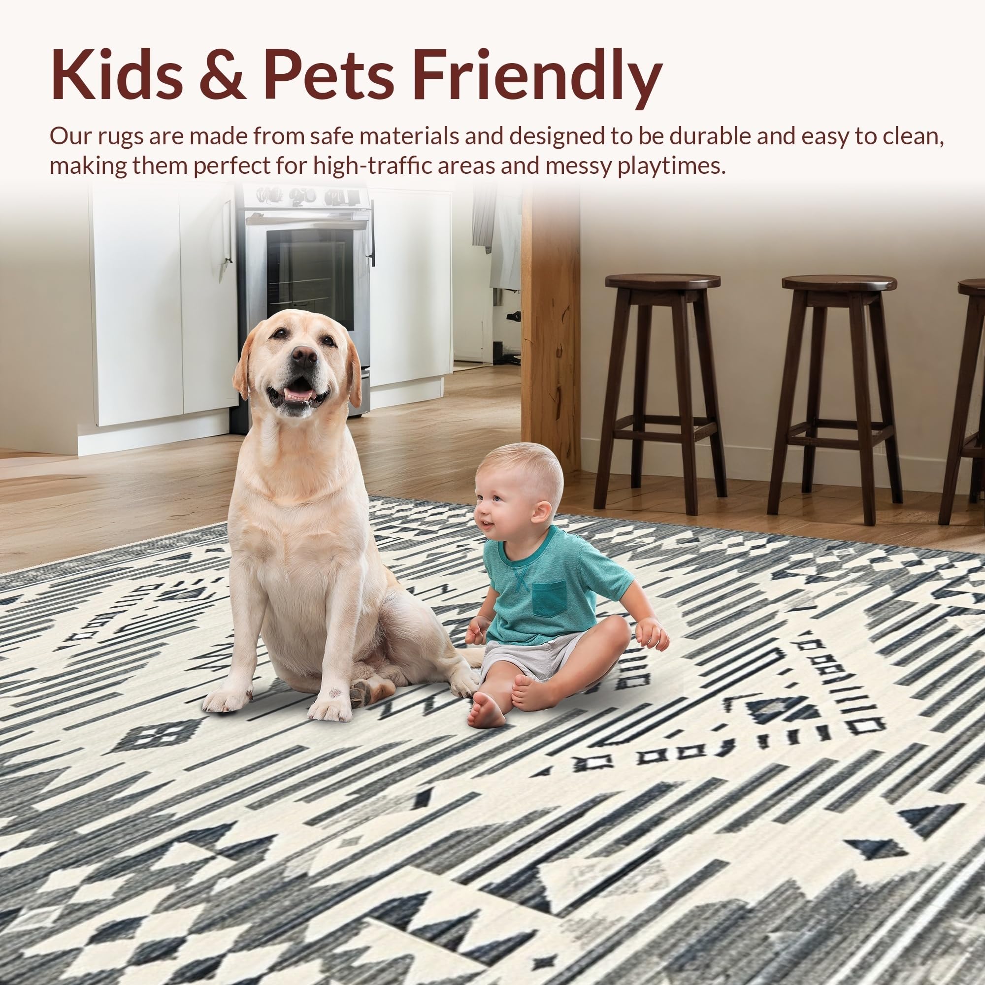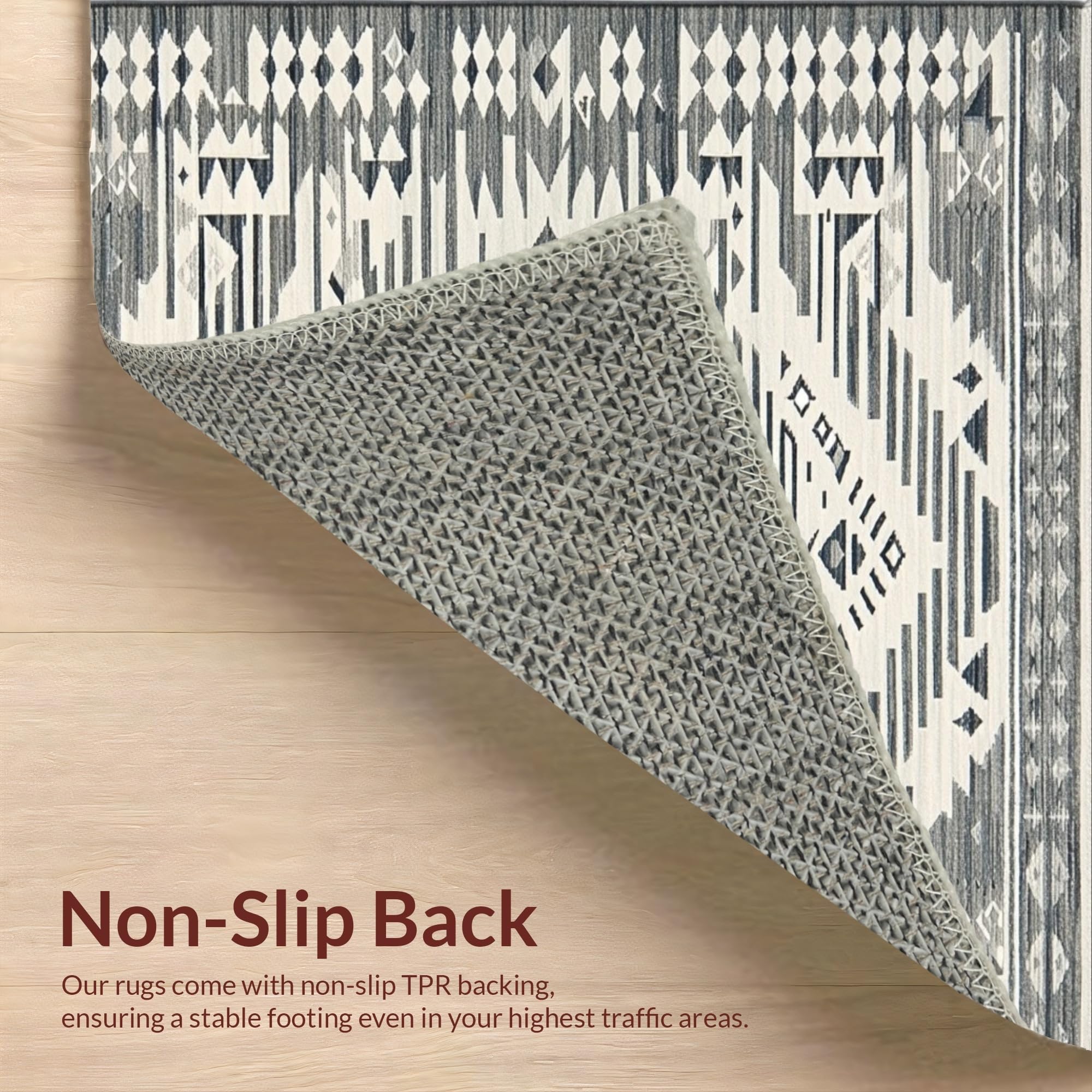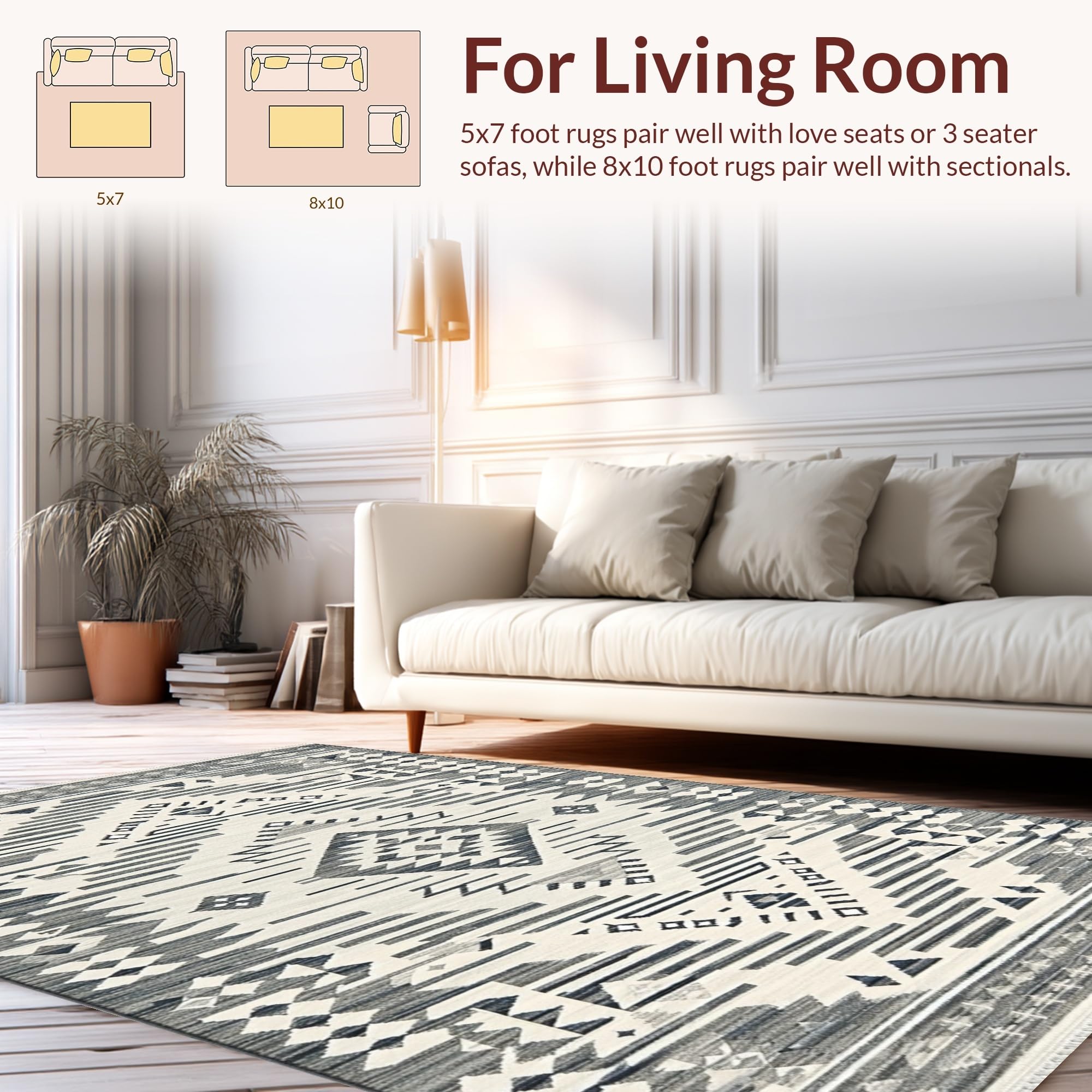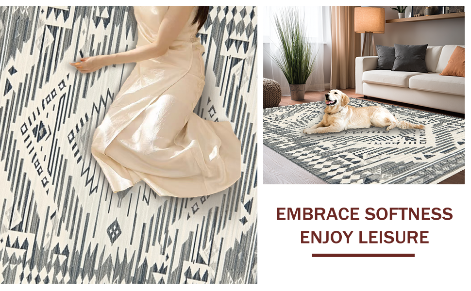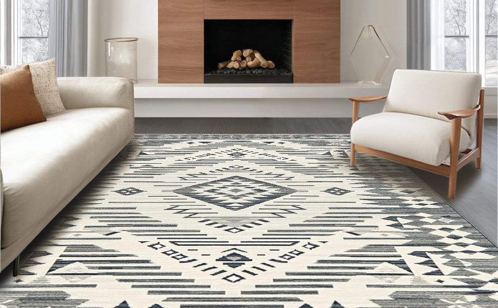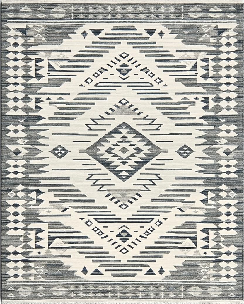 Ultra Soft Area Rug, Non Slip, Stain Resistant, Washable Area Rugs for Living Room, Bedroom, Sophisticated Symmetrical Cream Accents(Gray) Overview: