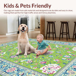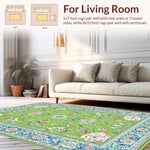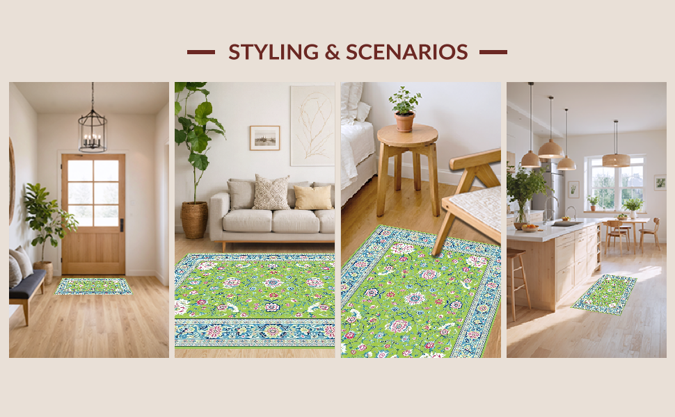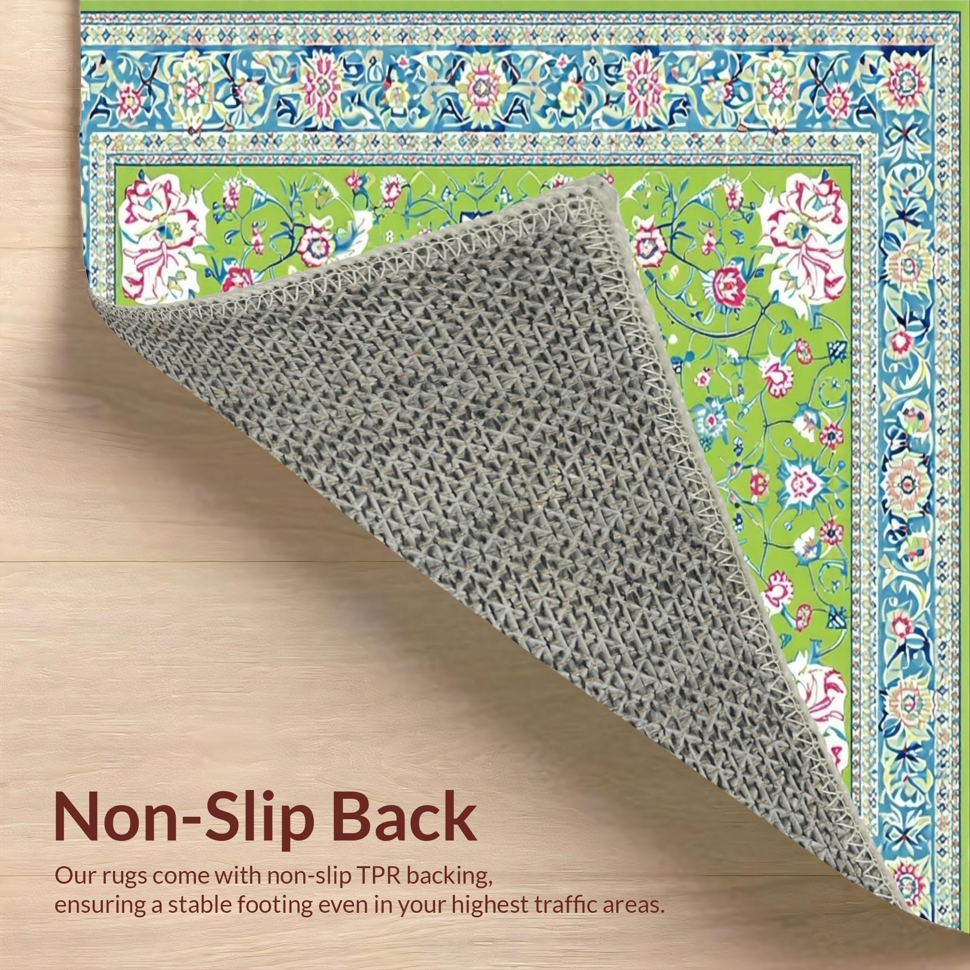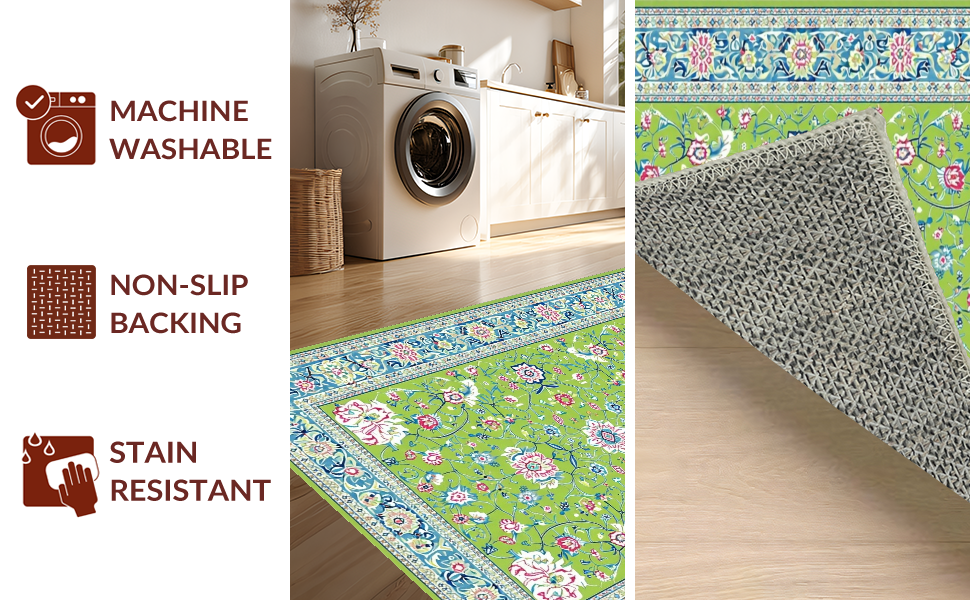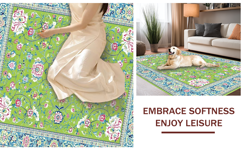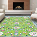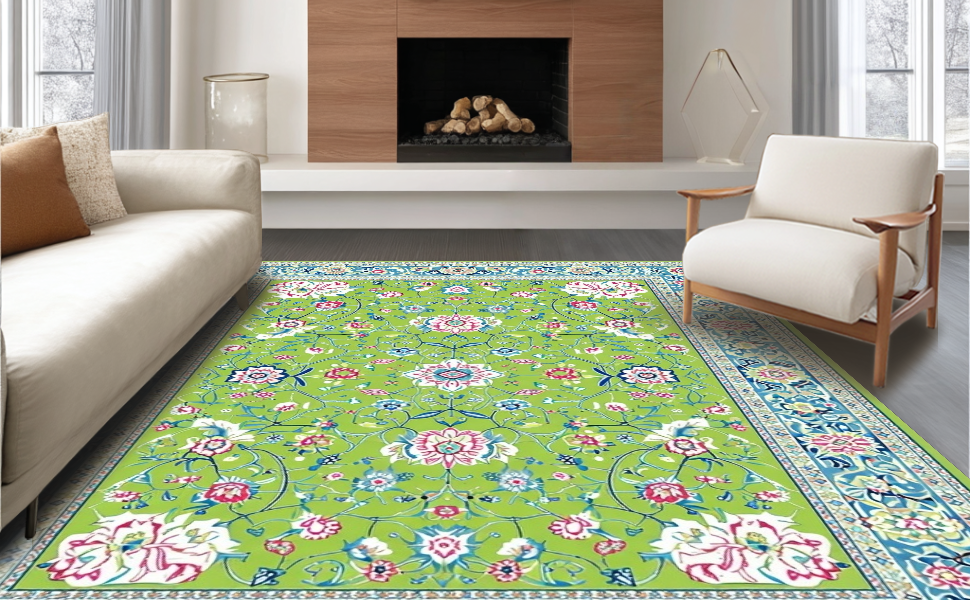 Ultra Soft Area Rug, Non Slip, Stain Resistant, Washable Area Rugs for Living Room, Bedroom, Sophisticated Symmetrical Floral Elements(Green) Overview: