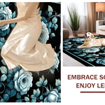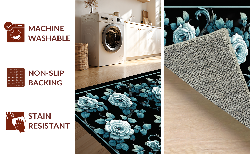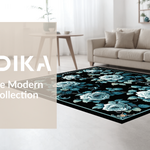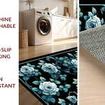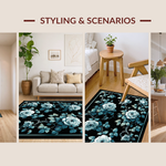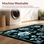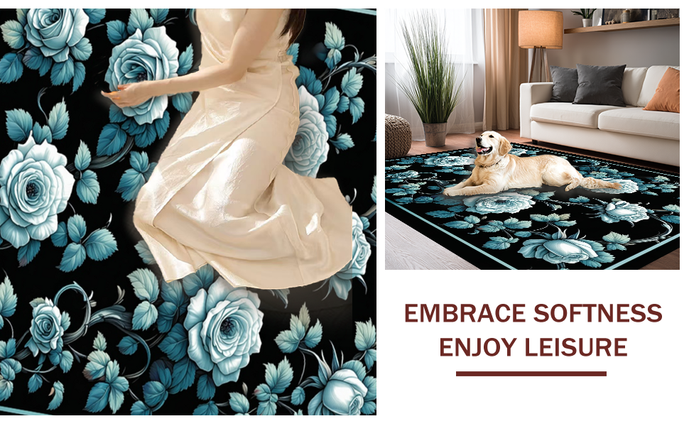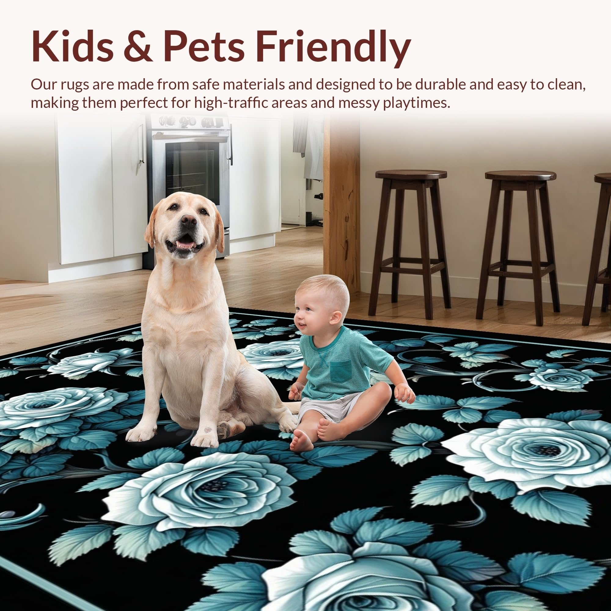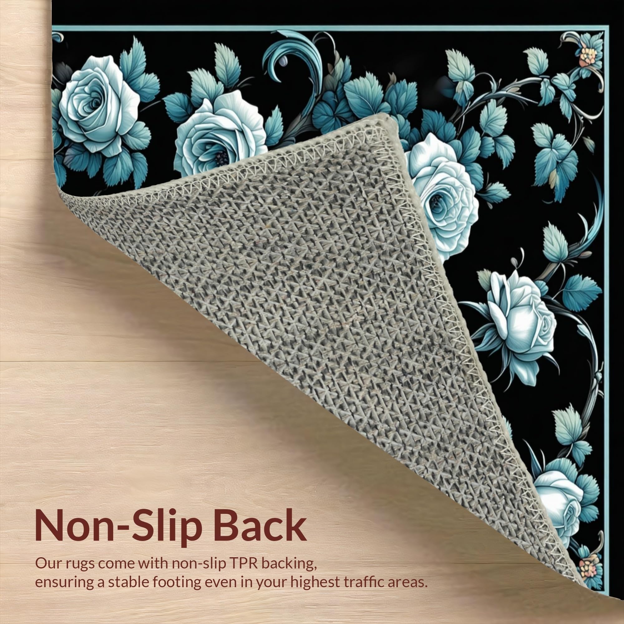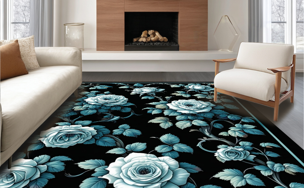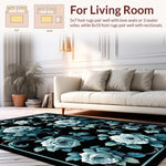 Ultra Soft Area Rug, Non Slip, Stain Resistant, Washable Area Rugs for Living Room, Bedroom, Sophisticated Teal Rose Arrangement(Blue) Overview: