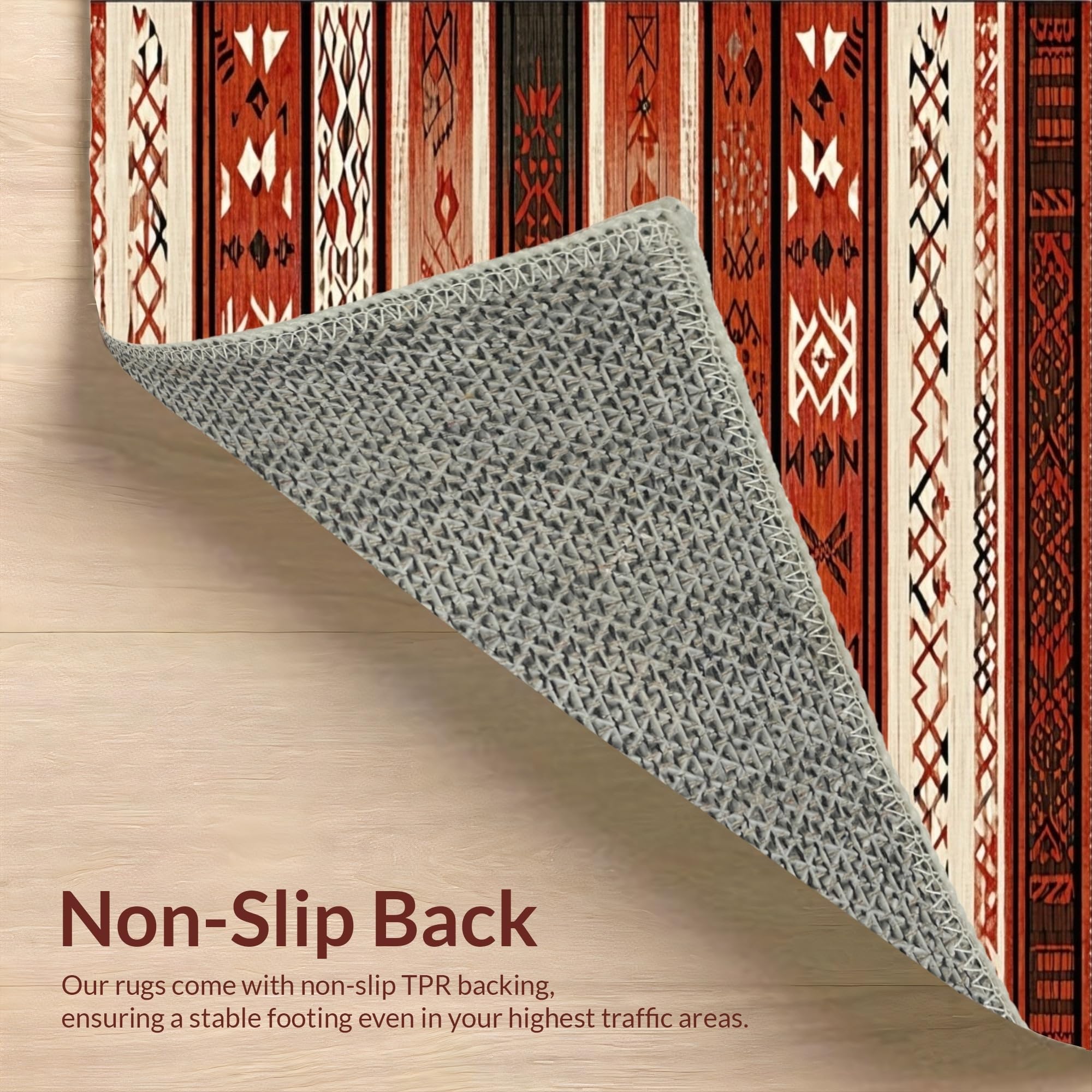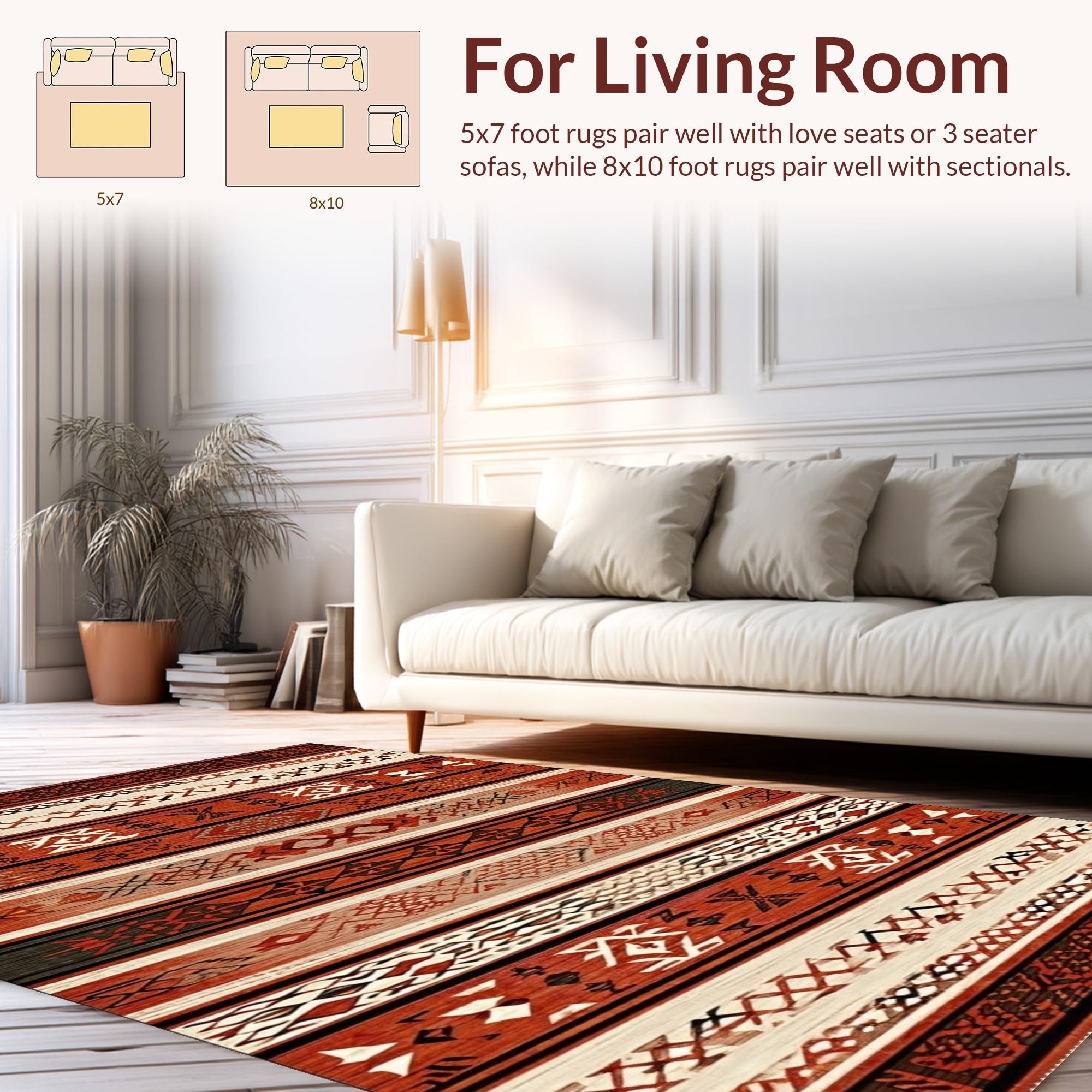 Ultra Soft Area Rug, Non Slip, Stain Resistant, Washable Area Rugs for Living Room, Bedroom, Sophisticated Trellis Design in Rust Tones(Red) Overview: