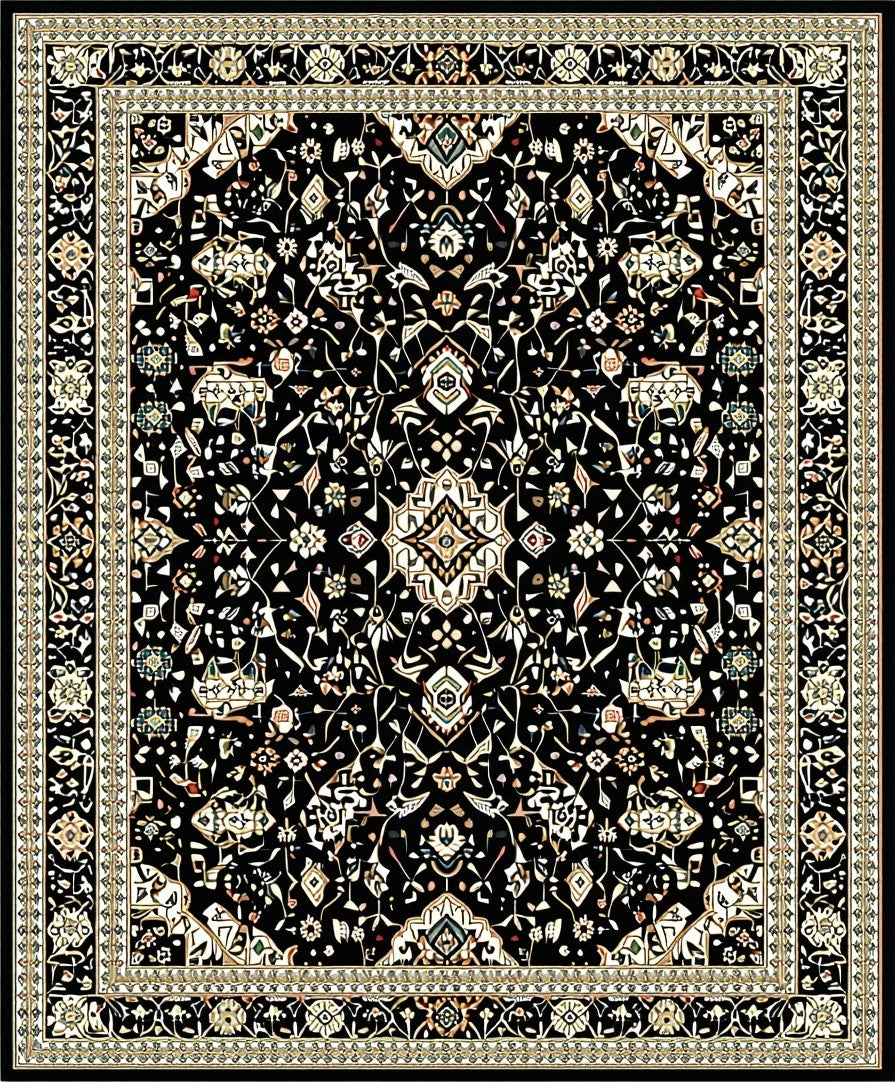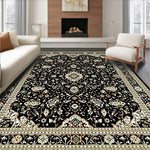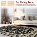 Flatwoven High Traffic Area Rug, Sophisticated Vintage Floral Arrangement, Non Slip, Stain Resistant, Washable Area Rugs for Living Room, Bedroom (Black) Overview: