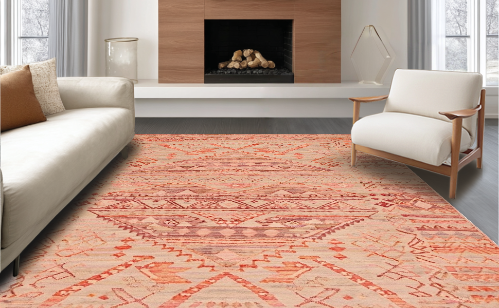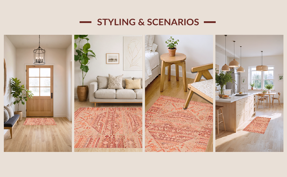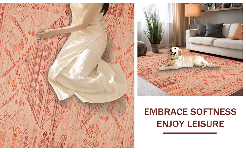 Ultra Soft Area Rug, Non Slip, Stain Resistant, Washable Area Rugs for Living Room, Bedroom, Sophisticated Warm Palette Elements(Red) Overview: