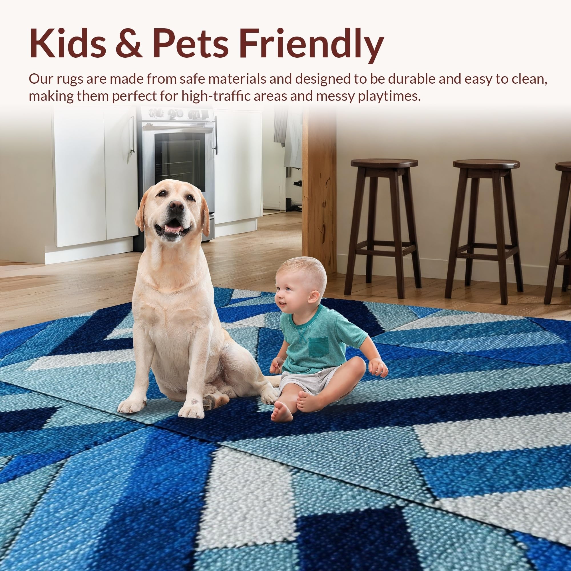 Ultra Soft Area Rug, Non Slip, Stain Resistant, Washable Area Rugs for Living Room, Bedroom, Space-Themed Round Kids Playroom Rug Washable(Blue) Overview: