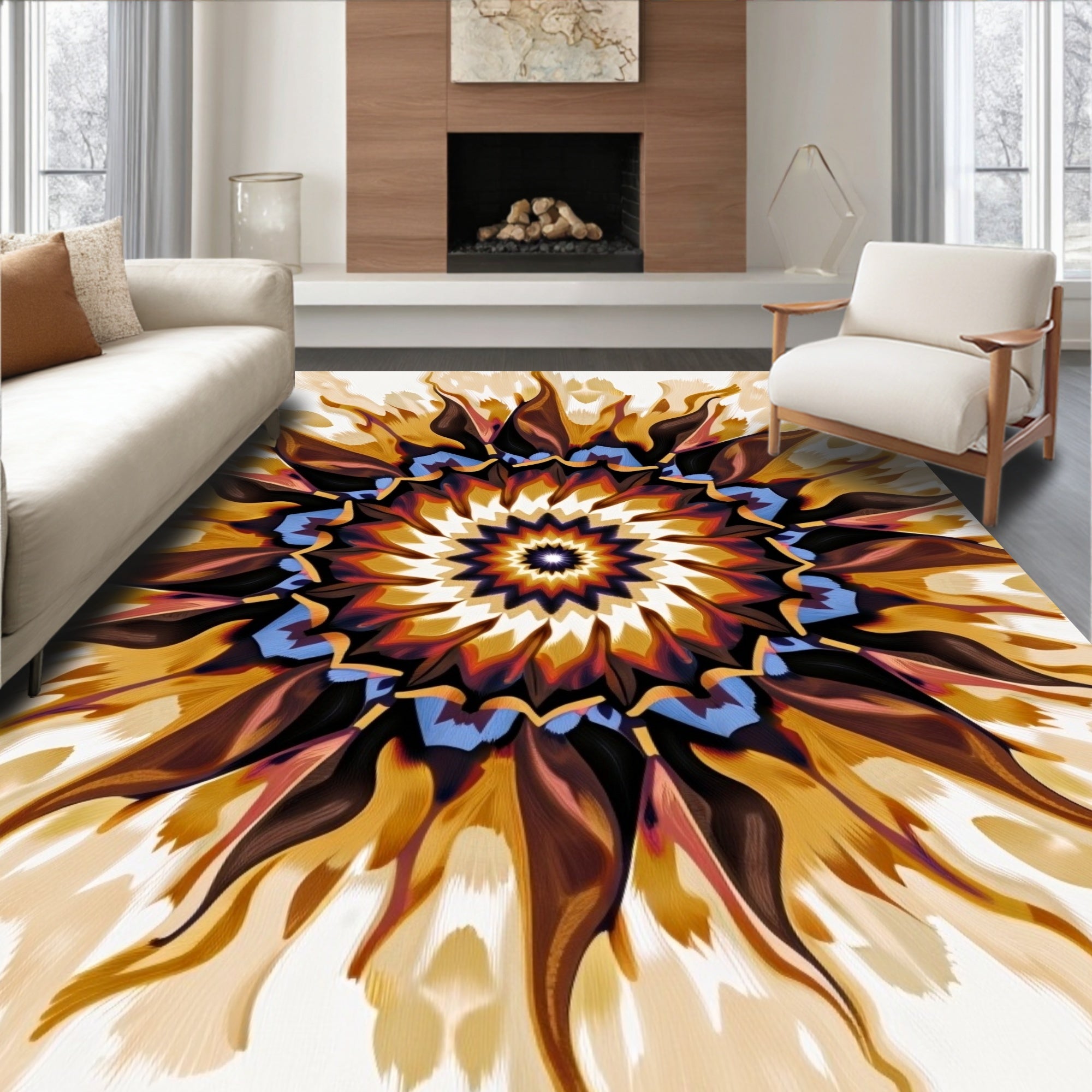 Flatwoven High Traffic Area Rug, Spiral Galaxy Whimsical Luxurious Elegant Comfortable, Non Slip, Stain Resistant, Washable Area Rugs for Living Room, Bedroom (Brown) Overview: