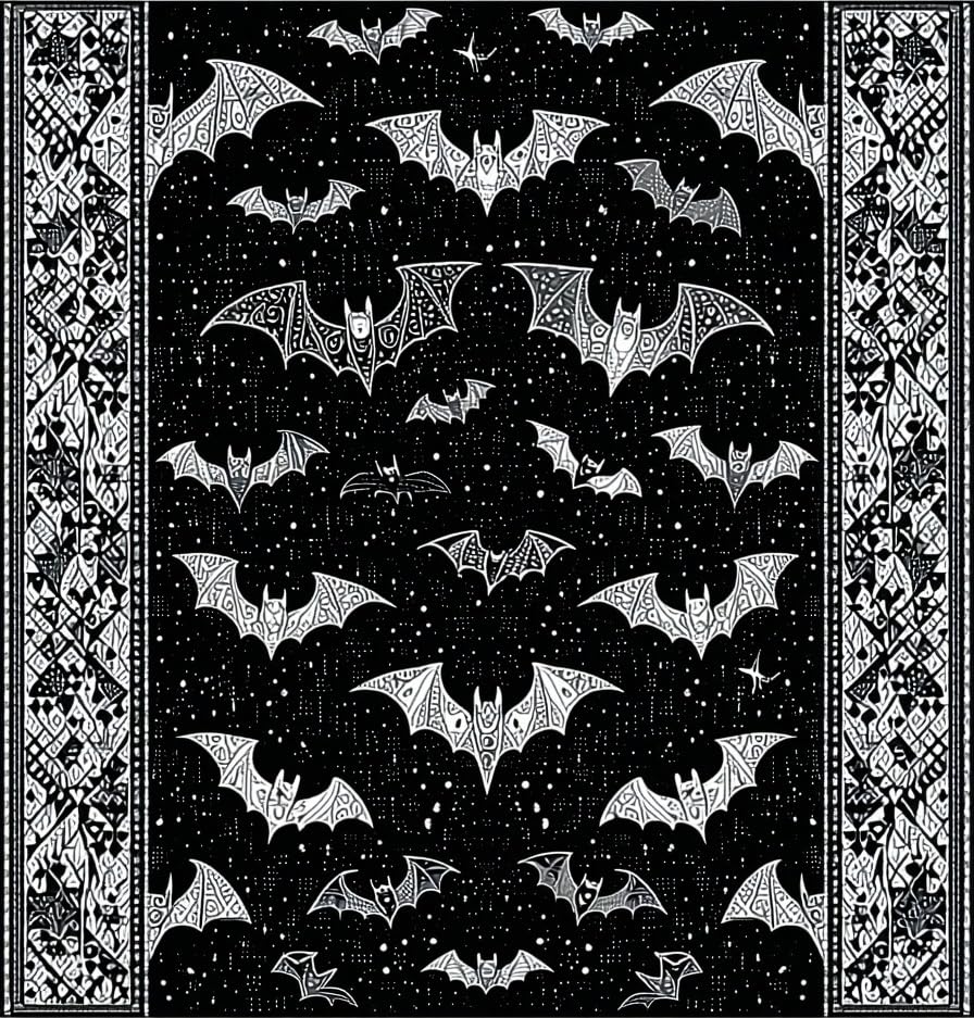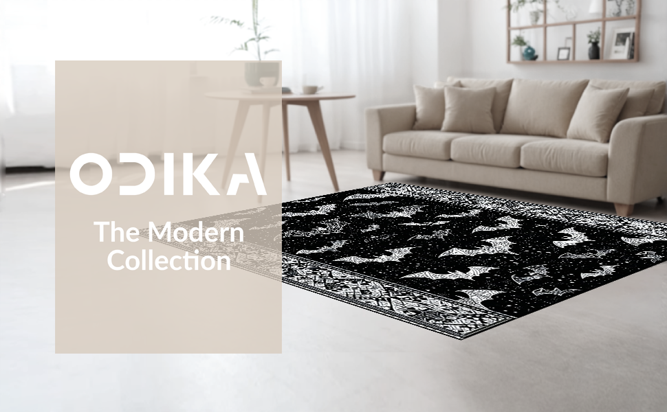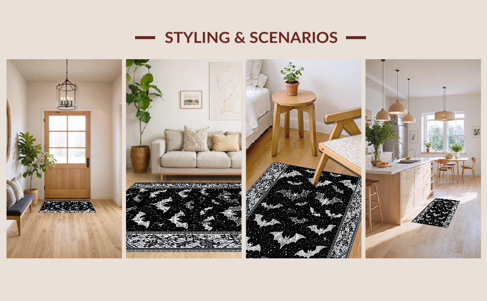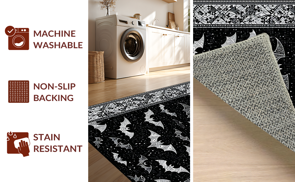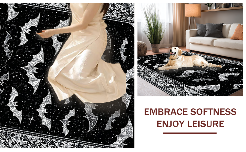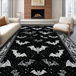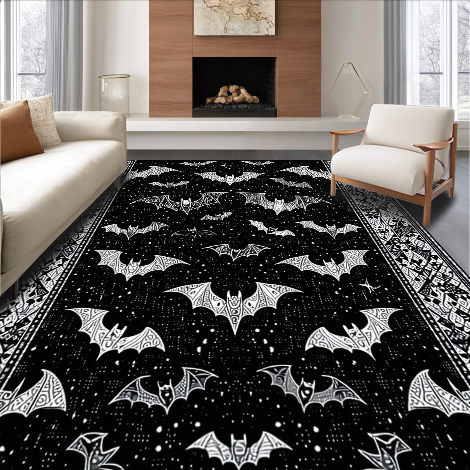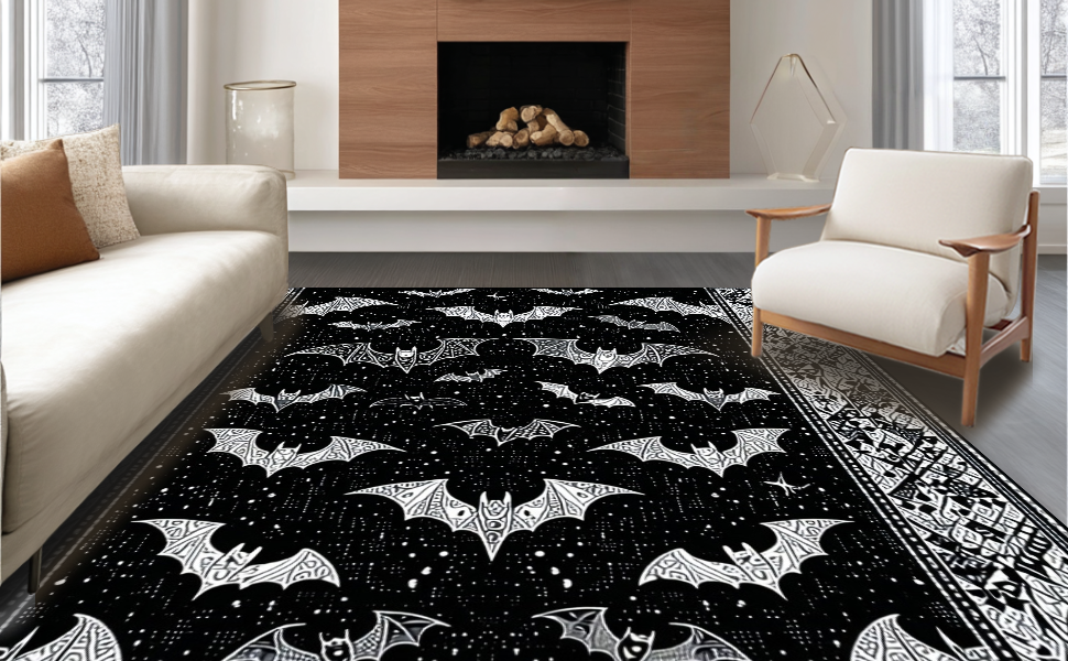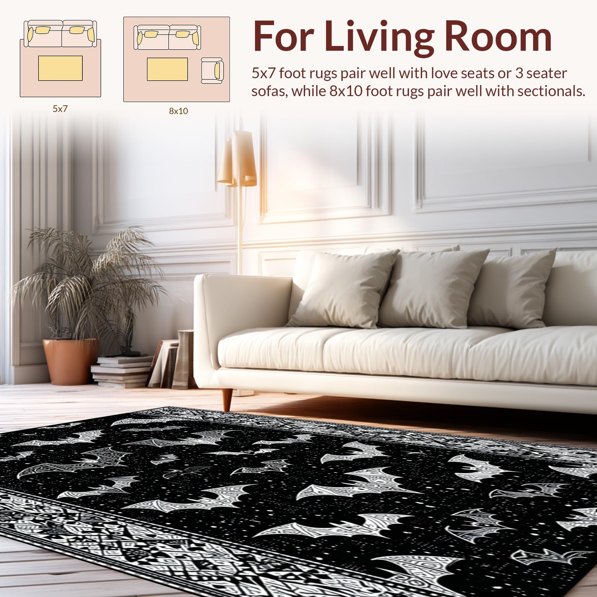 Ultra Soft Area Rug, Non Slip, Stain Resistant, Washable Area Rugs for Living Room, Bedroom, Spooky Monochrome Bat Design(Black) Overview:
