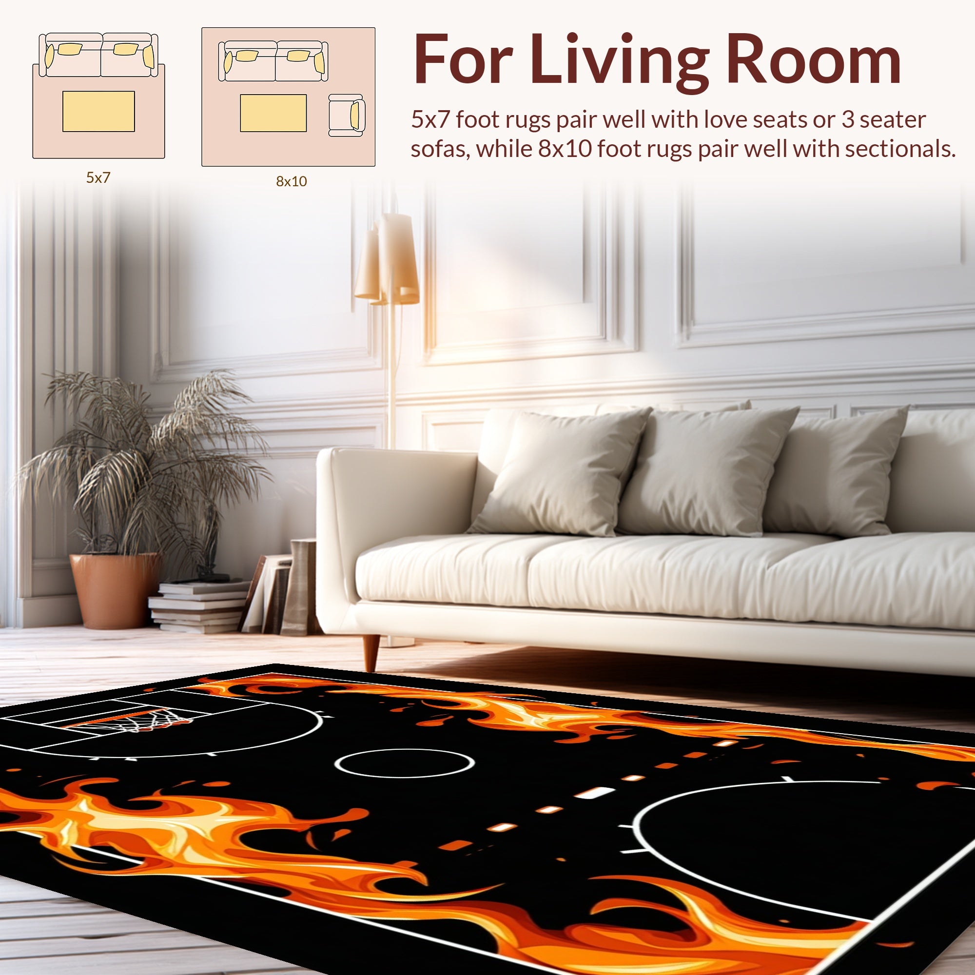Flatwoven High Traffic Area Rug, Sporty Modern Graphic Design, Non Slip, Stain Resistant, Washable Area Rugs for Living Room, Bedroom (Orange) Overview: