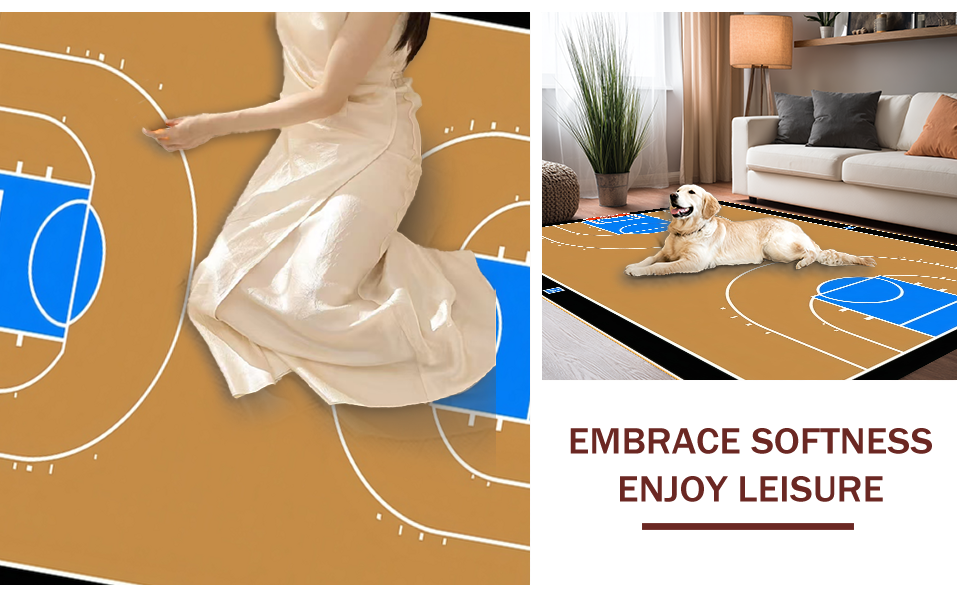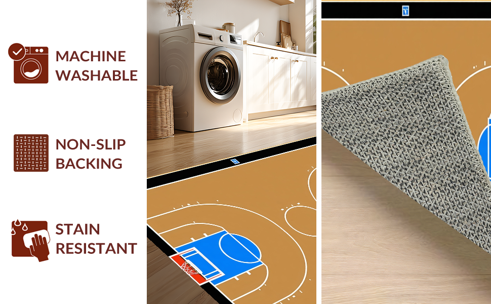 Ultra Soft Area Rug, Non Slip, Stain Resistant, Washable Area Rugs for Living Room, Bedroom, Sporty Vibrant Basketball Motif(Beige) Overview: