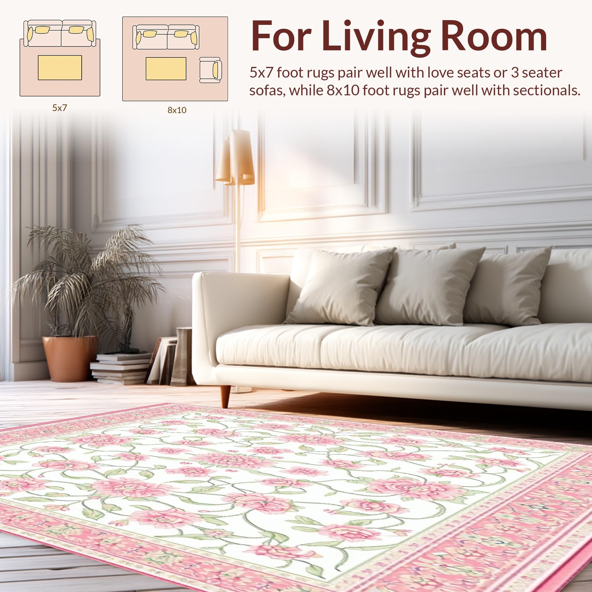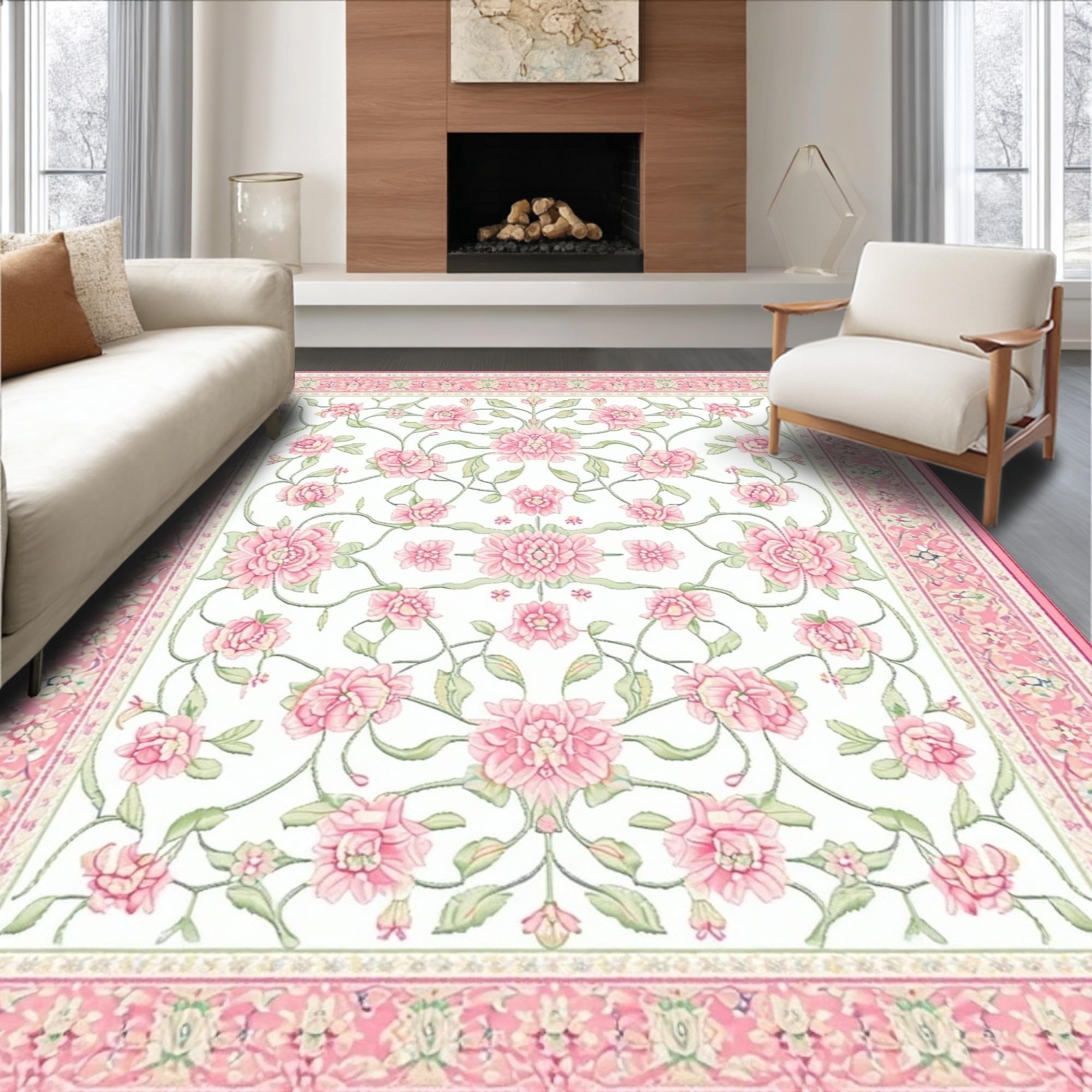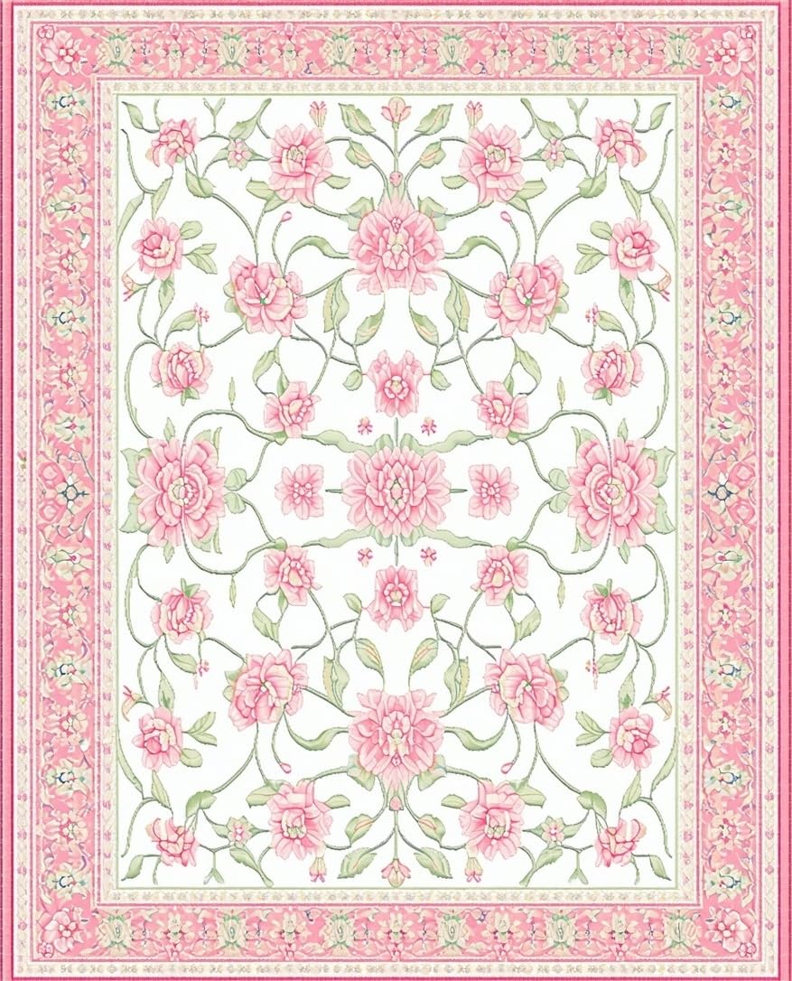Ultra Soft Area Rug, Non Slip, Stain Resistant, Washable Area Rugs for Living Room, Bedroom, Spring Floral Area(Pink) Overview: