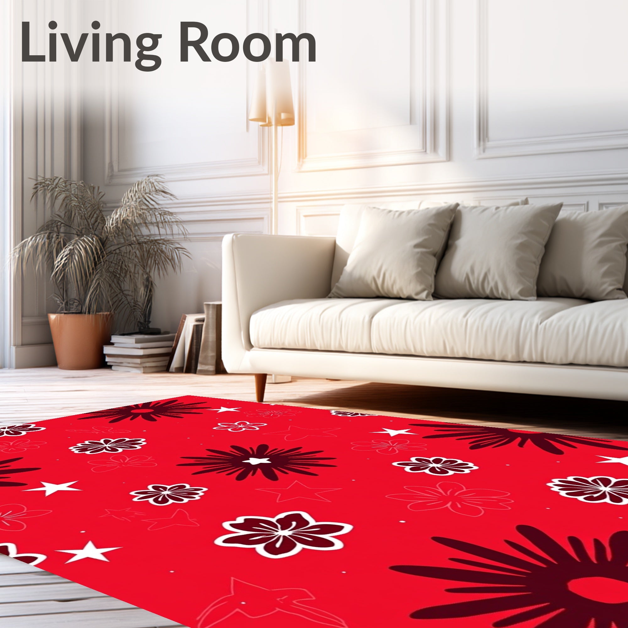 Ultra Soft Area Rug, Non Slip, Stain Resistant, Washable Area Rugs for Living Room, Bedroom, Starlight Blossom Joyful Celebration Contemporary Artistic(Red) Overview: