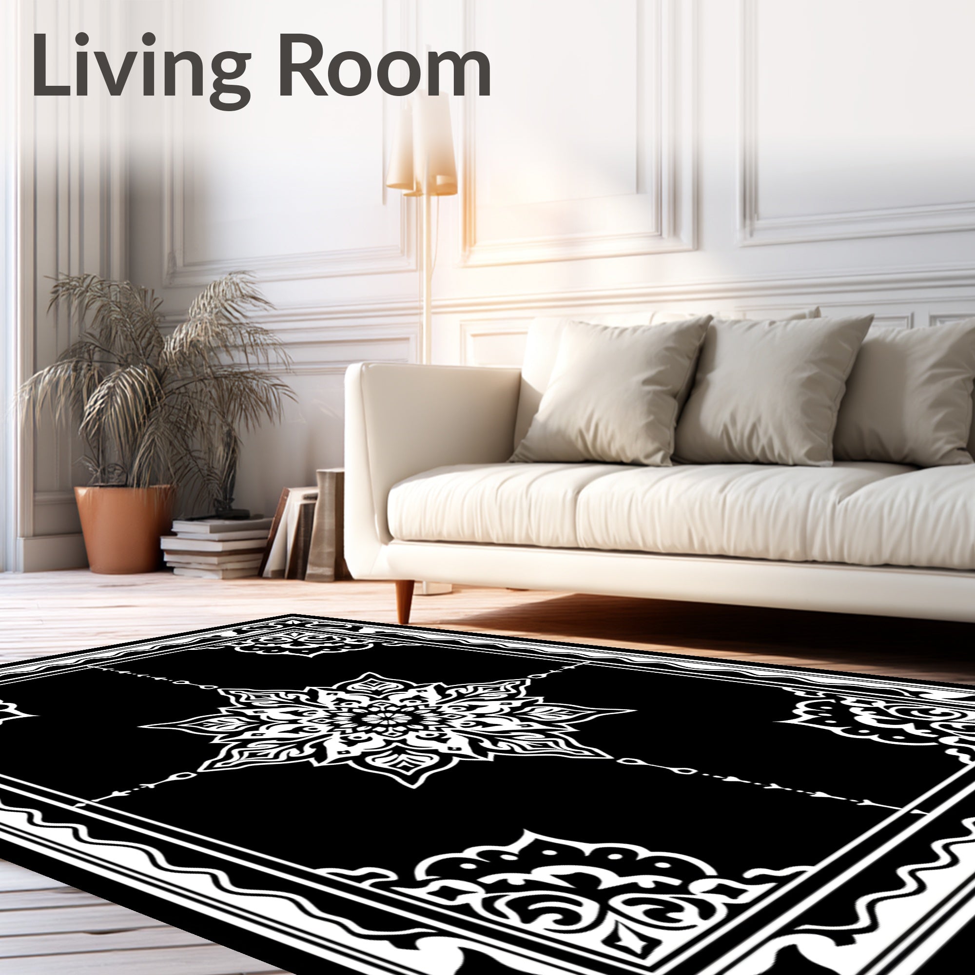 Flatwoven High Traffic Area Rug, Starlit Medallion in Ornate Fantasy Design, Non Slip, Stain Resistant, Washable Area Rugs for Living Room, Bedroom (Black) Overview: