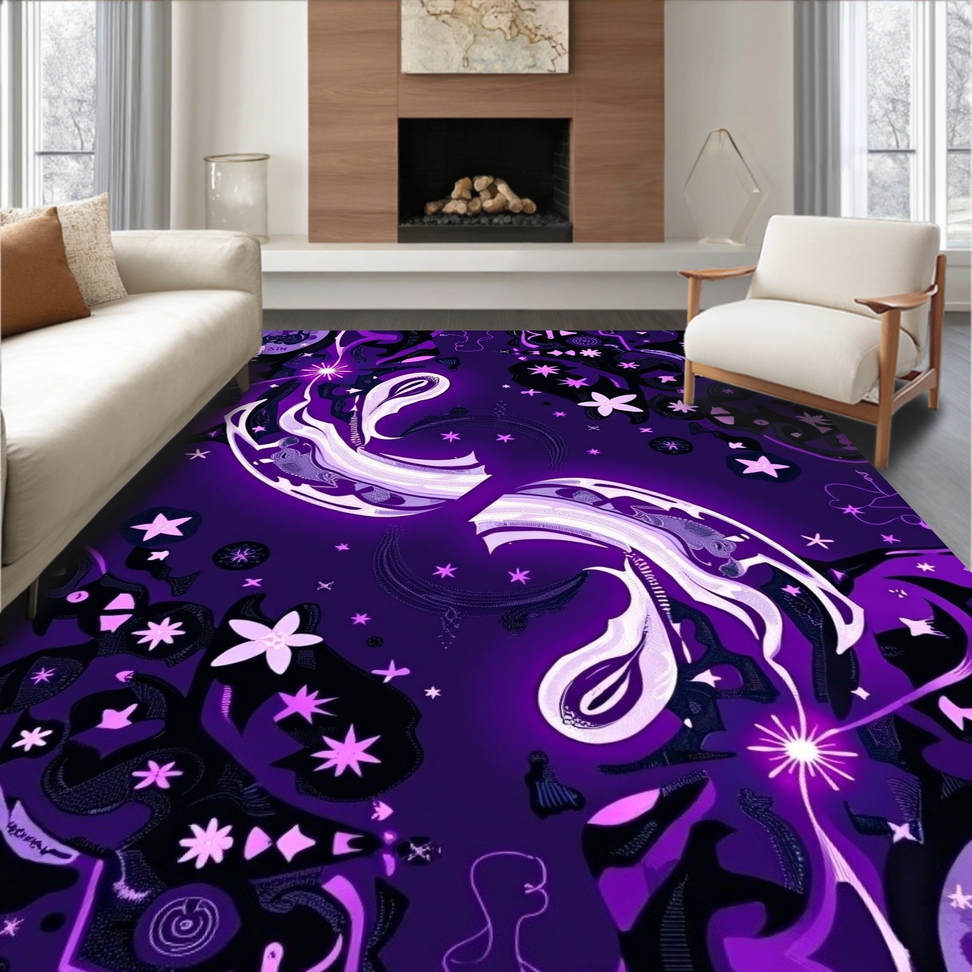 Ultra Soft Area Rug, Non Slip, Stain Resistant, Washable Area Rugs for Living Room, Bedroom, Starry Night Galaxy Cosmic Universe Enchanted Fantasy(Purple) Overview: