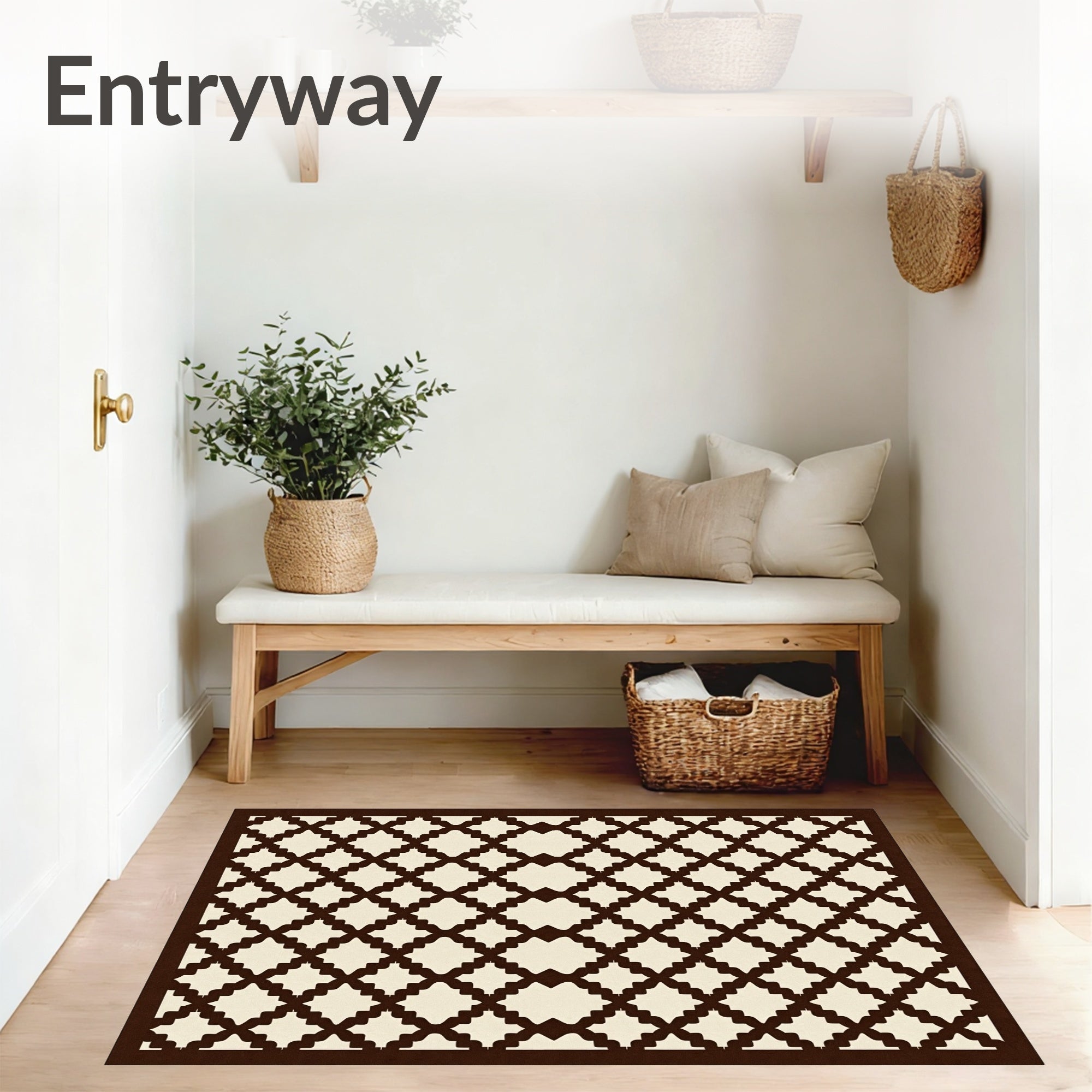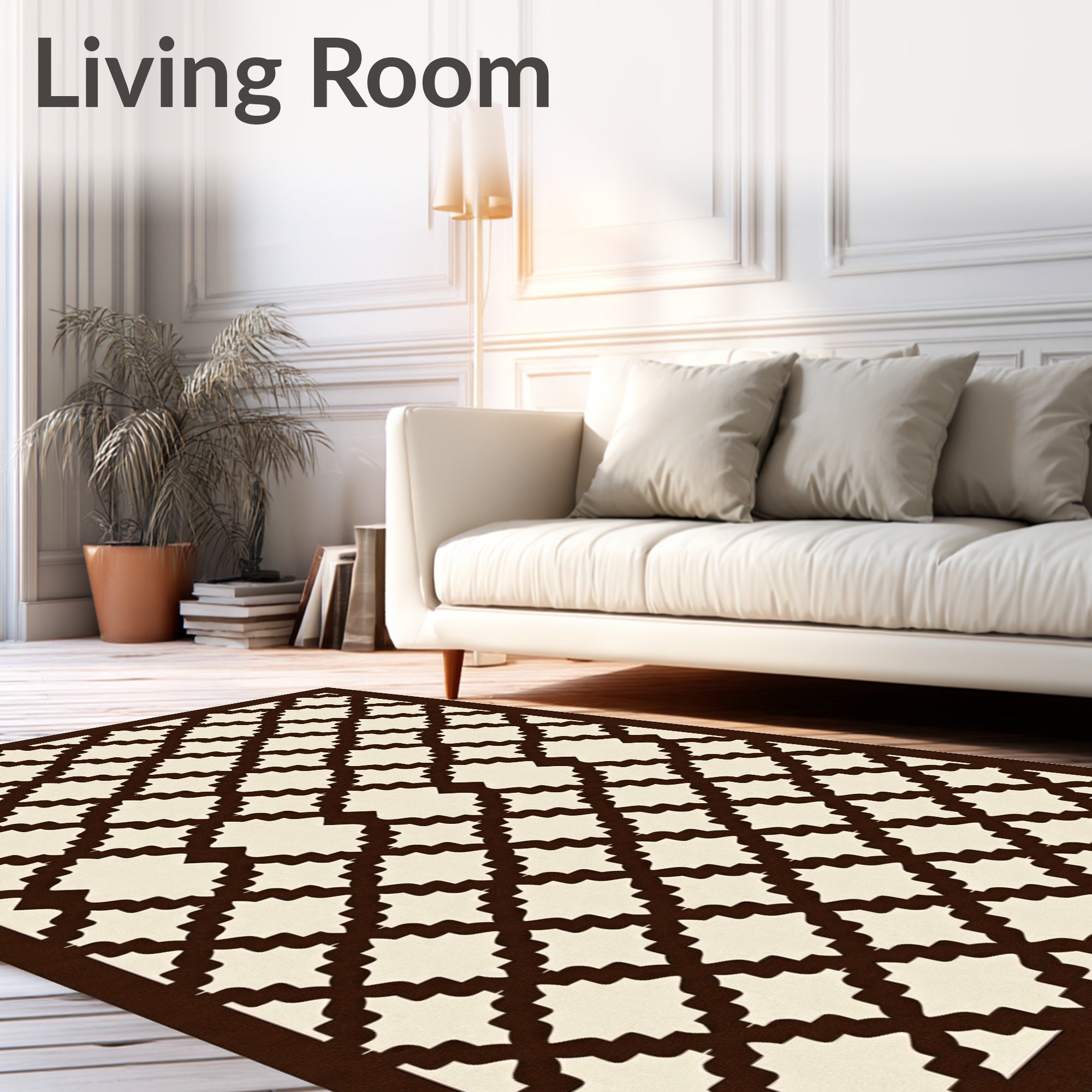 Ultra Soft Area Rug, Non Slip, Stain Resistant, Washable Area Rugs for Living Room, Bedroom, Stria Texture Lattice Basketweave Heritage Collection(Brown) Overview: