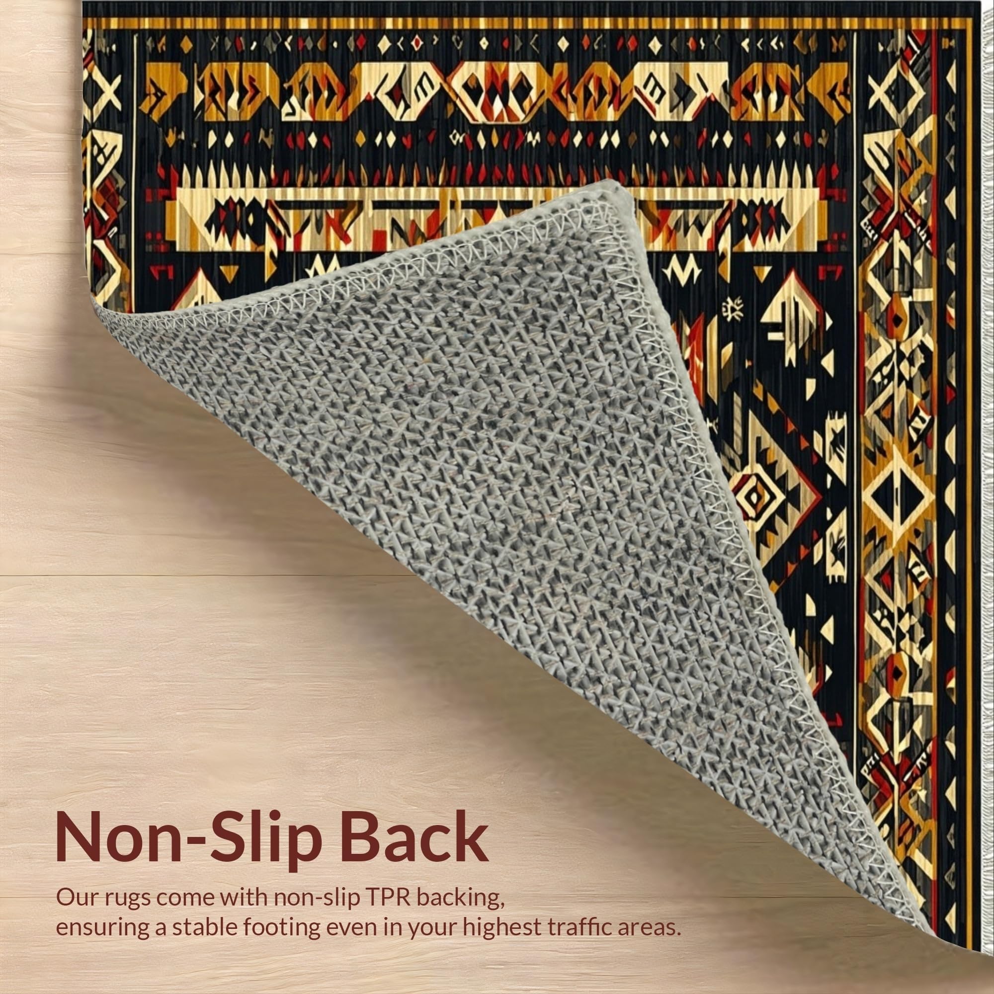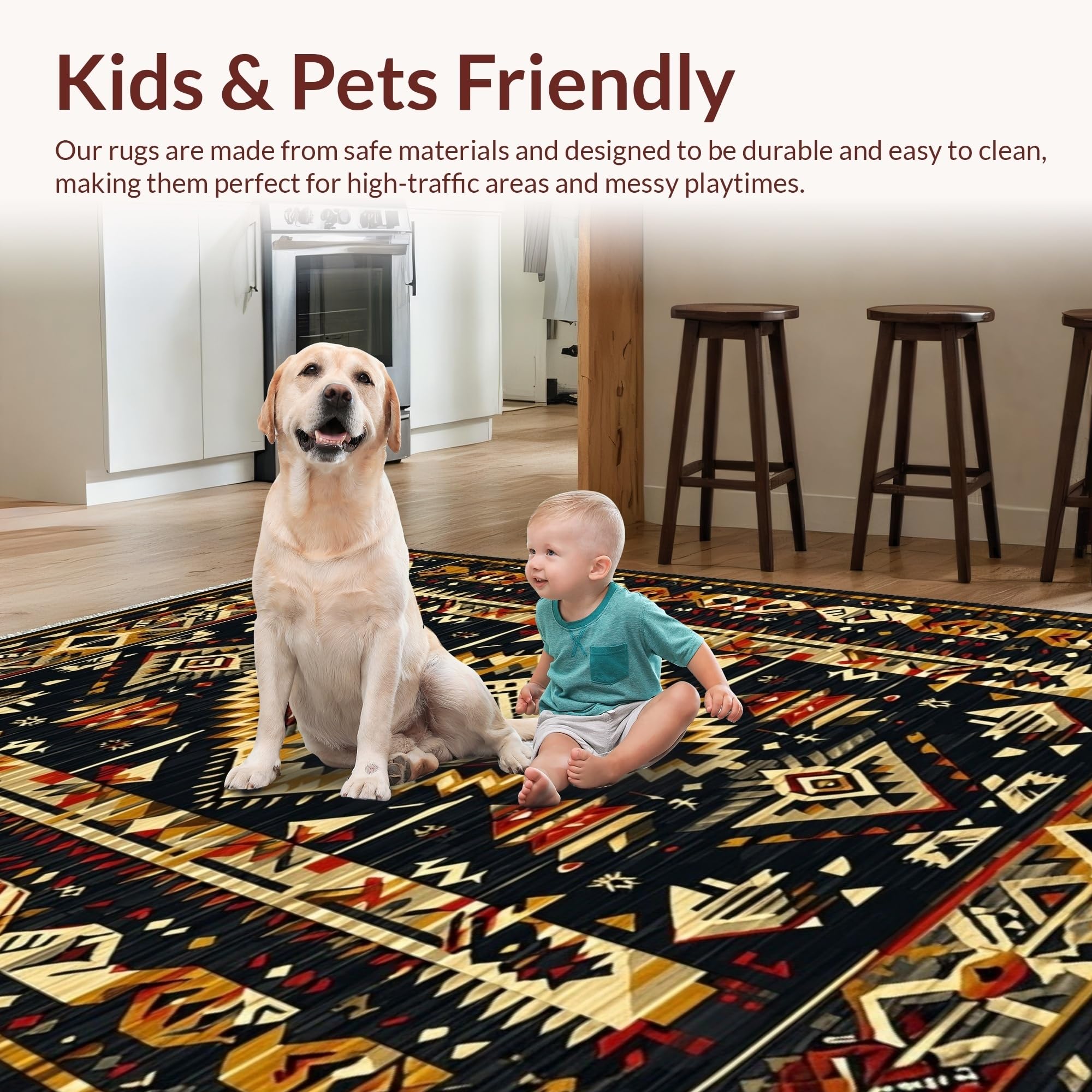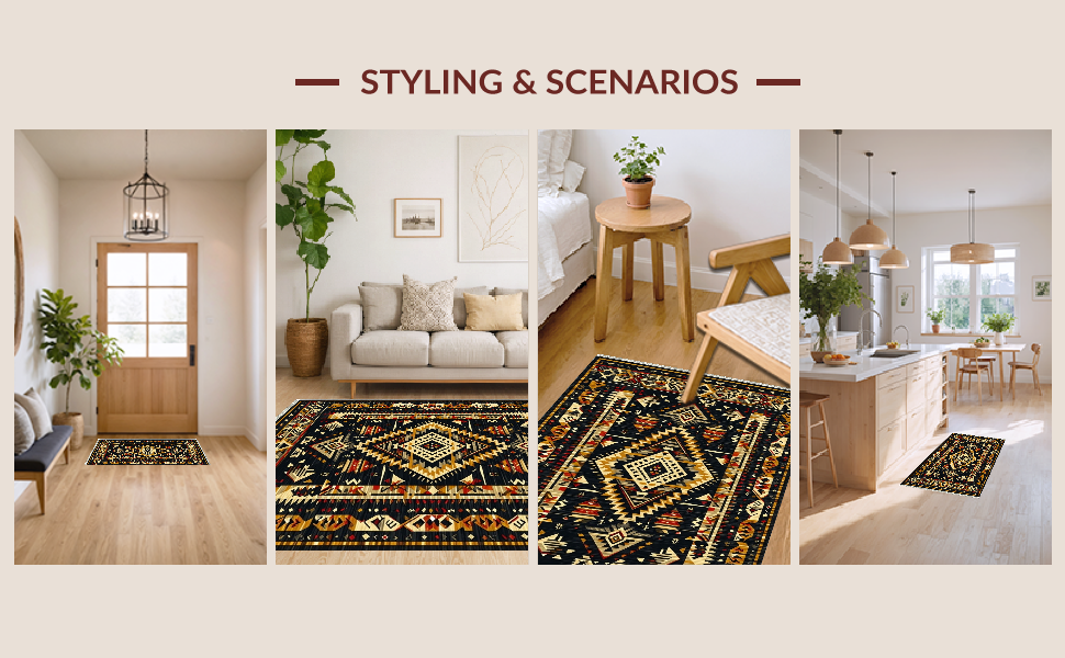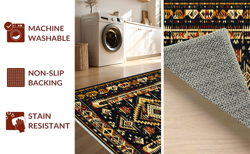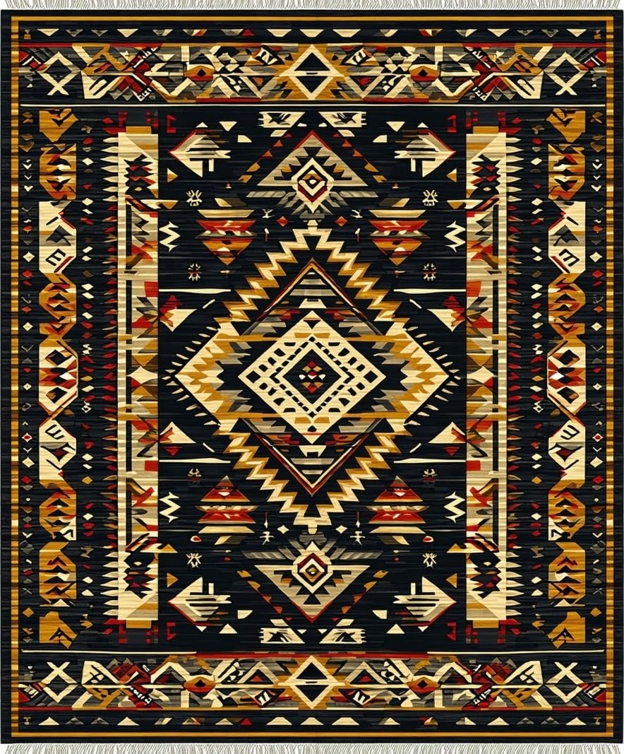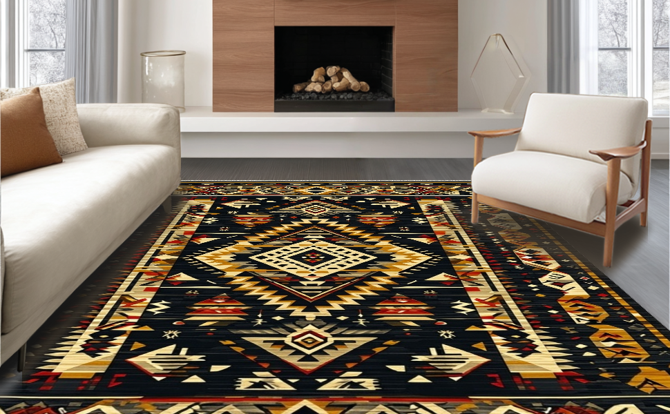Ultra Soft Area Rug, Non Slip, Stain Resistant, Washable Area Rugs for Living Room, Bedroom, Striking Abstract Aztec Aesthetics(Black) Overview: