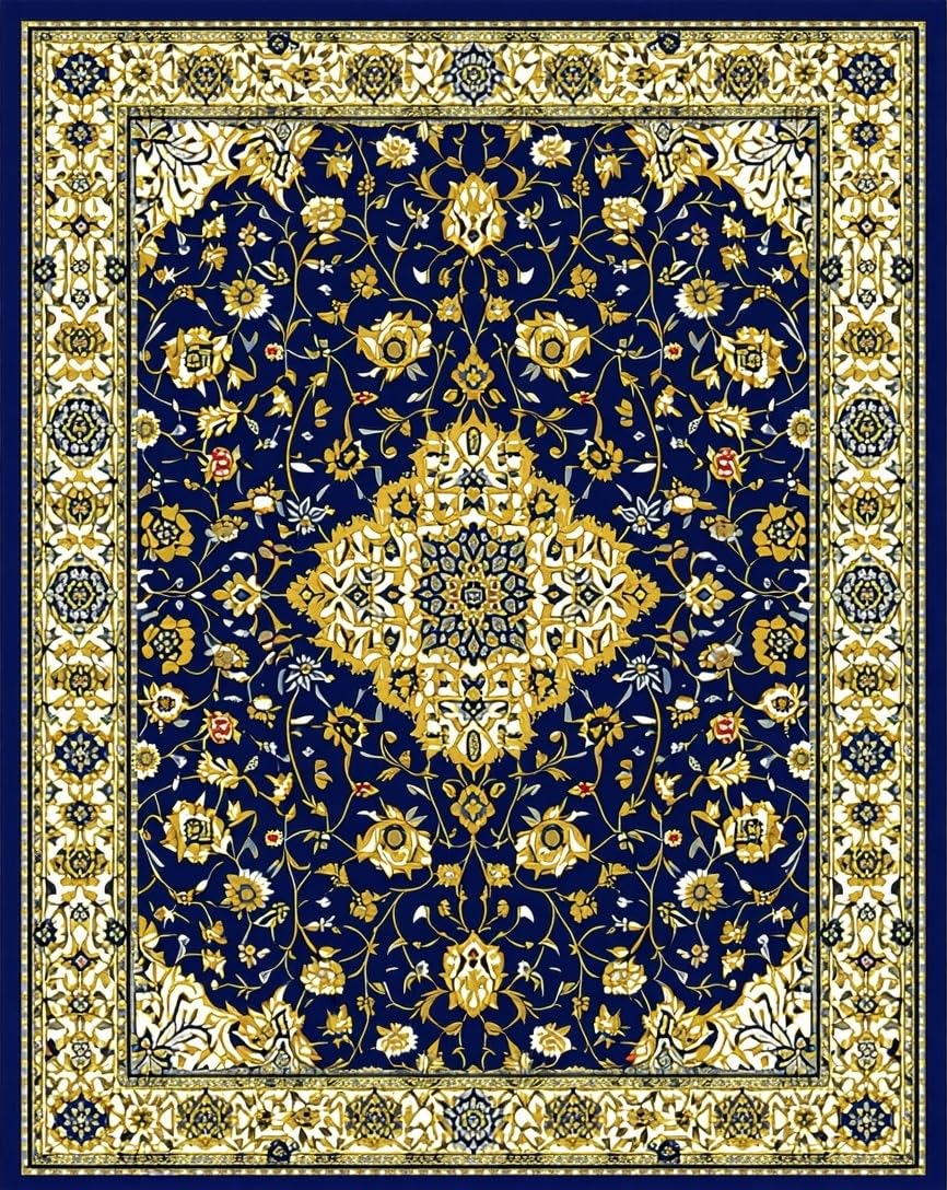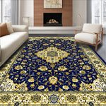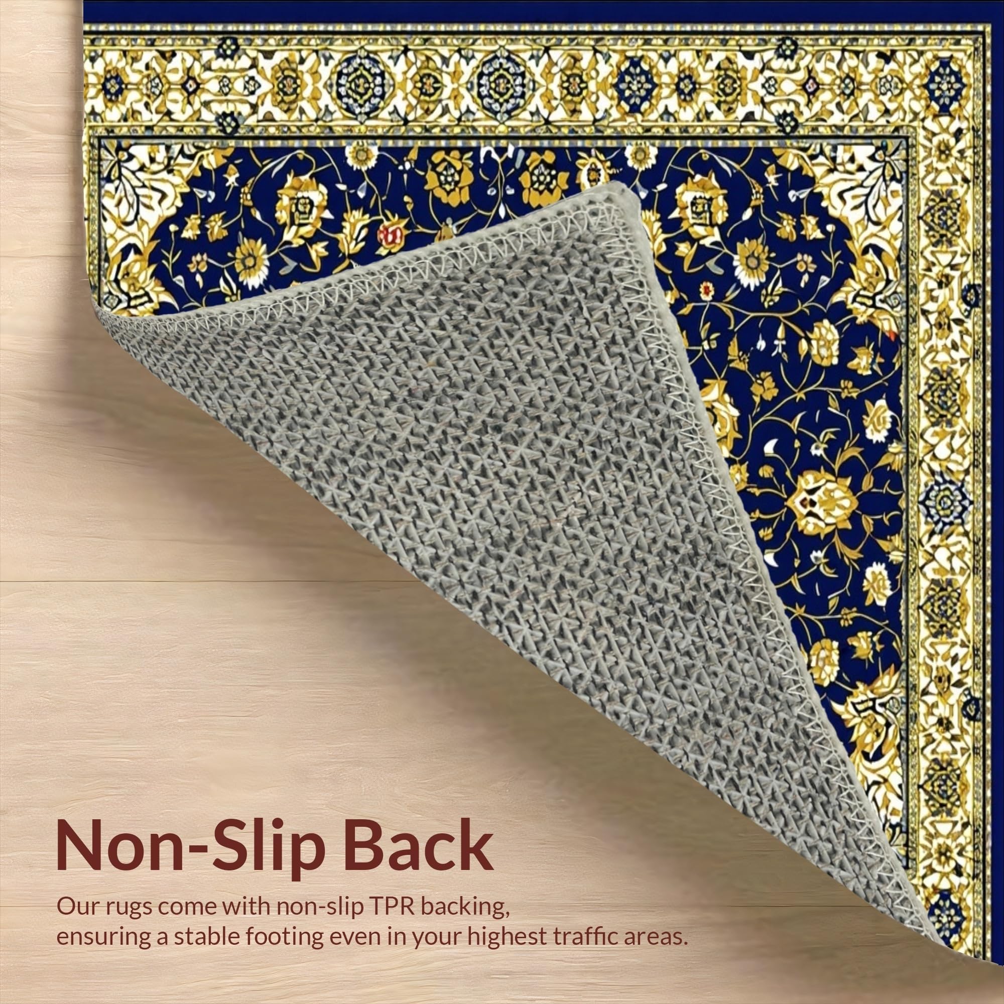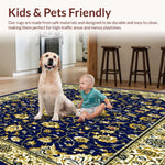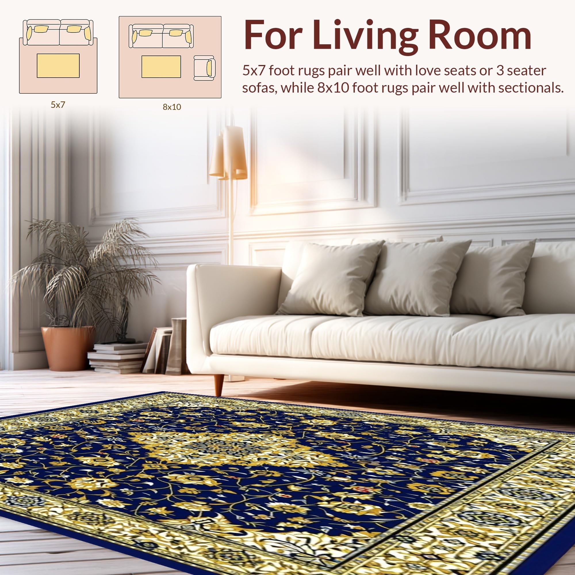 Ultra Soft Area Rug, Non Slip, Stain Resistant, Washable Area Rugs for Living Room, Bedroom, Striking Abstract Floral Area with Elegant Blue and Gold(Blue) Overview: