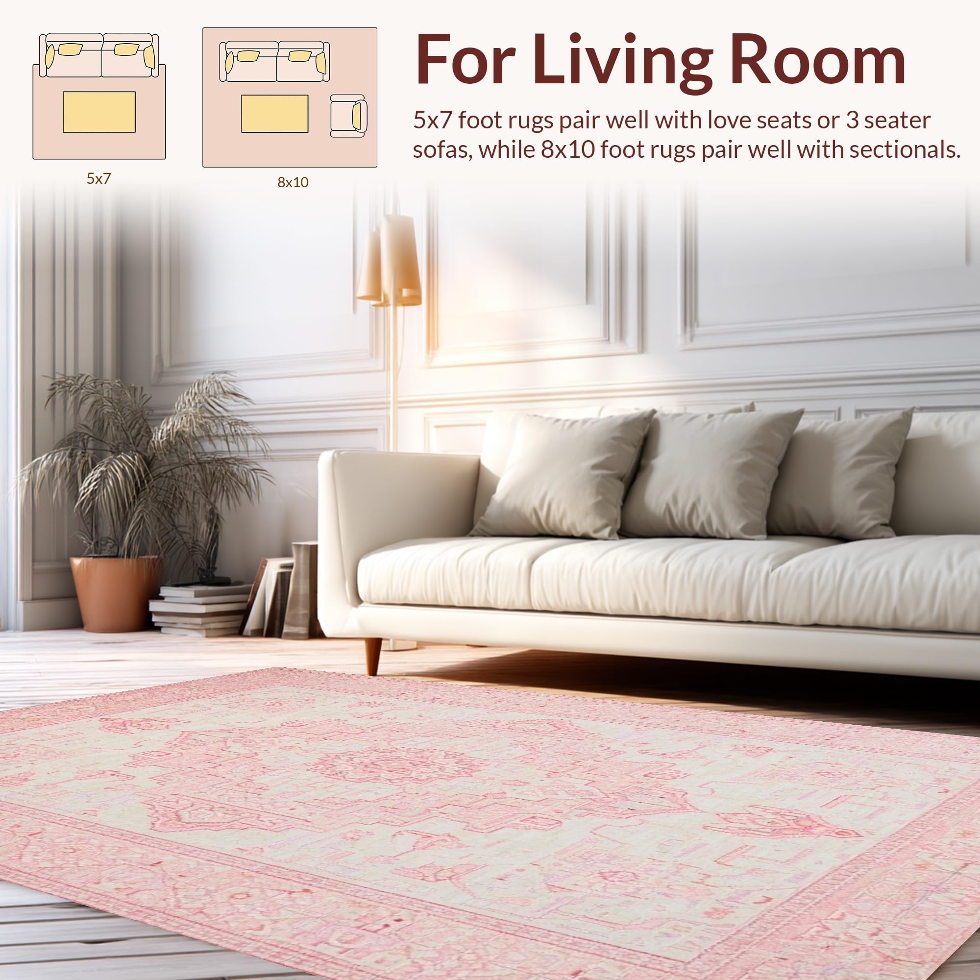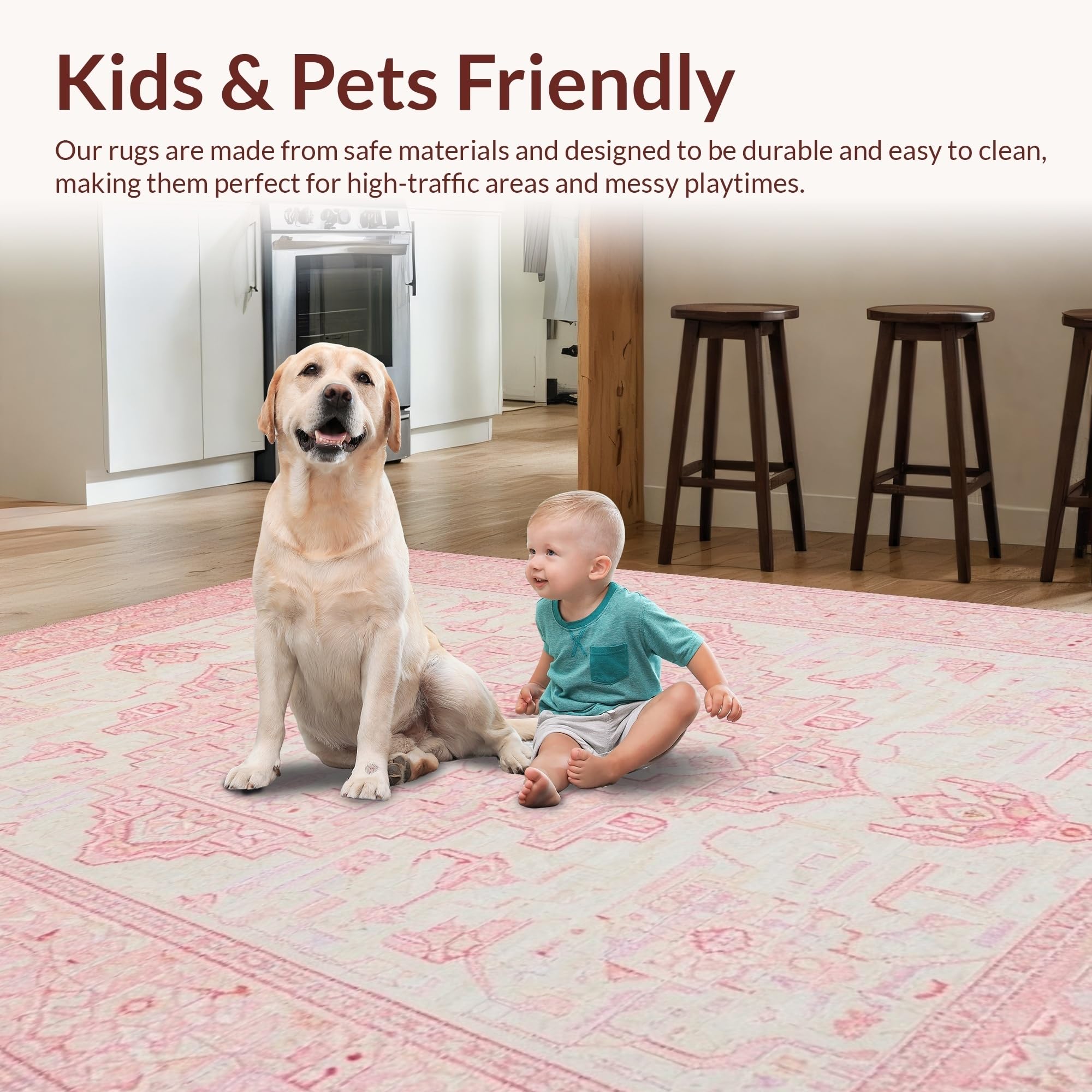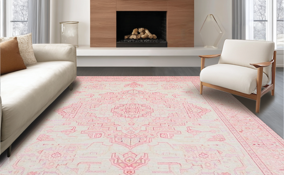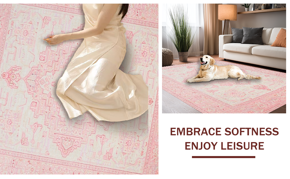 Ultra Soft Area Rug, Non Slip, Stain Resistant, Washable Area Rugs for Living Room, Bedroom, Striking Abstract Pink Color Blocks(Pink) Overview: