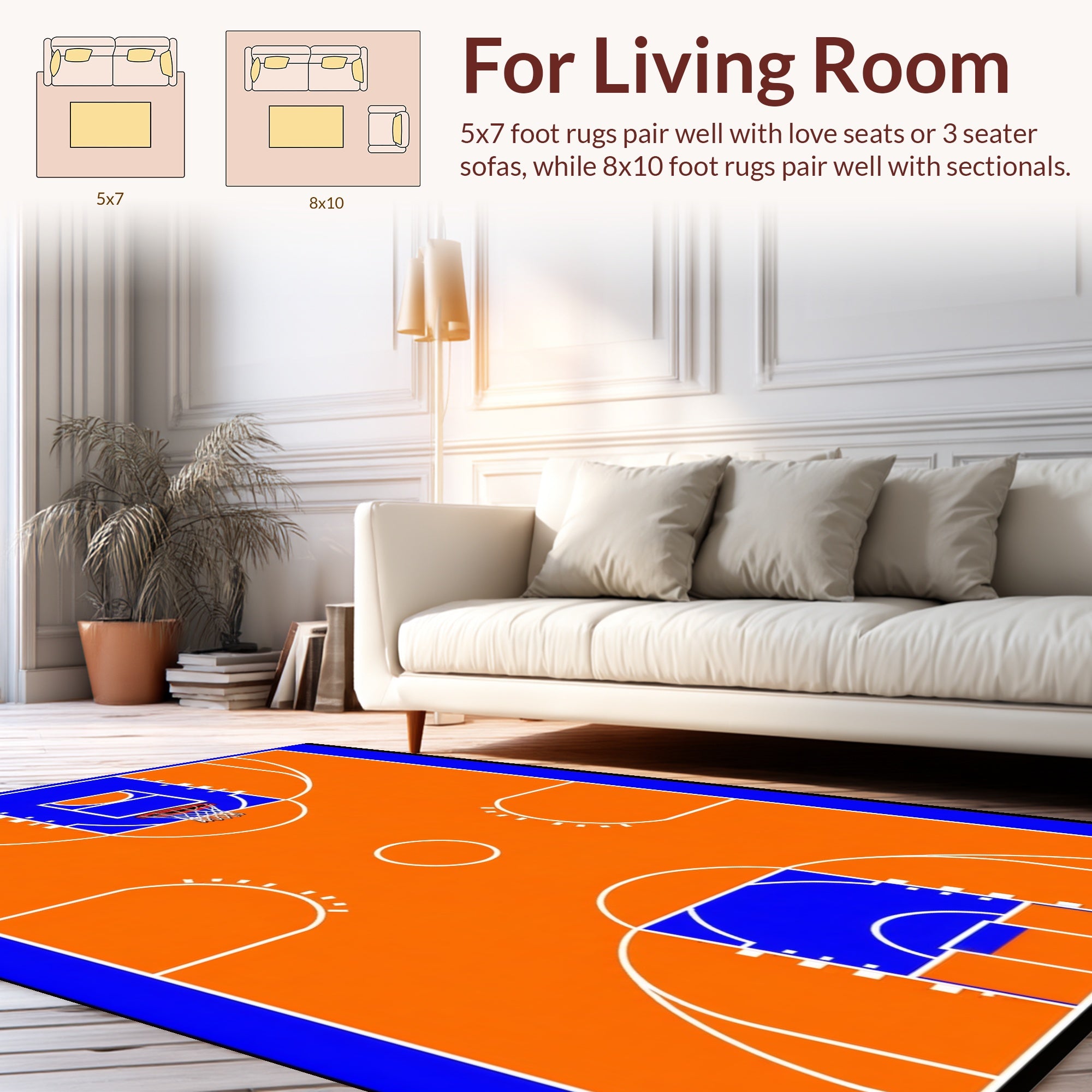 Flatwoven High Traffic Area Rug, Striking Athletic Field Imagery, Non Slip, Stain Resistant, Washable Area Rugs for Living Room, Bedroom (Orange) Overview: