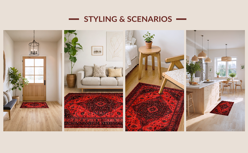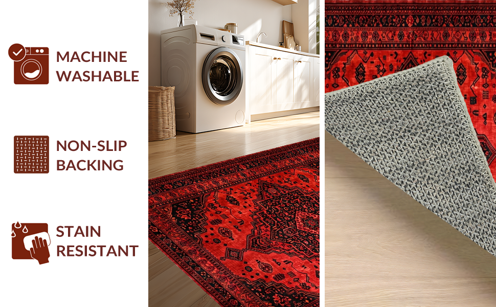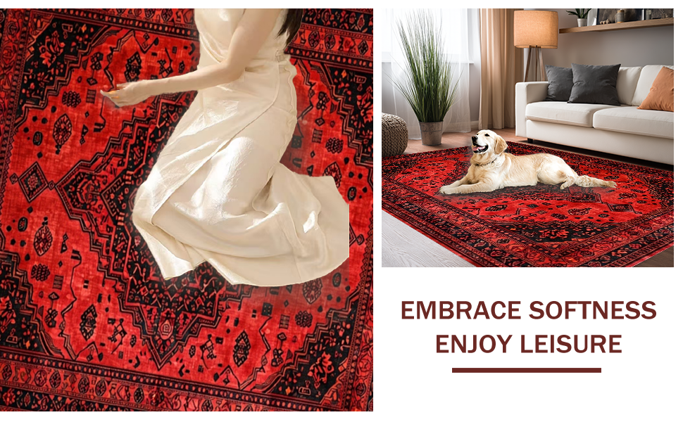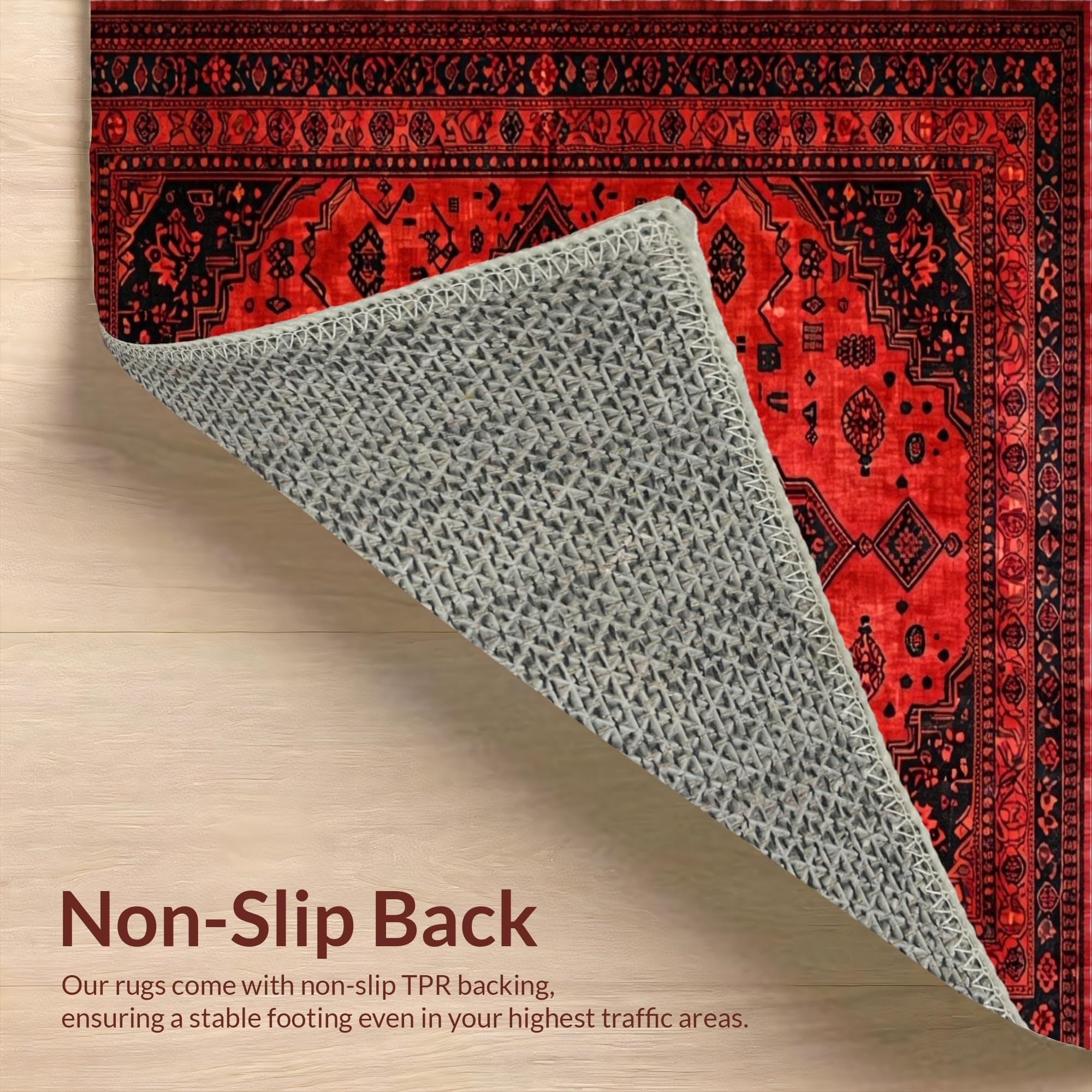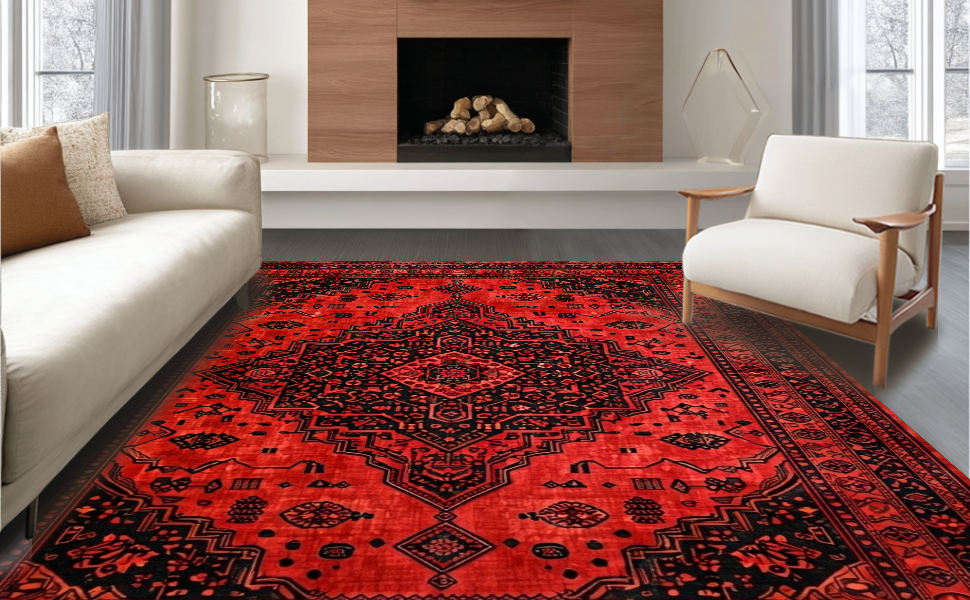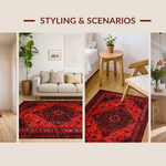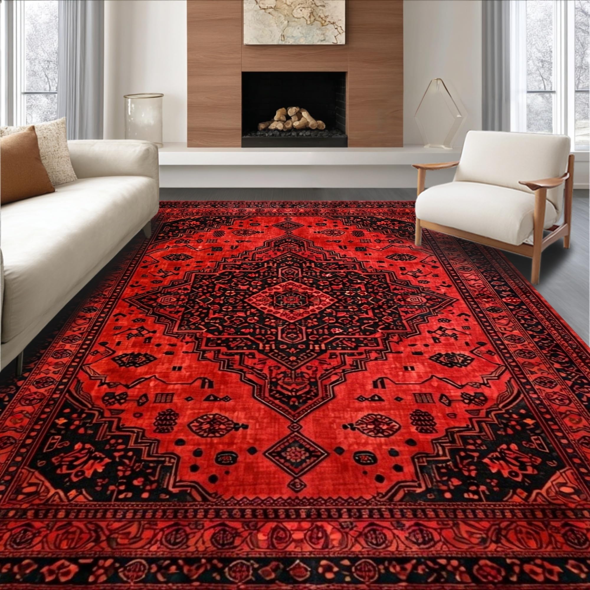Ultra Soft Area Rug, Non Slip, Stain Resistant, Washable Area Rugs for Living Room, Bedroom, Striking Contemporary Medallion Style(Red) Overview:
