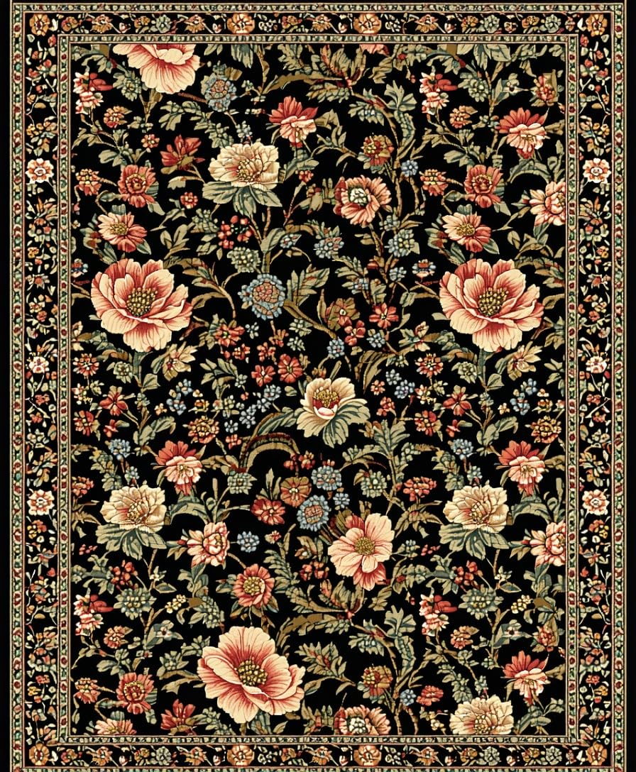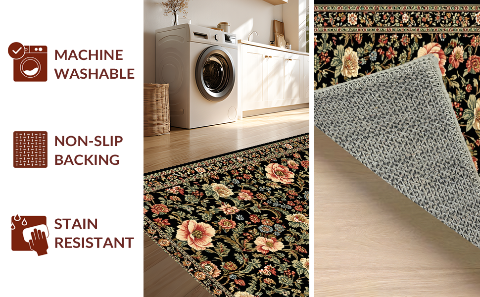 Ultra Soft Area Rug, Non Slip, Stain Resistant, Washable Area Rugs for Living Room, Bedroom, Striking Dark Floral Palette(Black) Overview: