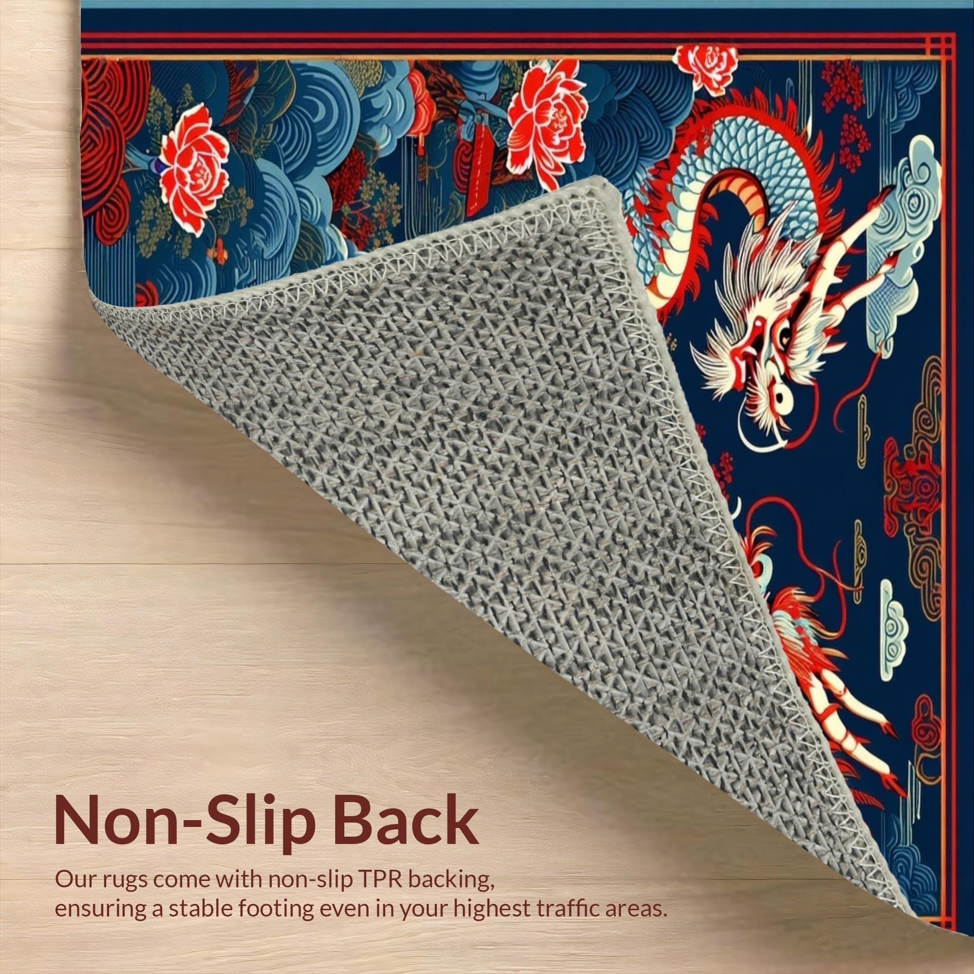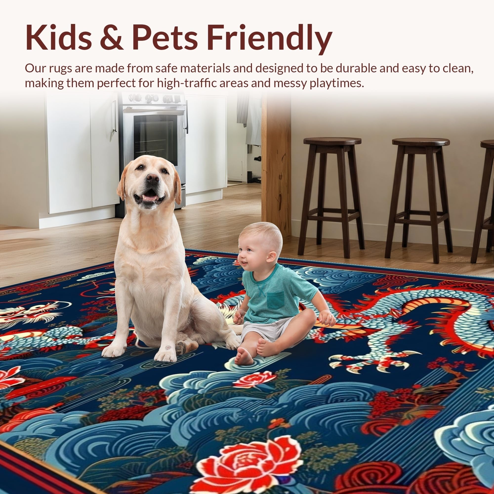 Ultra Soft Area Rug, Non Slip, Stain Resistant, Washable Area Rugs for Living Room, Bedroom, Striking Ethereal Dragon Aesthetic(Blue) Overview: