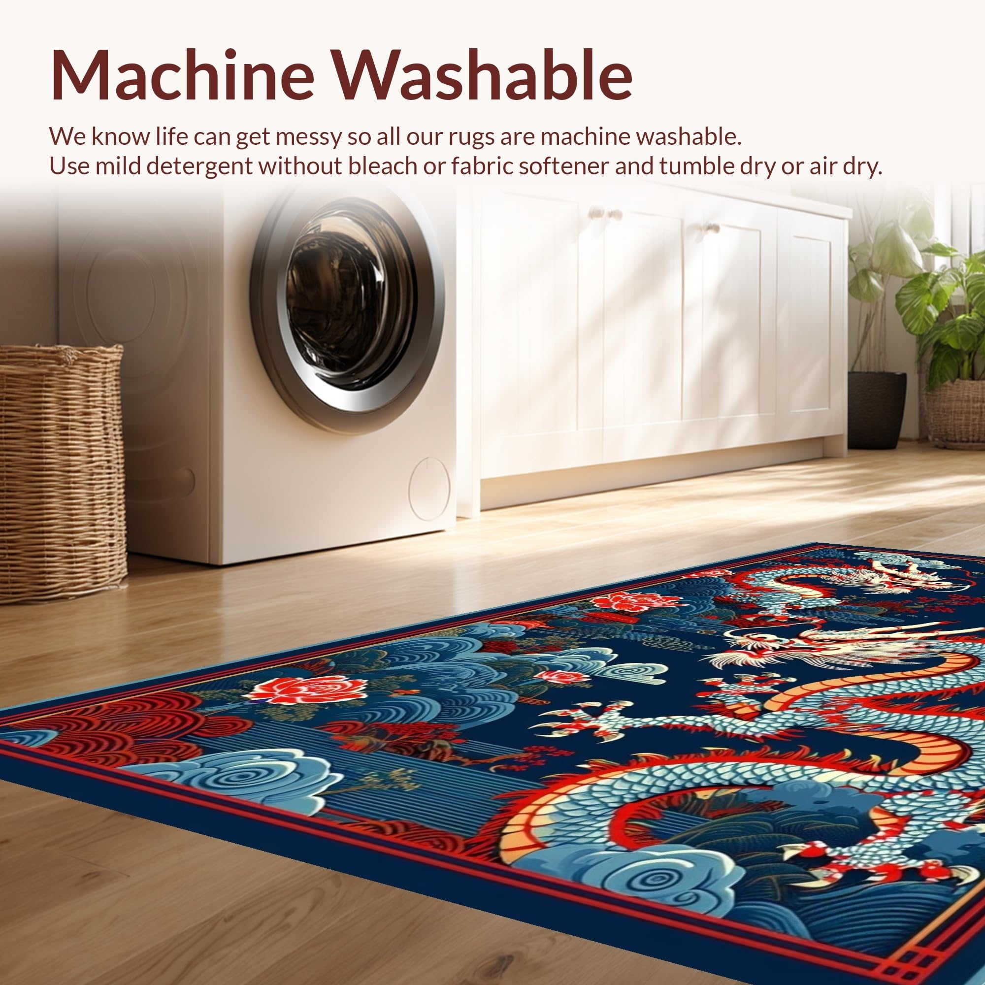 - Machine Washable: Our rugs can be easily thrown in the wash machine.