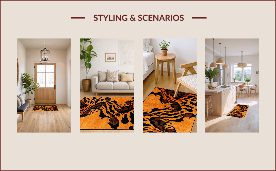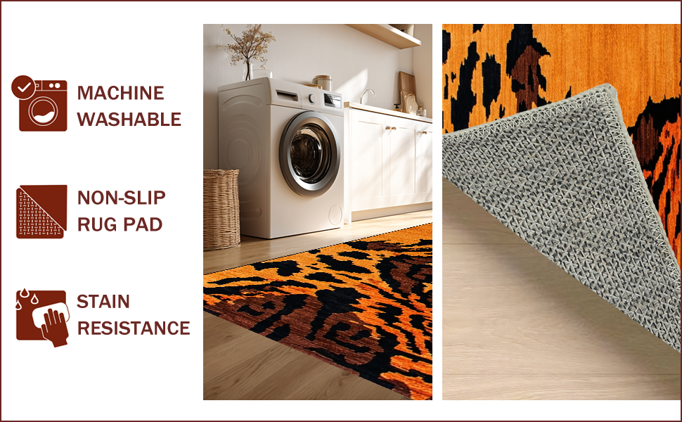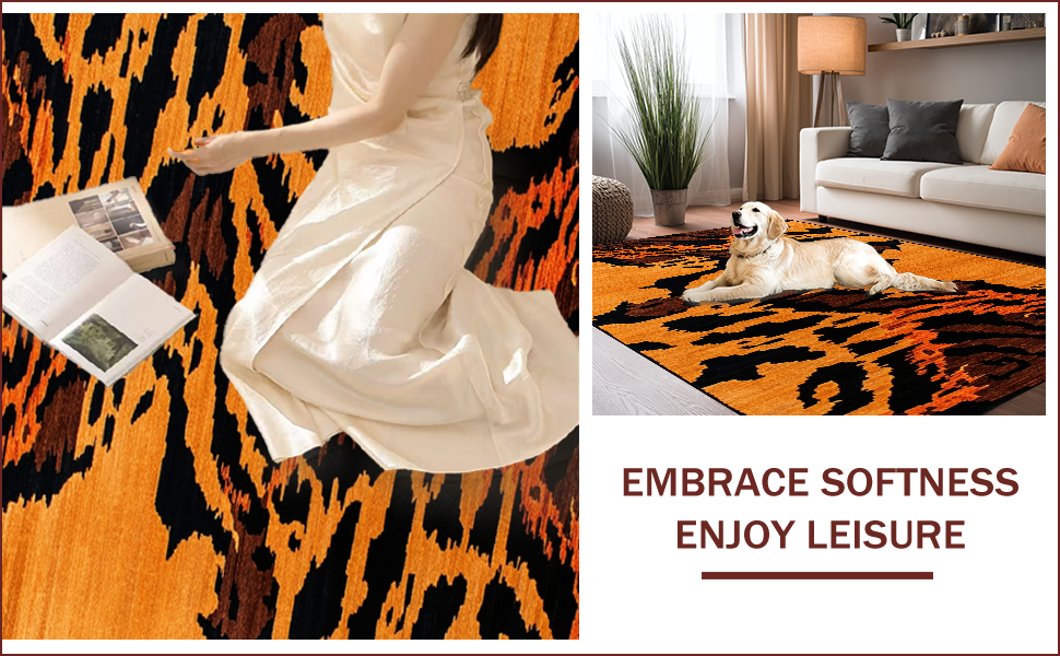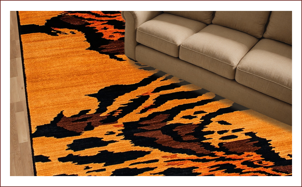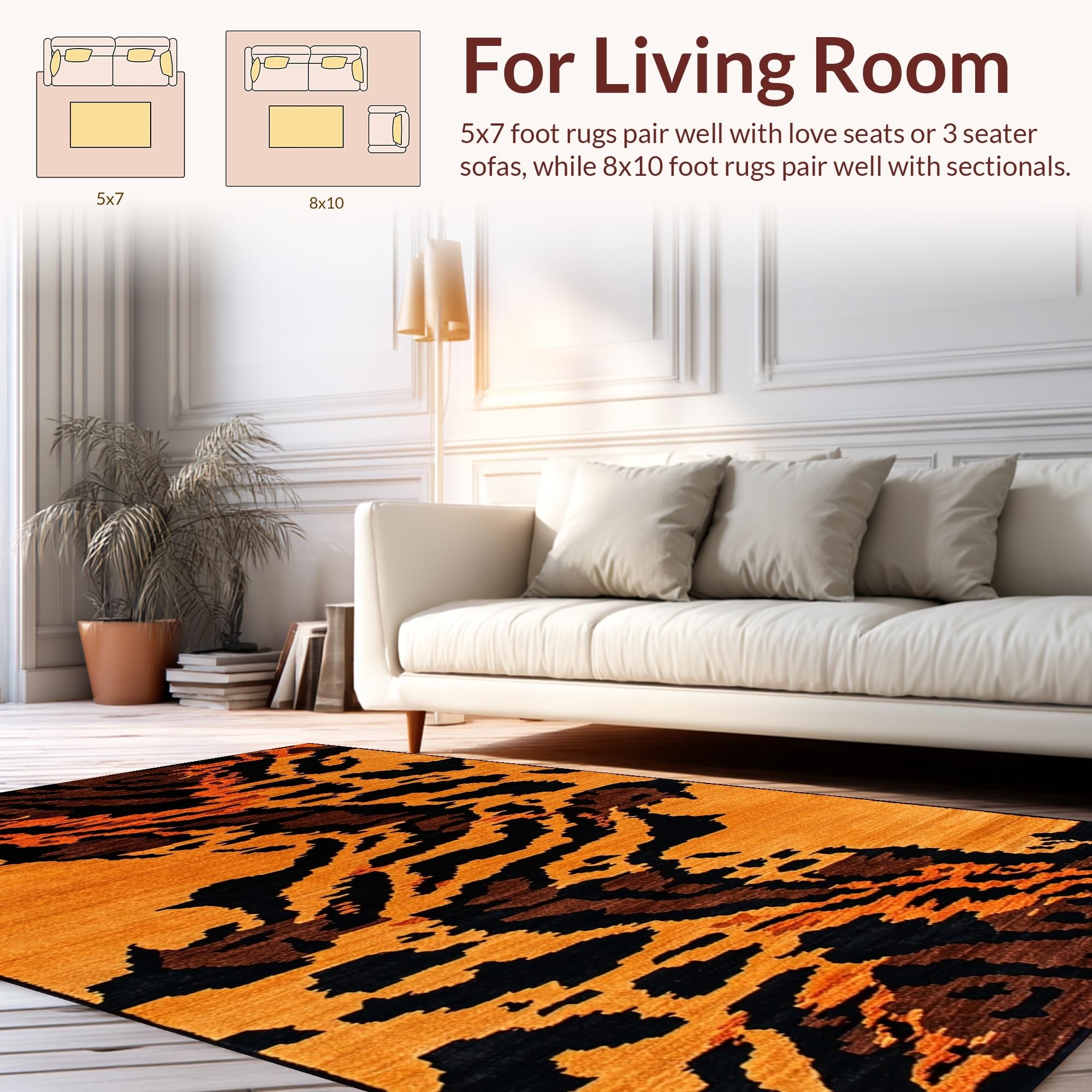 Ultra Soft Area Rug, Non Slip, Stain Resistant, Washable Area Rugs for Living Room, Bedroom, Striking Exotic Tiger Skin Motif(Brown) Overview: