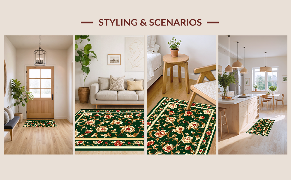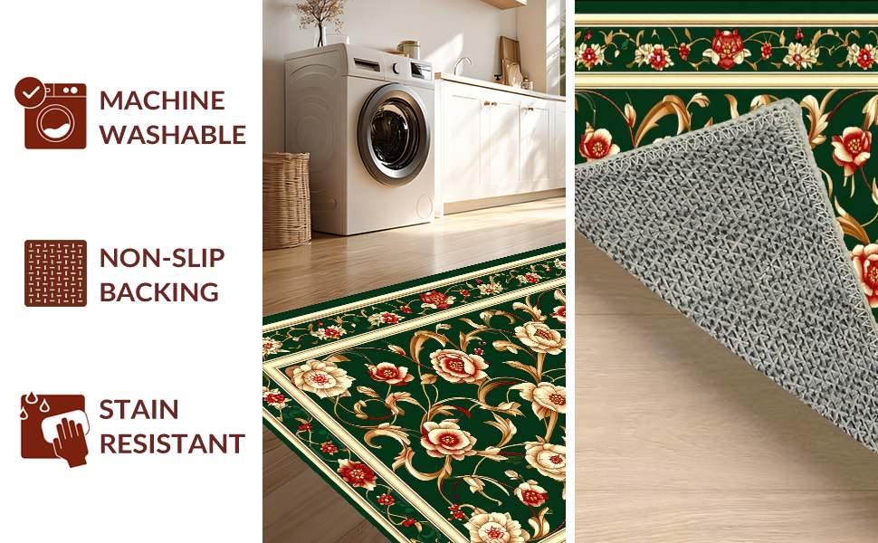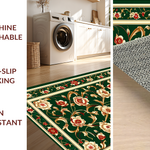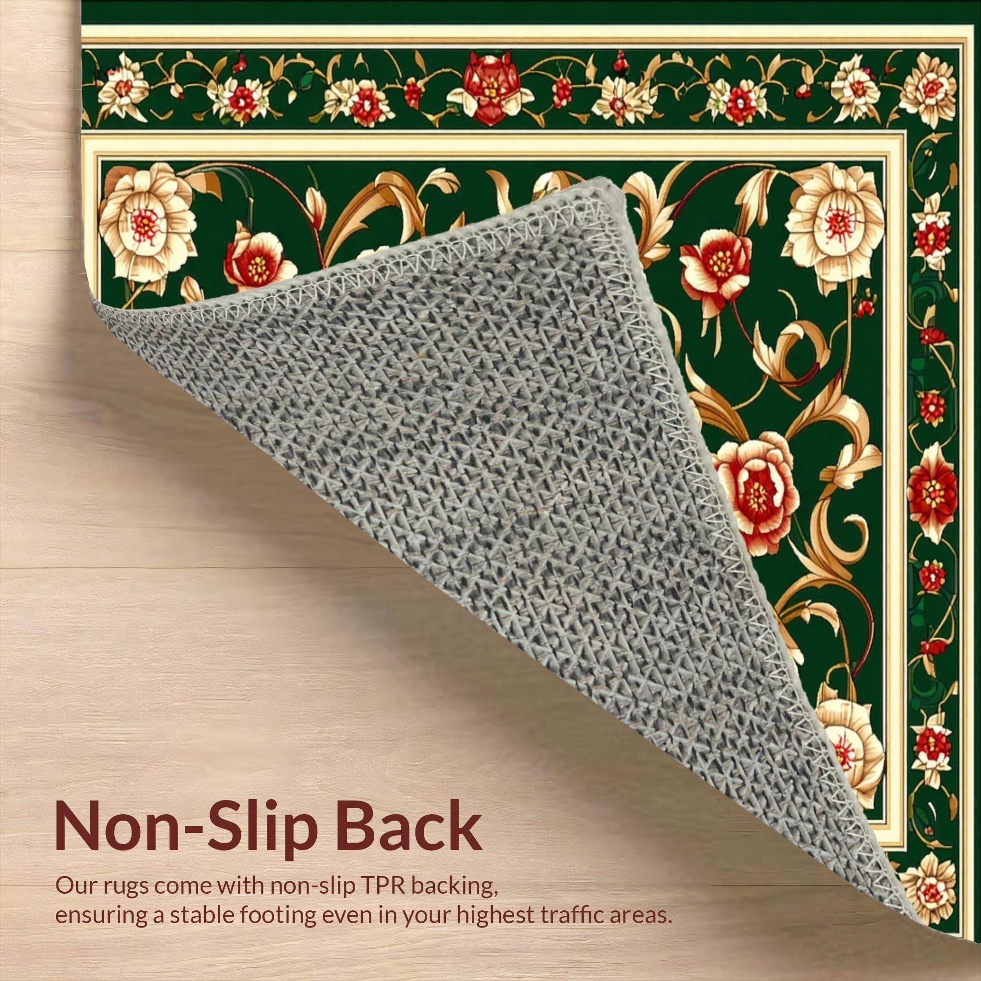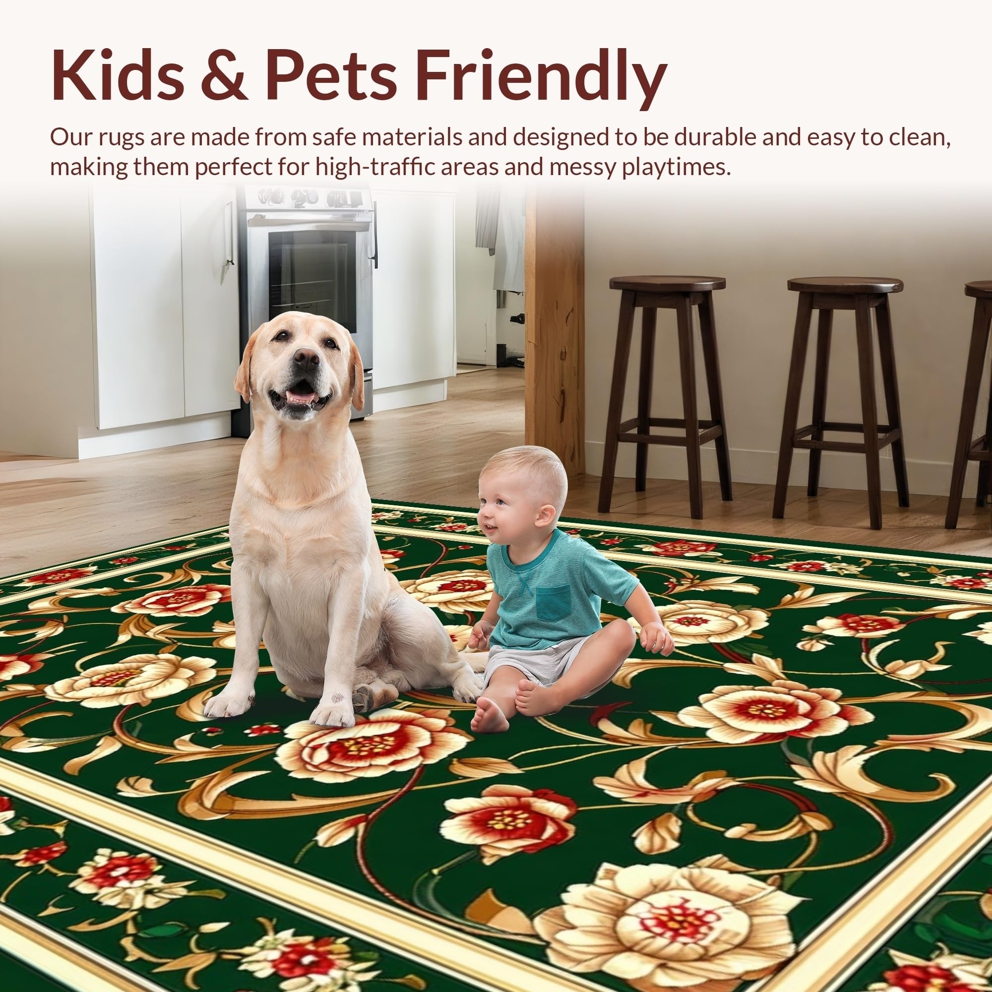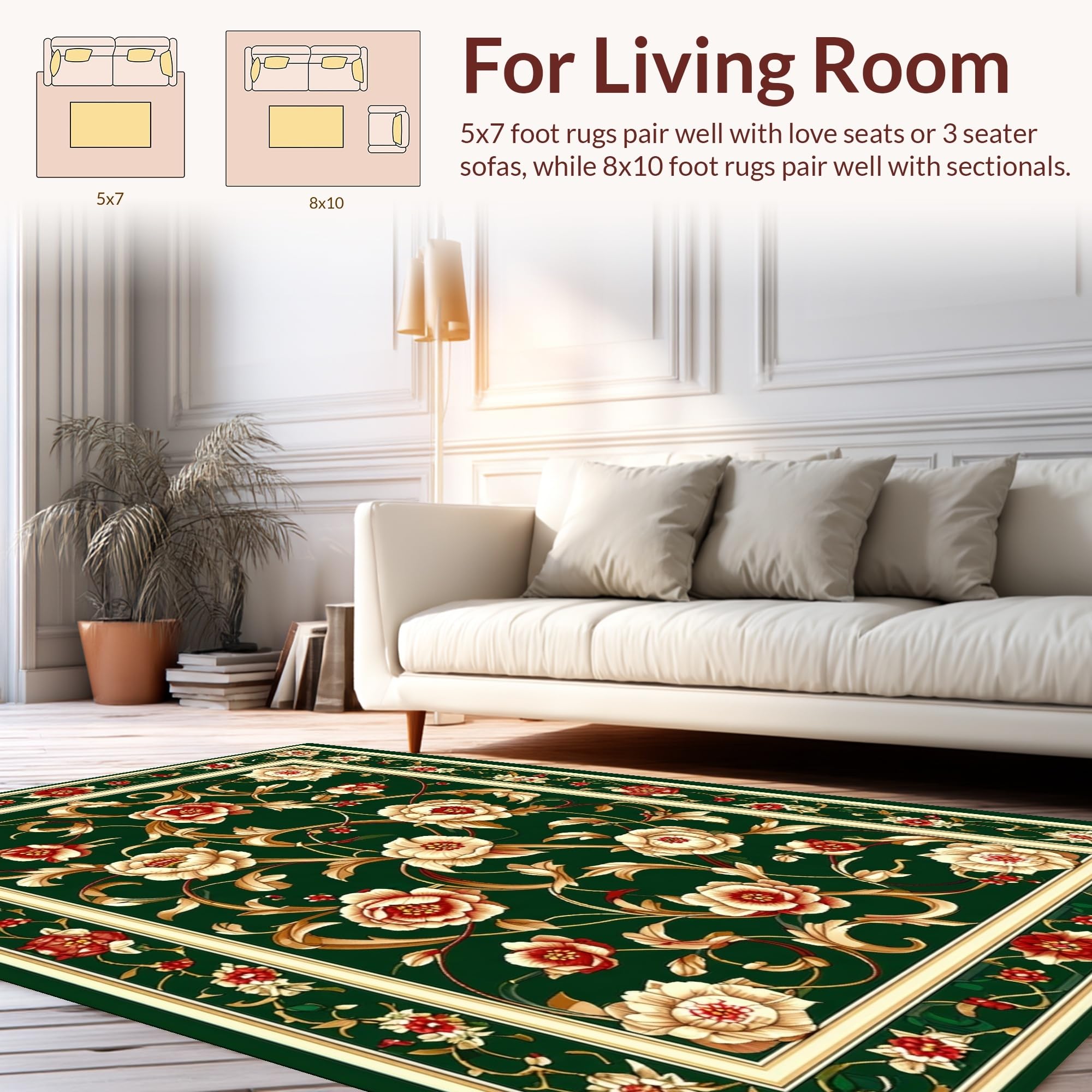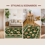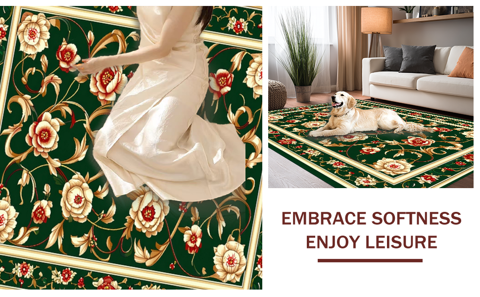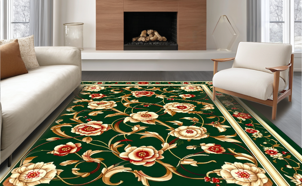 Ultra Soft Area Rug, Non Slip, Stain Resistant, Washable Area Rugs for Living Room, Bedroom, Striking Historic Floral Artistry(Green) Overview: