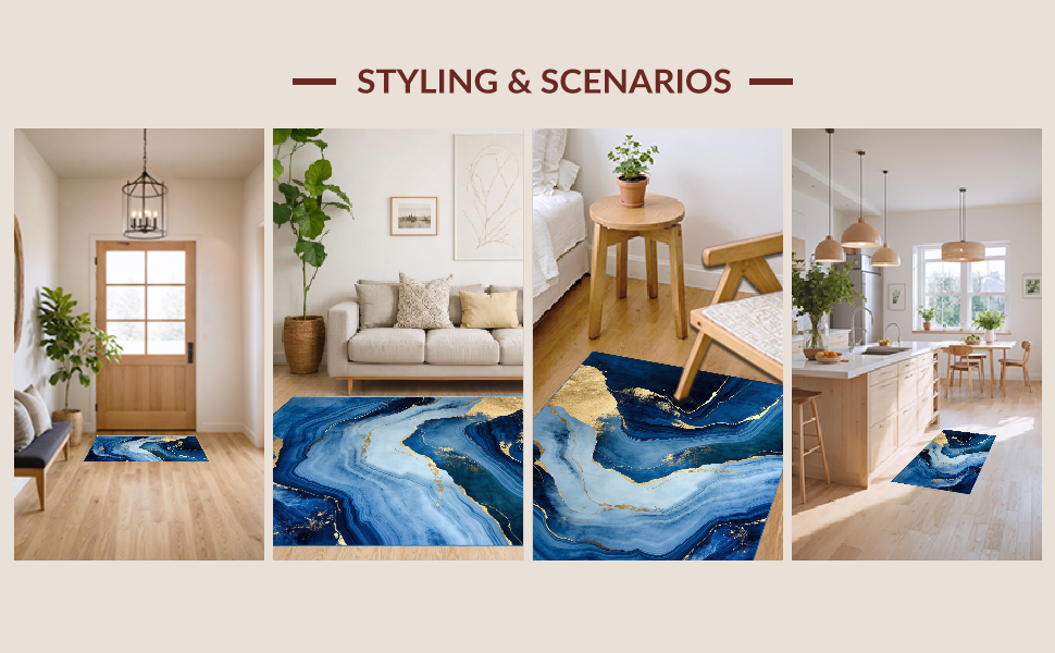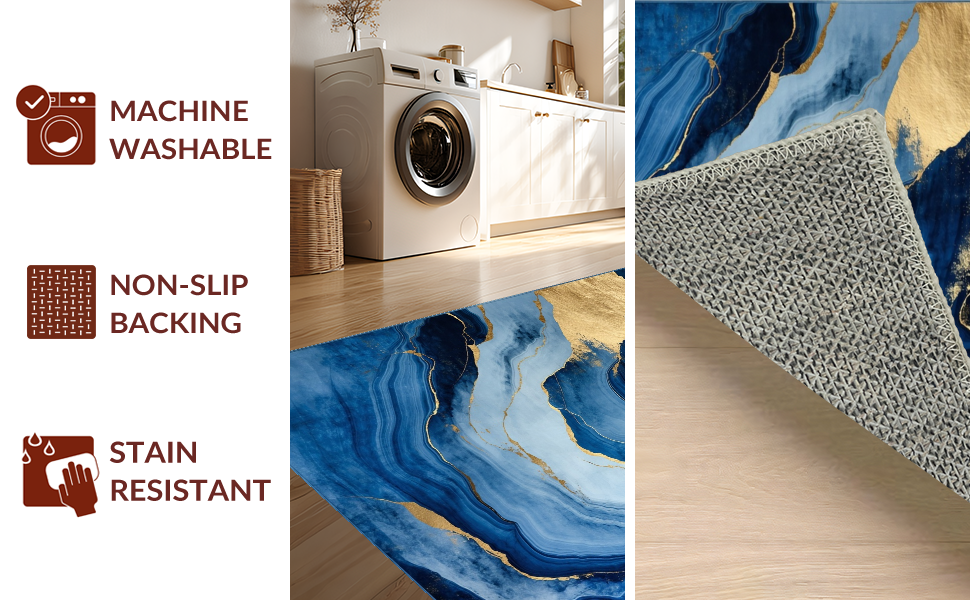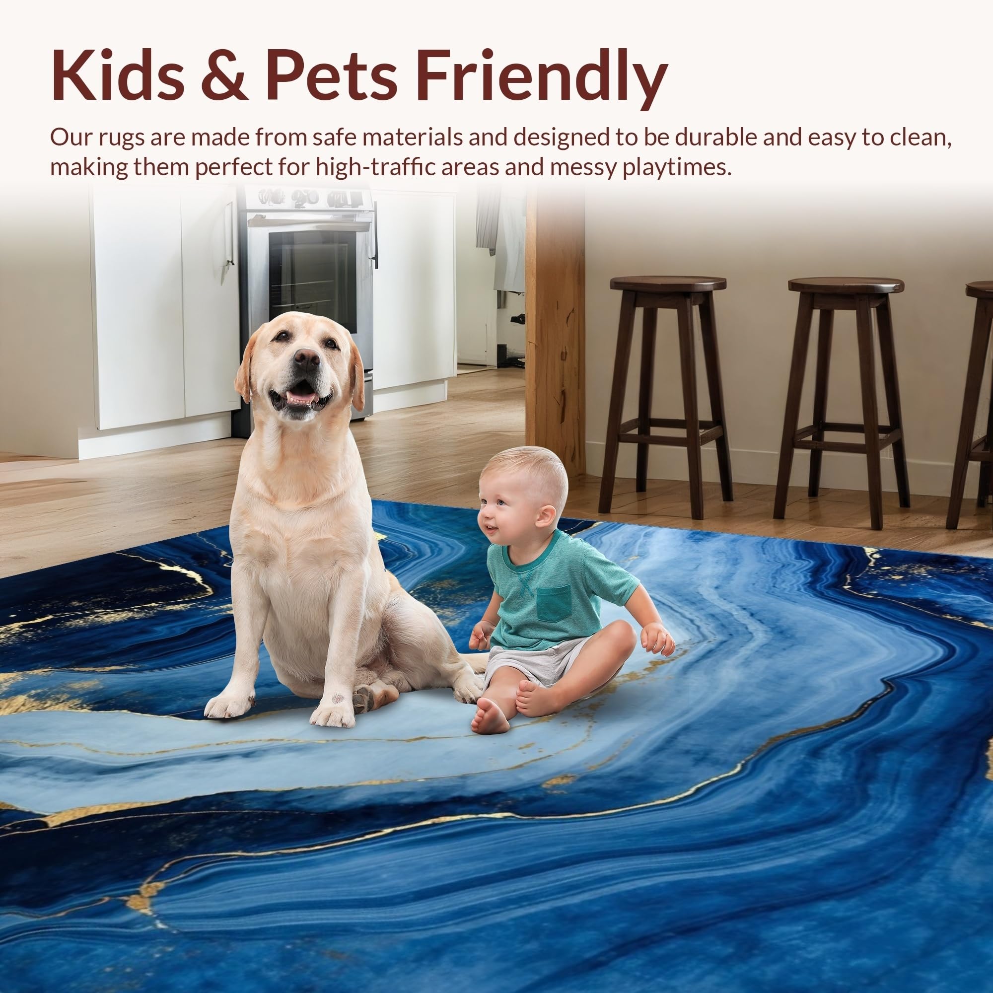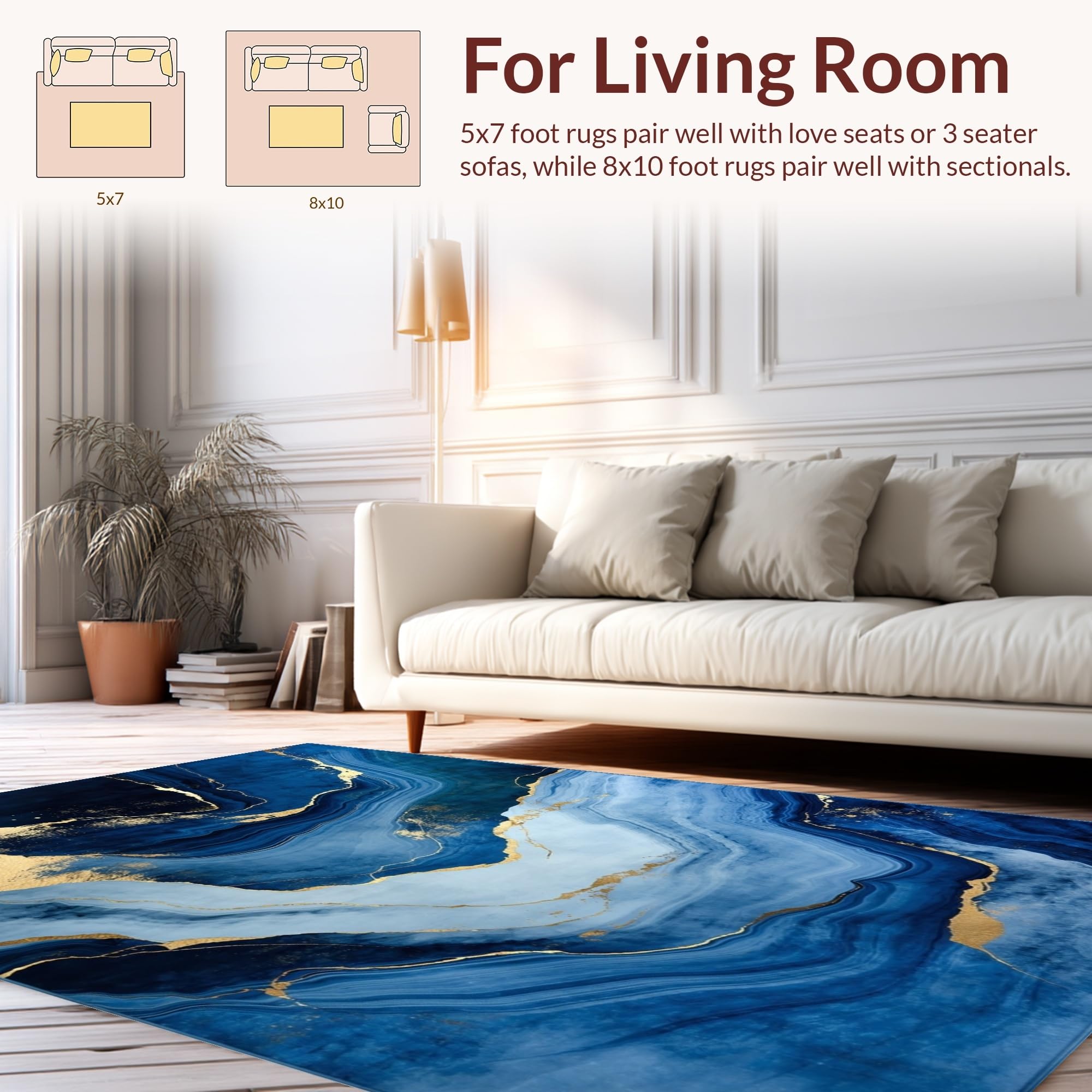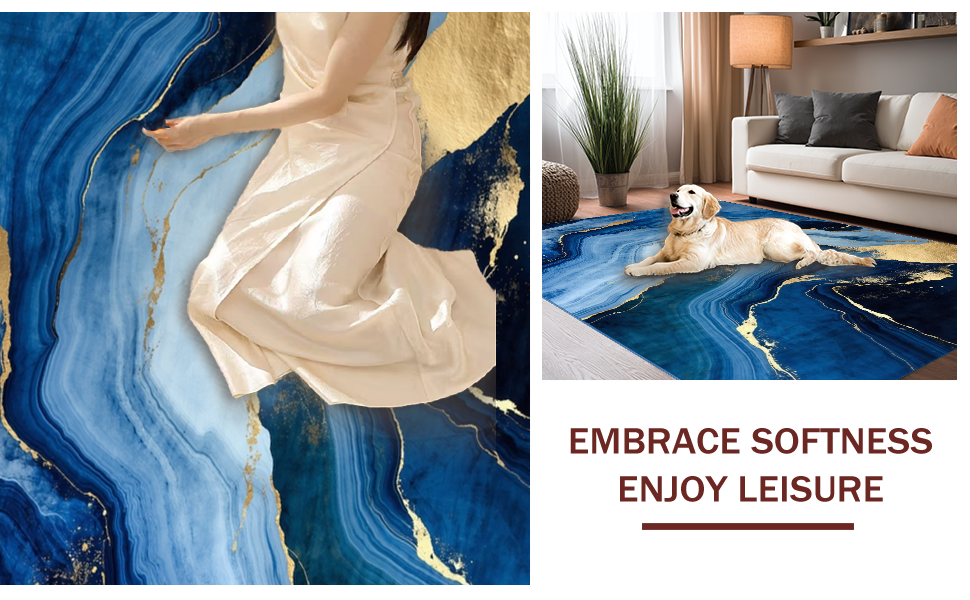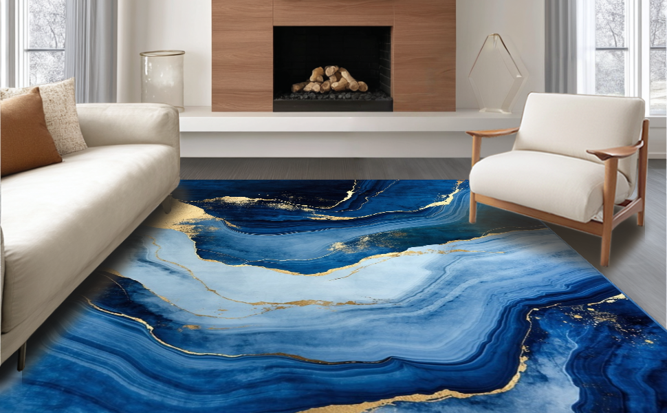 Ultra Soft Area Rug, Non Slip, Stain Resistant, Washable Area Rugs for Living Room, Bedroom, Striking Mixed Media Decorative Touch(Blue) Overview:
