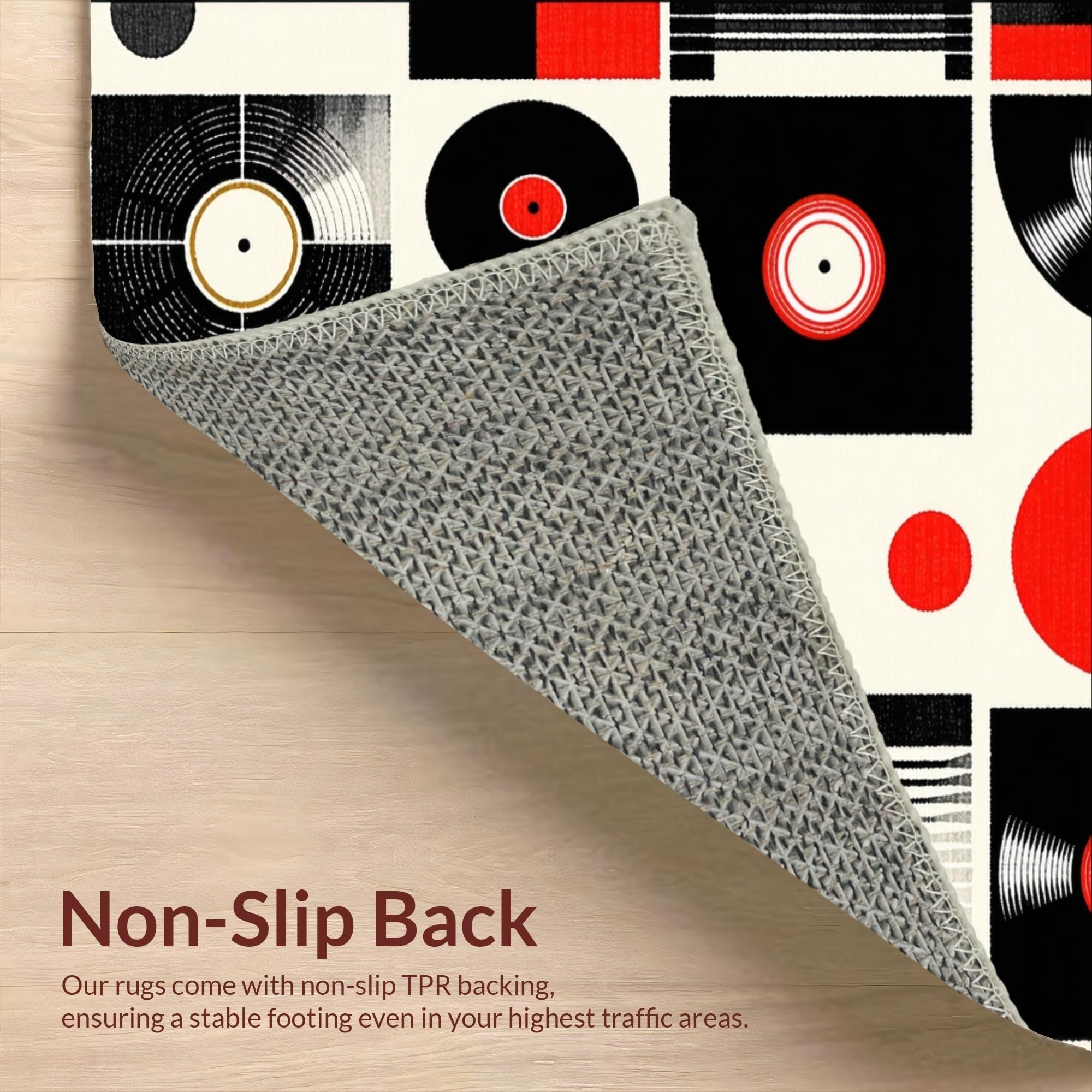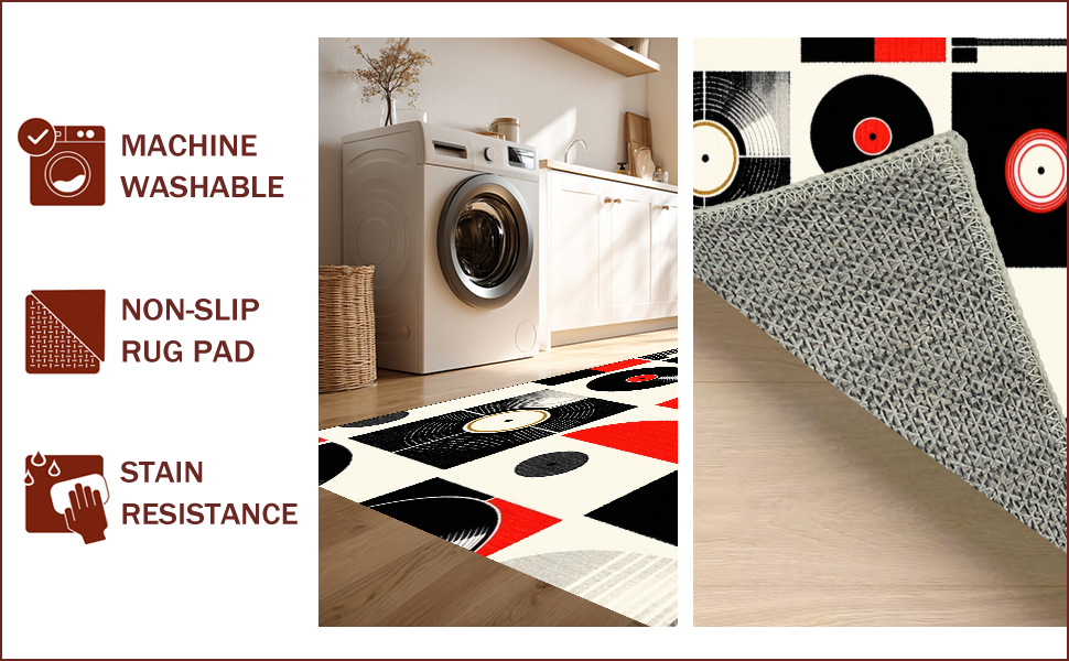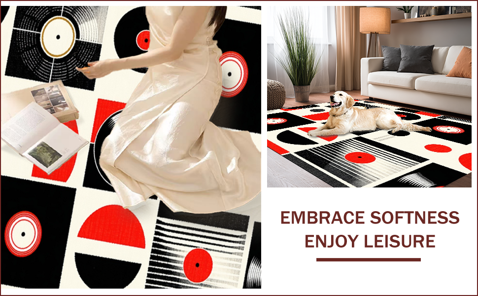 Ultra Soft Area Rug, Non Slip, Stain Resistant, Washable Area Rugs for Living Room, Bedroom, Striking Monochrome Record Design(Black) Overview: