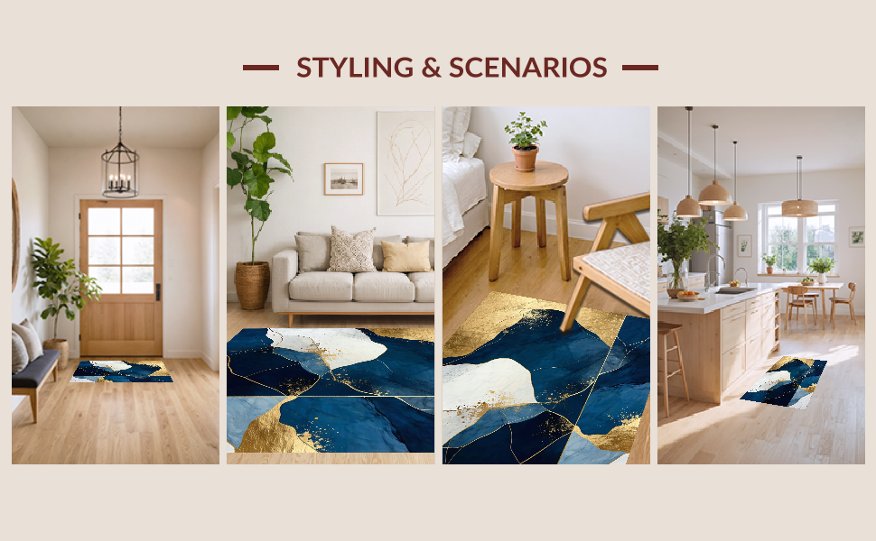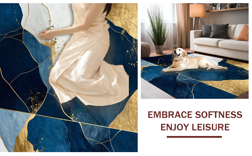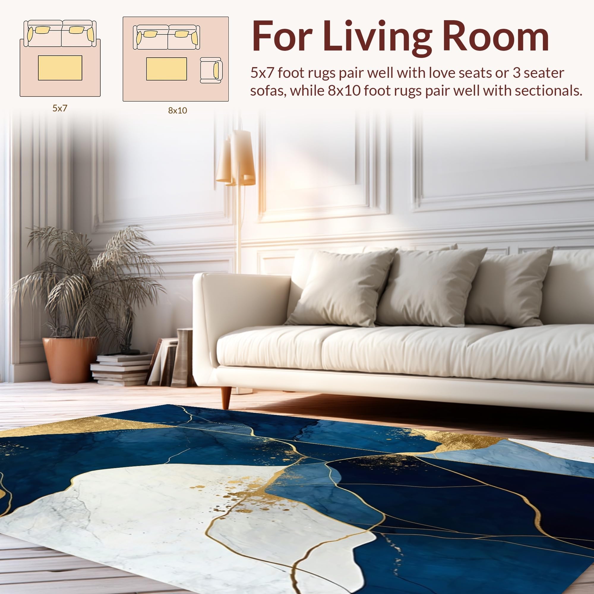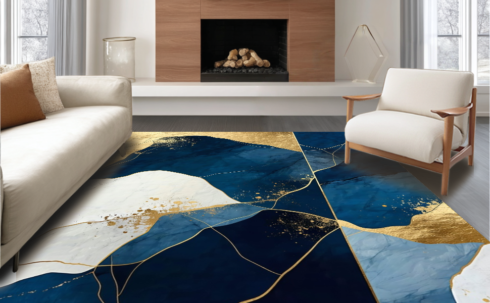 Ultra Soft Area Rug, Non Slip, Stain Resistant, Washable Area Rugs for Living Room, Bedroom, Striking Navy Blue Artistic Flair(Blue) Overview: