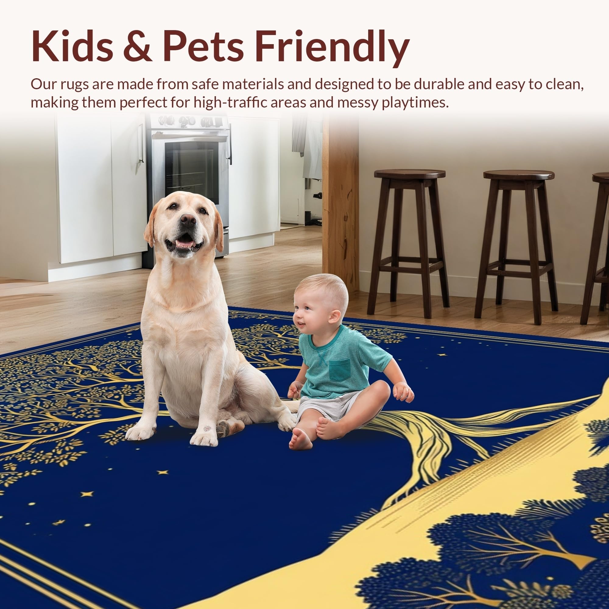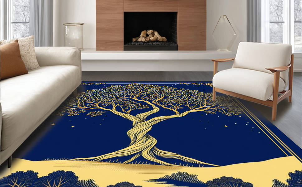 Ultra Soft Area Rug, Non Slip, Stain Resistant, Washable Area Rugs for Living Room, Bedroom, Striking Nordic Heritage Theme(Blue) Overview: