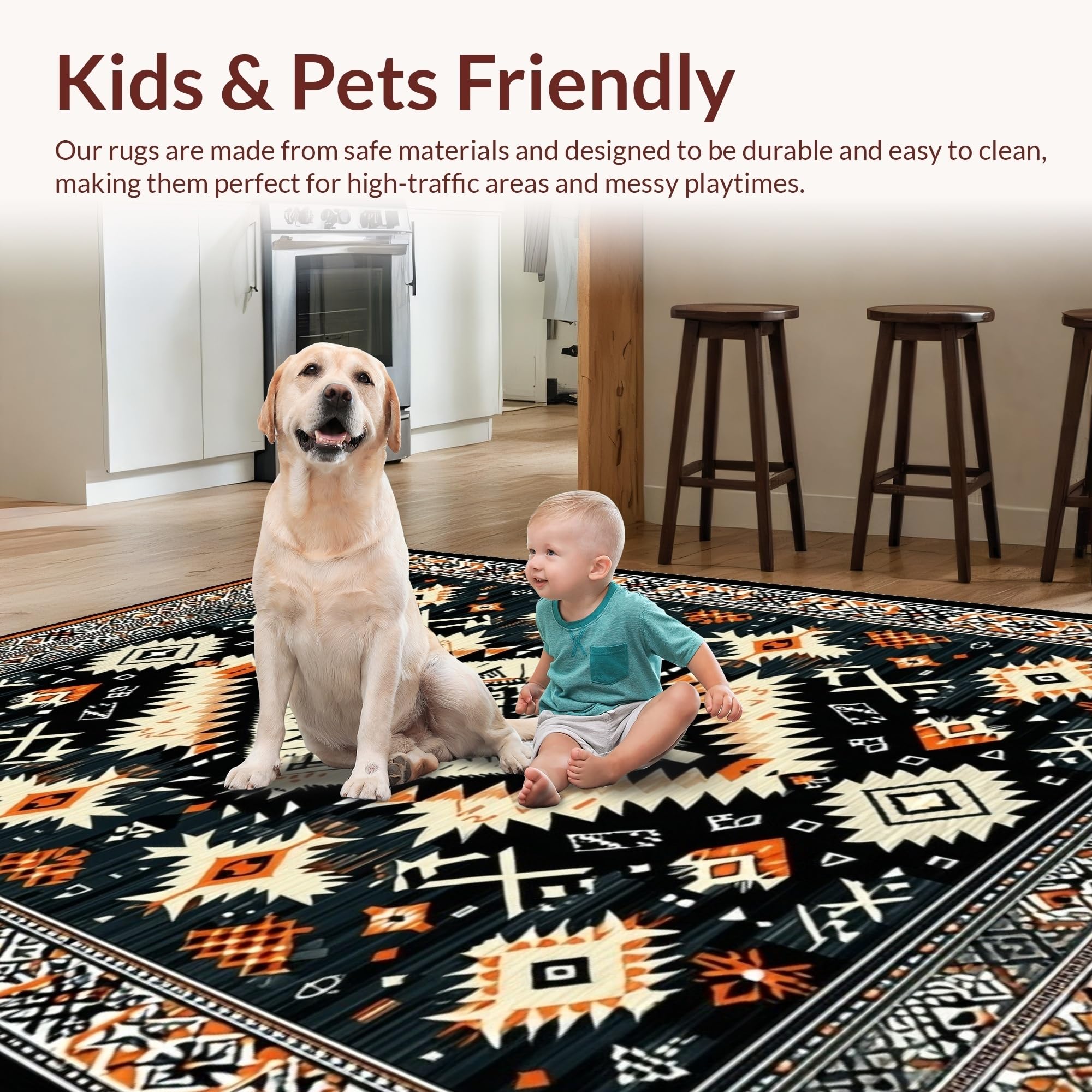Ultra Soft Area Rug, Non Slip, Stain Resistant, Washable Area Rugs for Living Room, Bedroom, Striking Soft Color Geometric Shapes(Black) Overview: