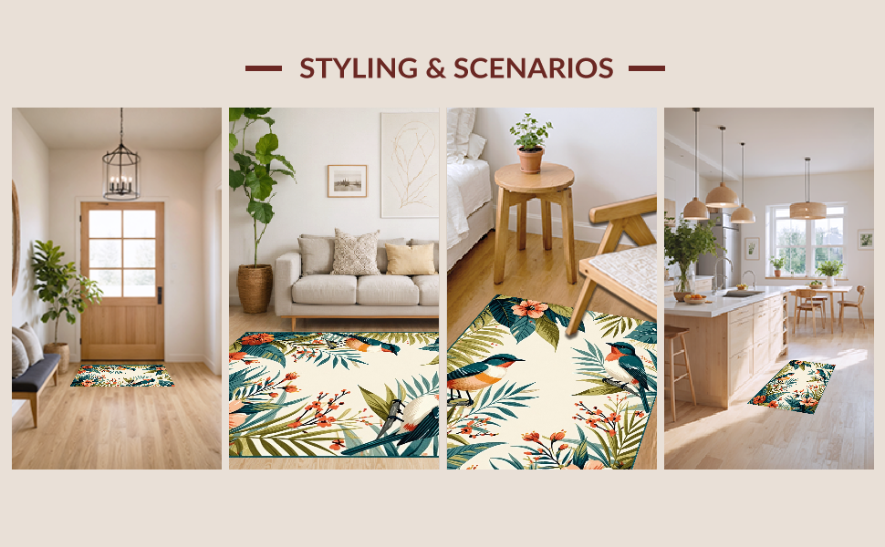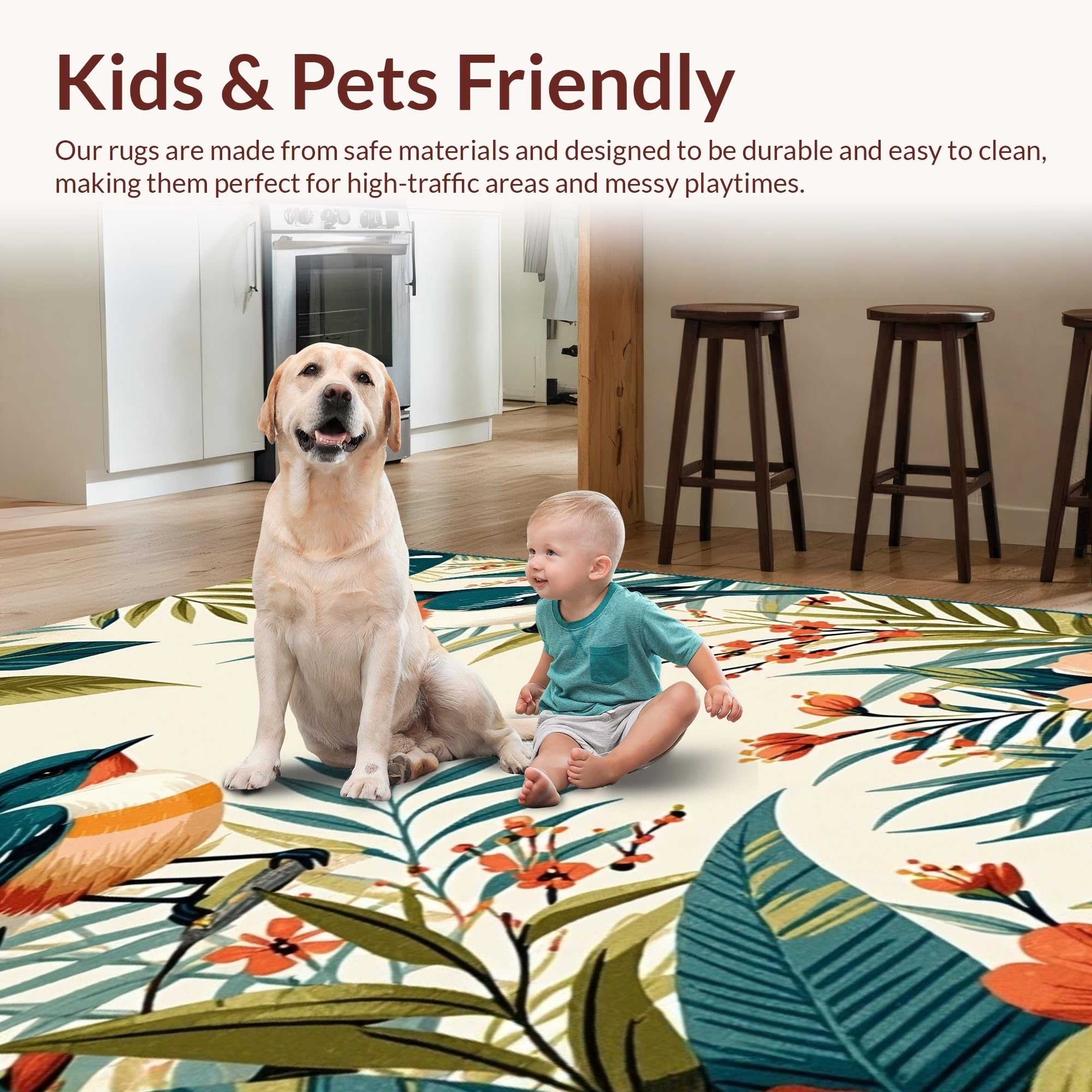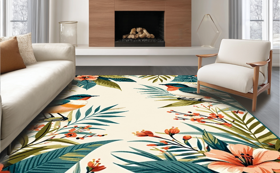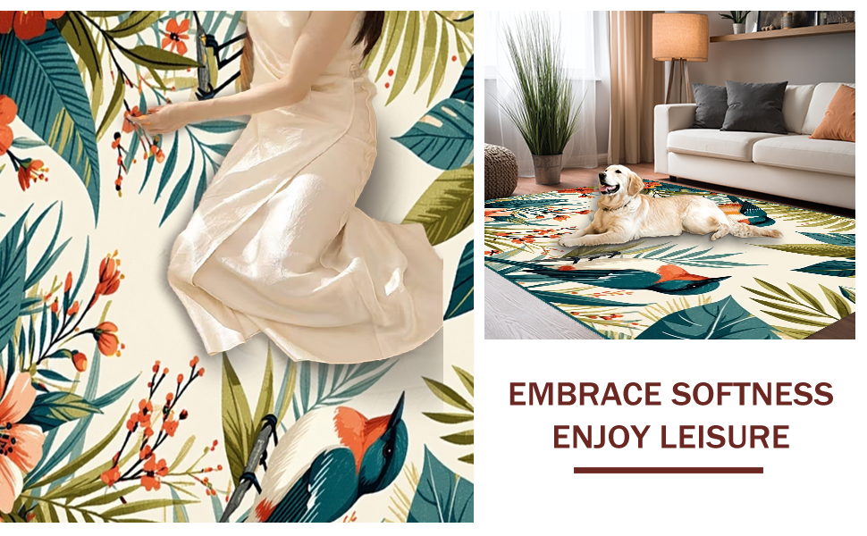 Ultra Soft Area Rug, Non Slip, Stain Resistant, Washable Area Rugs for Living Room, Bedroom, Striking Soft Pastel Floral Theme(Ivory) Overview: