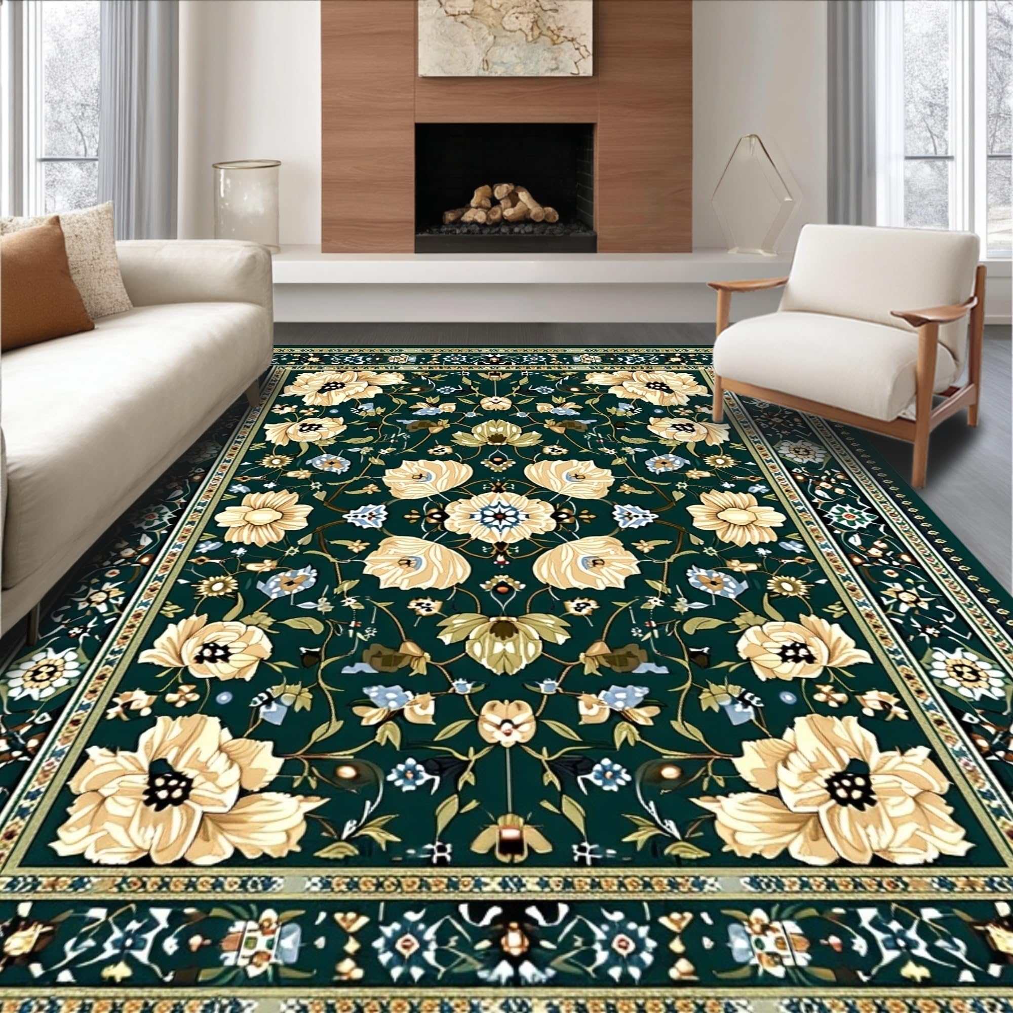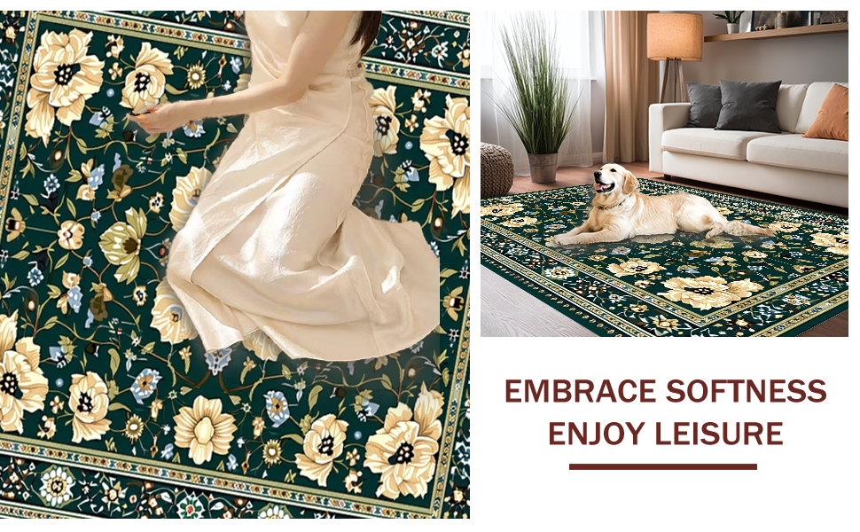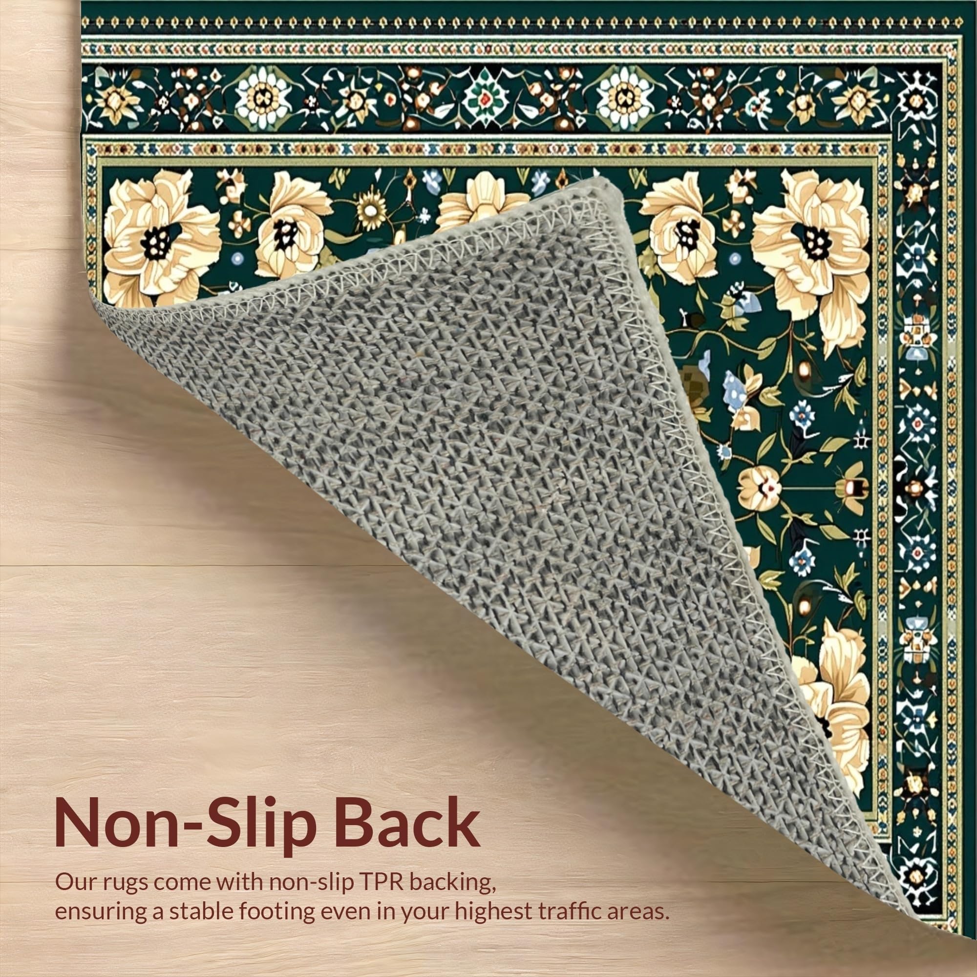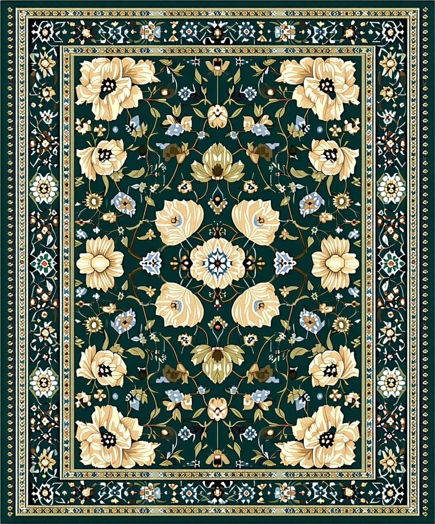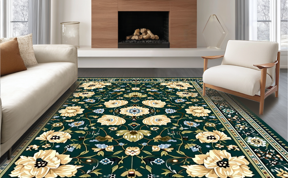 Ultra Soft Area Rug, Non Slip, Stain Resistant, Washable Area Rugs for Living Room, Bedroom, Striking Vintage Floral Elegance(Green) Overview: