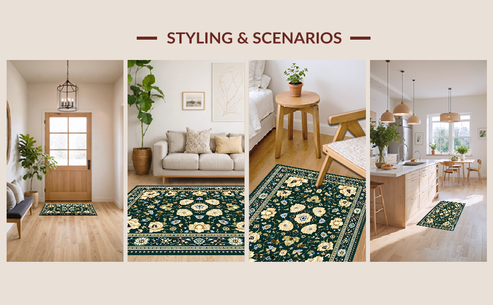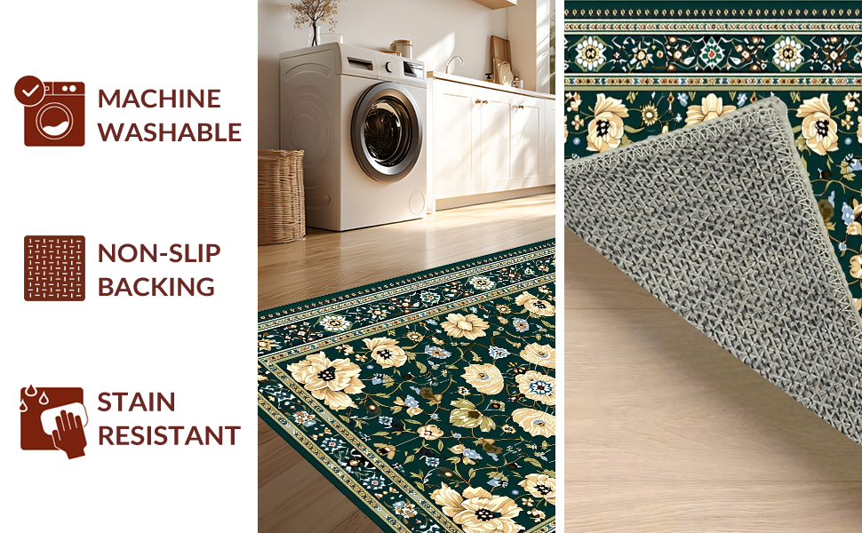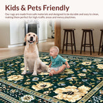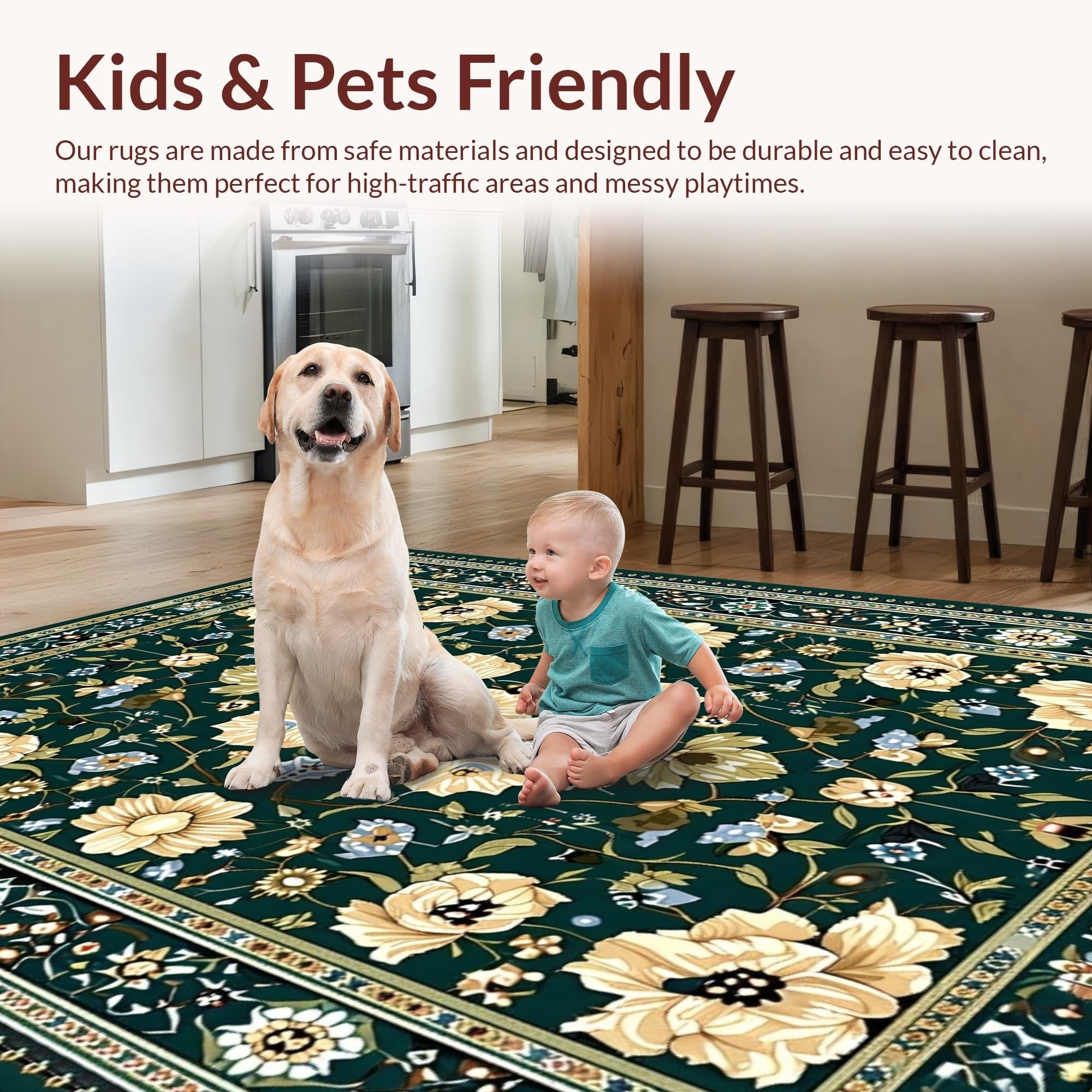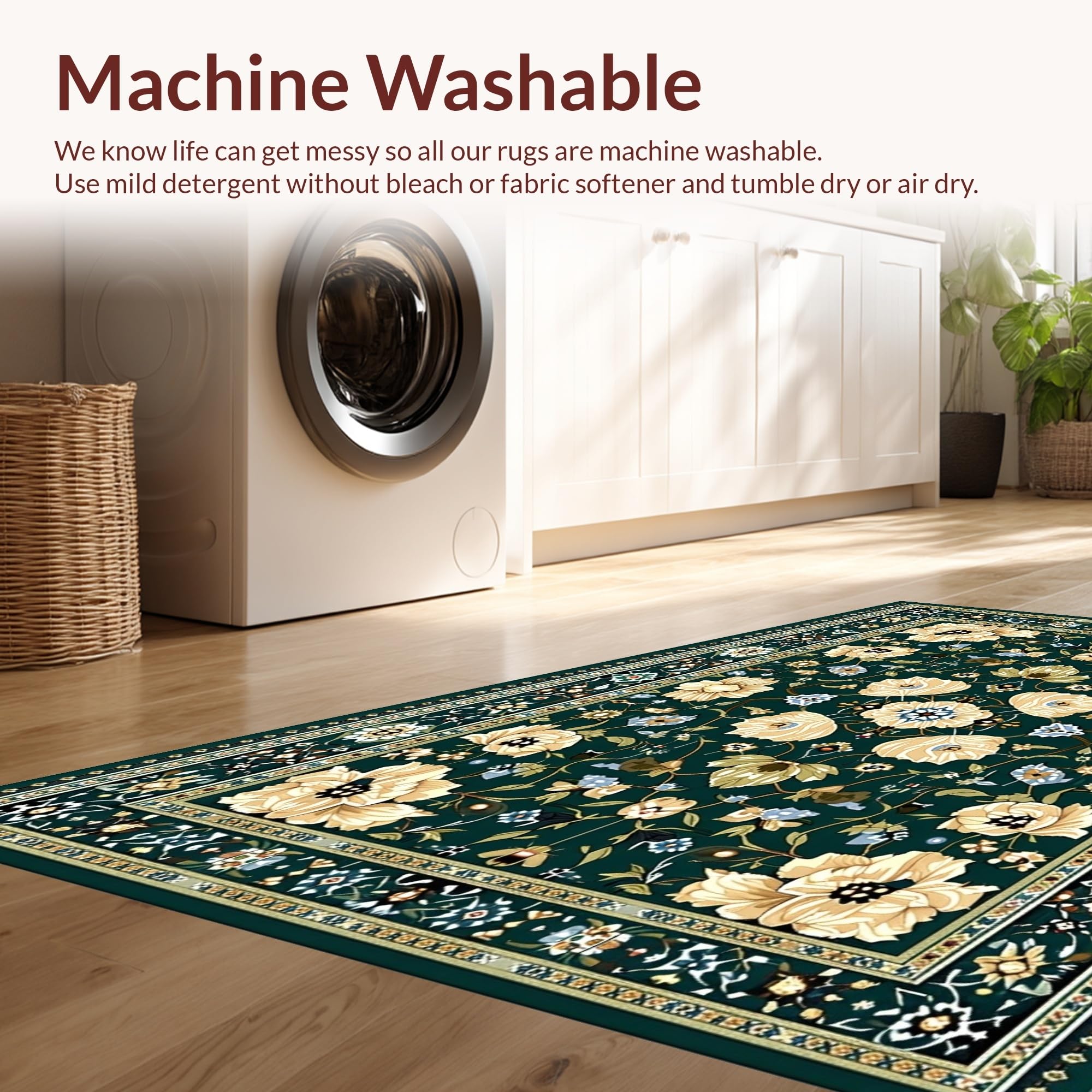 Ultra Soft Area Rug, Non Slip, Stain Resistant, Washable Area Rugs for Living Room, Bedroom, Striking Vintage Floral Elegance(Green) Overview: