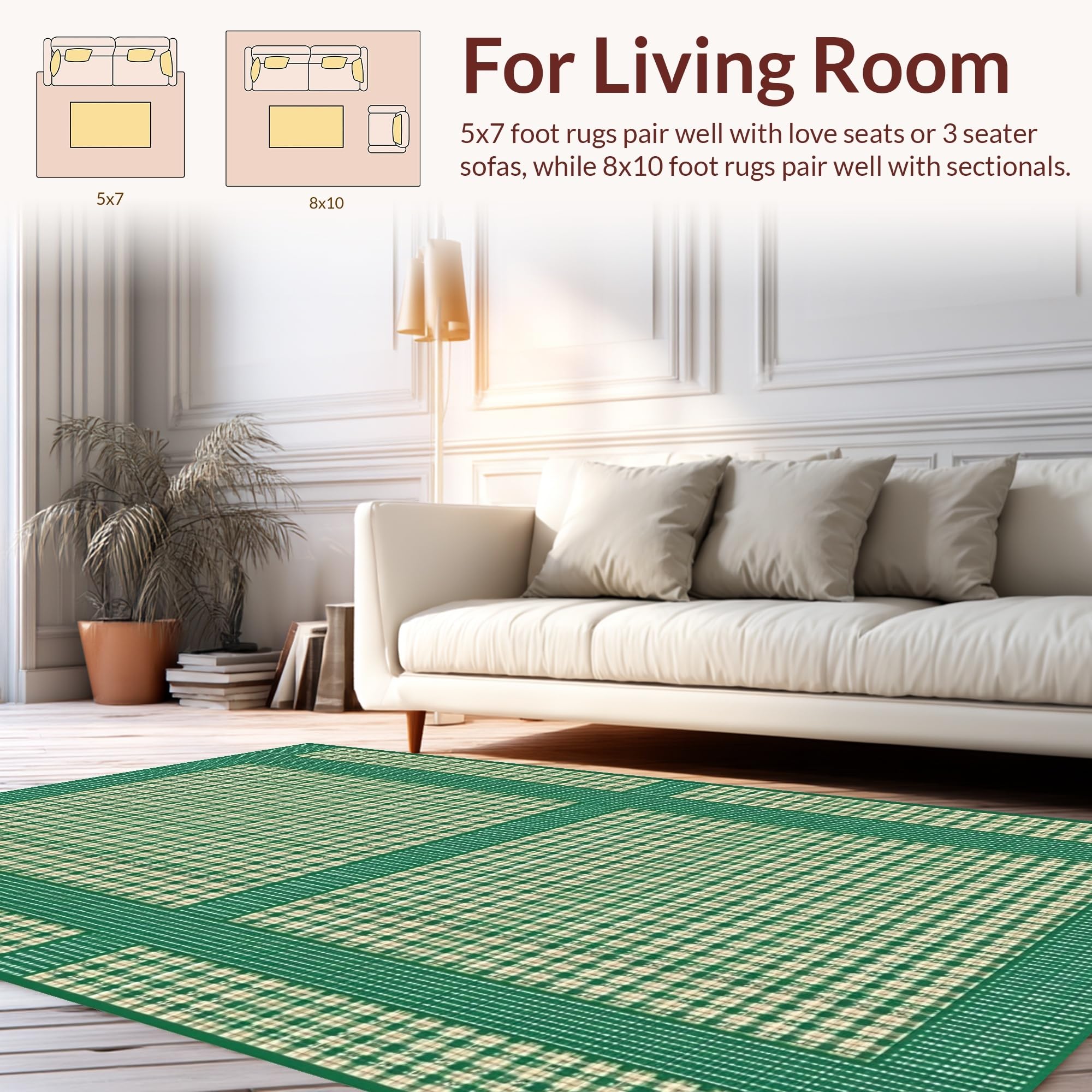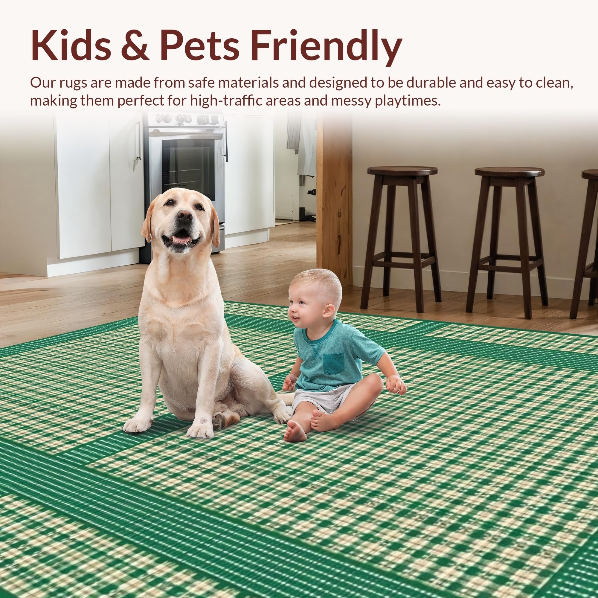 Ultra Soft Area Rug, Non Slip, Stain Resistant, Washable Area Rugs for Living Room, Bedroom, Striking Vintage Floral with Earthy Greens(Green) Overview: