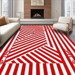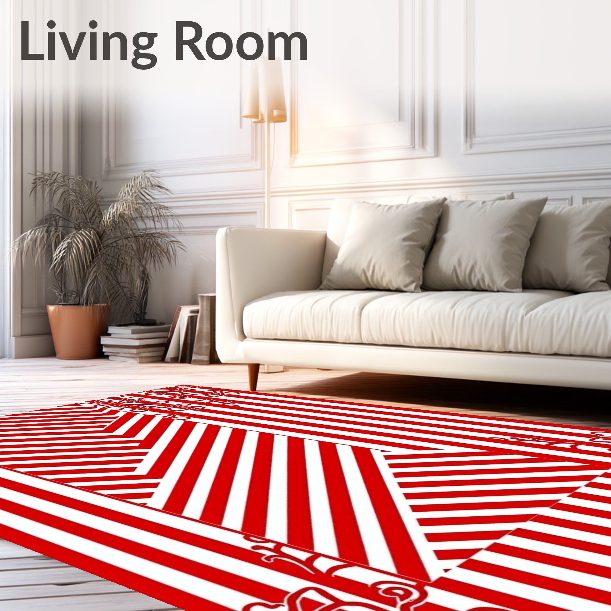 Ultra Soft Area Rug, Non Slip, Stain Resistant, Washable Area Rugs for Living Room, Bedroom, Stripe Holiday with Festive Ribbon Inspired Bands(Red) Overview: