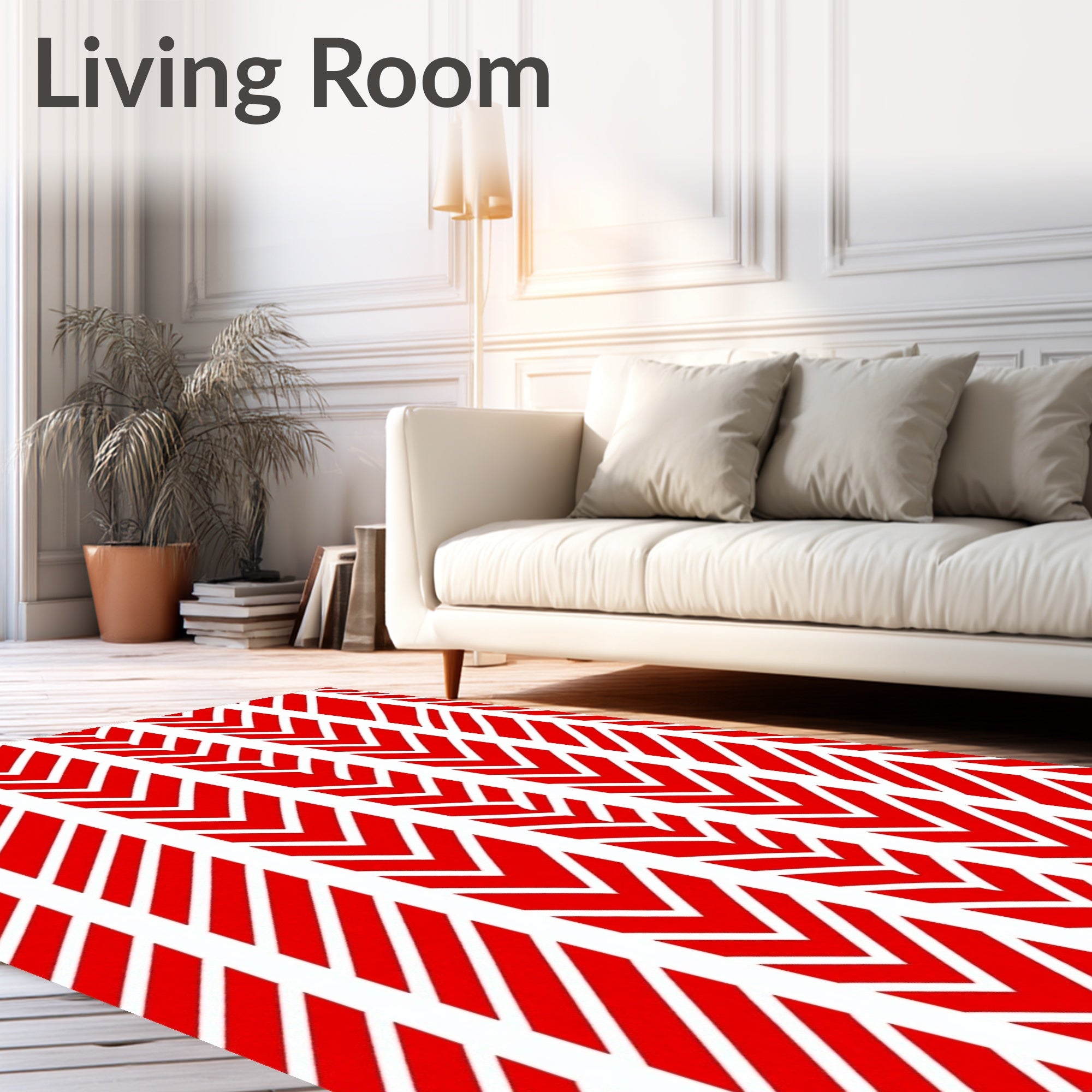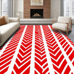 Ultra Soft Area Rug, Non Slip, Stain Resistant, Washable Area Rugs for Living Room, Bedroom, Stripe Interlocking Bar Festive Motif(Red) Overview: