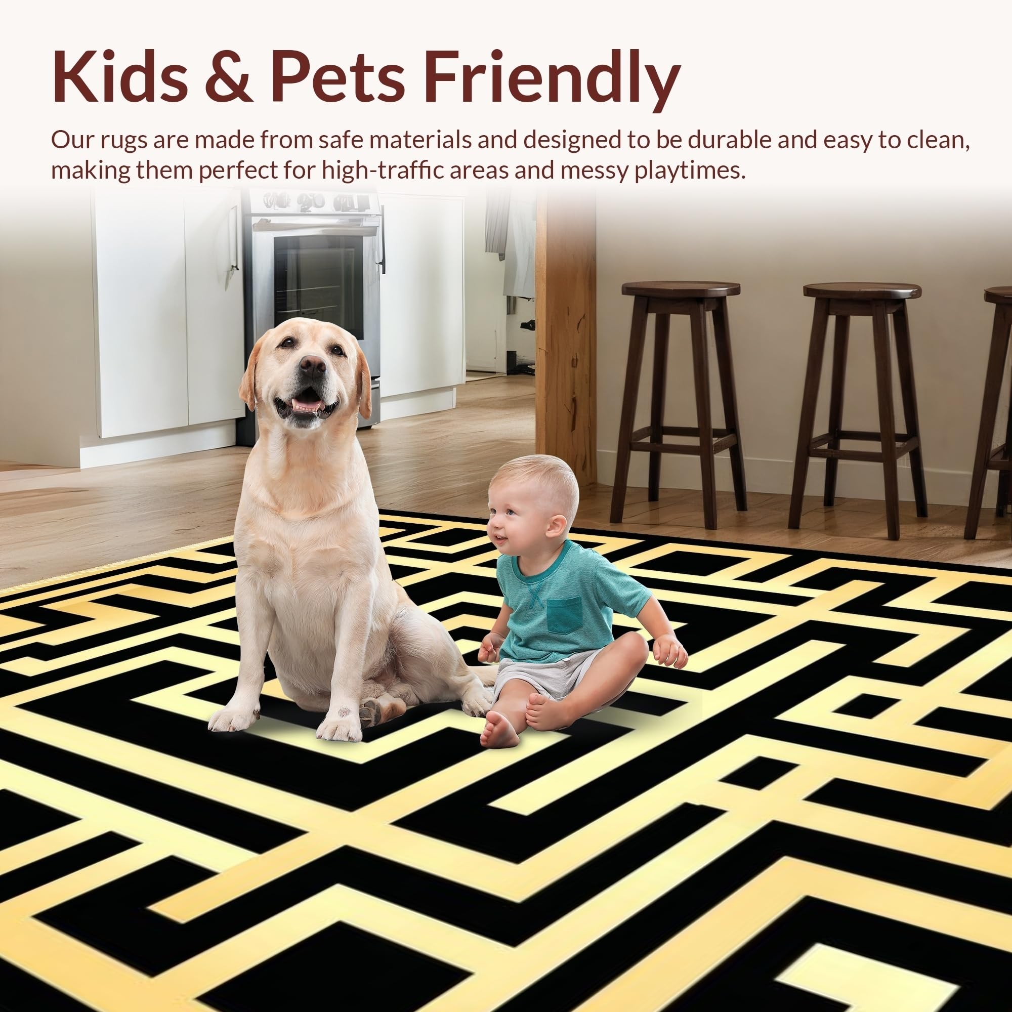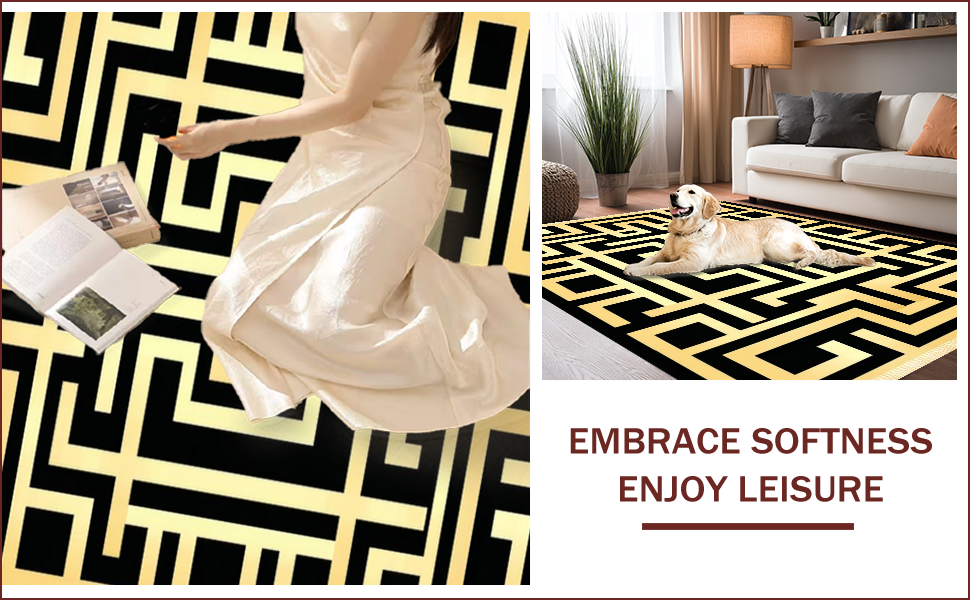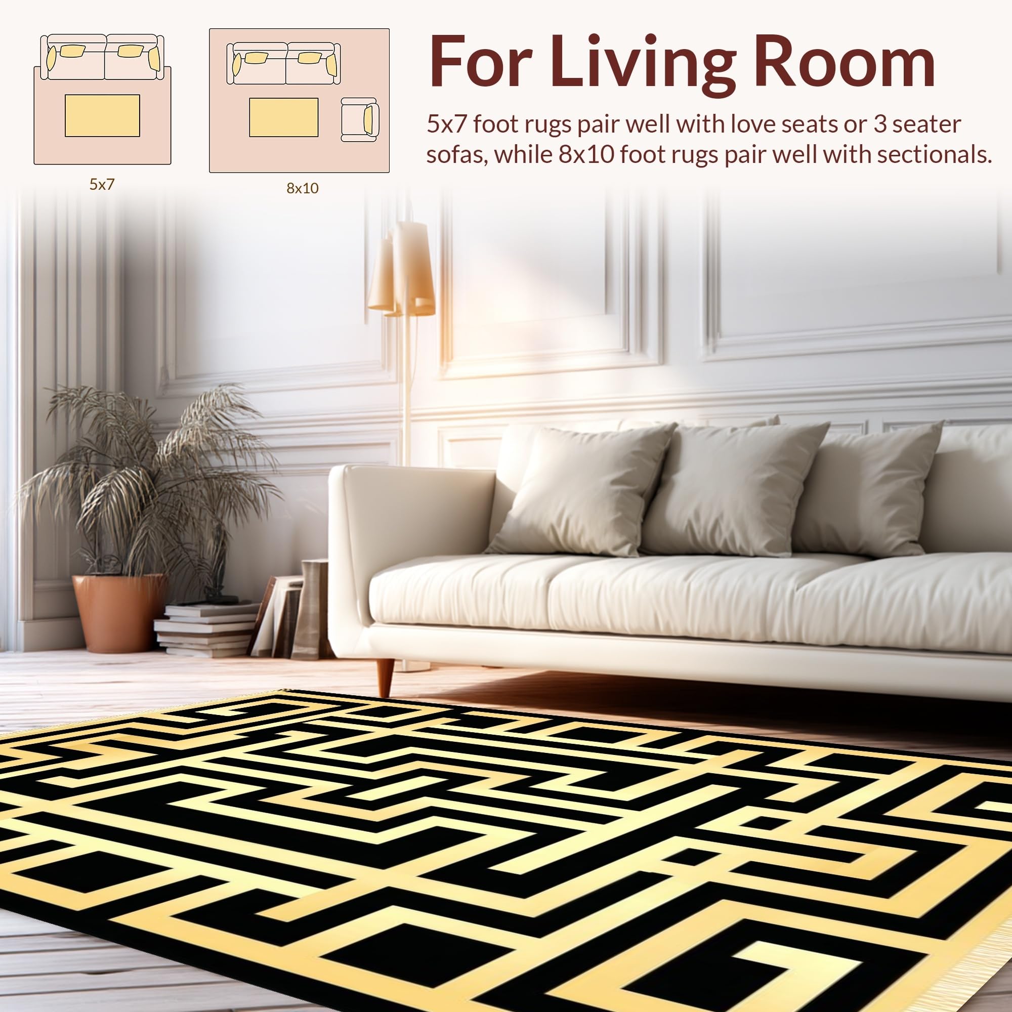 Ultra Soft Area Rug, Non Slip, Stain Resistant, Washable Area Rugs for Living Room, Bedroom, Stylish 3D Monochrome Design(Gold) Overview: