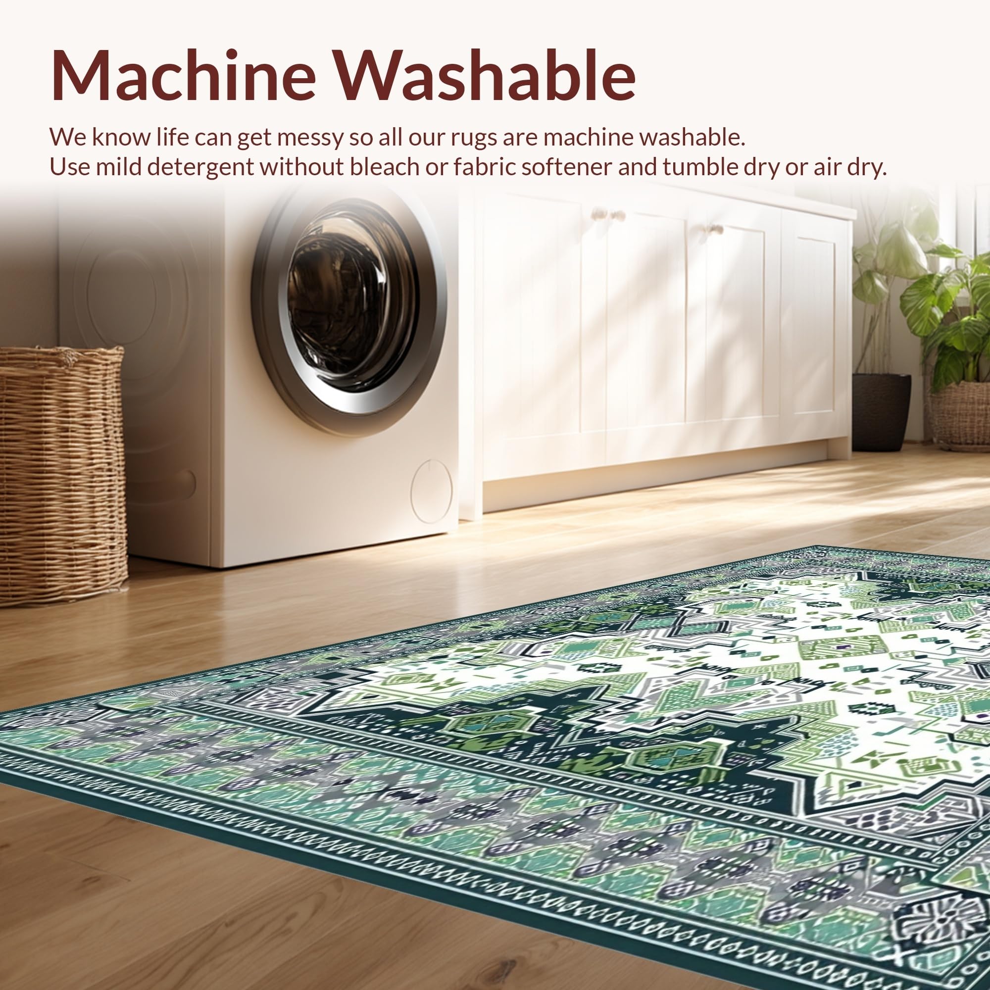 - Machine Washable: Our rugs can be easily thrown in the wash machine.