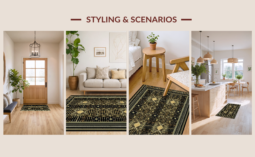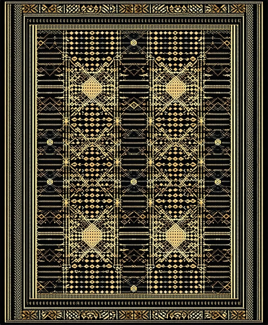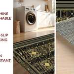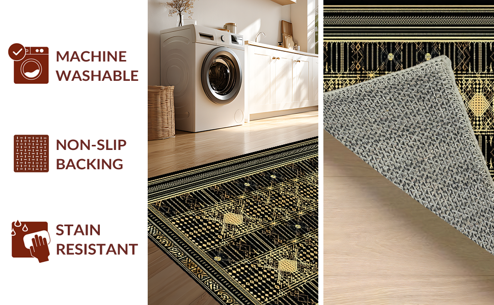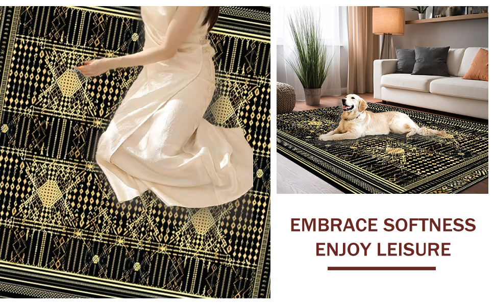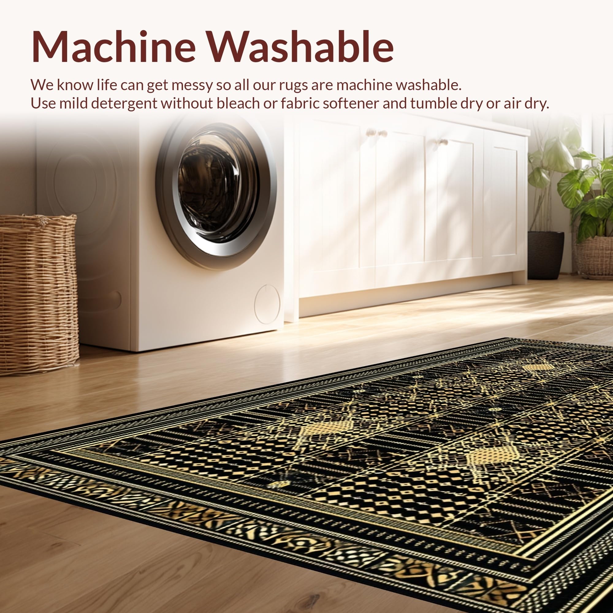 Ultra Soft Area Rug, Non Slip, Stain Resistant, Washable Area Rugs for Living Room, Bedroom, Stylish Abstract Black and Gold Motif(Black) Overview: