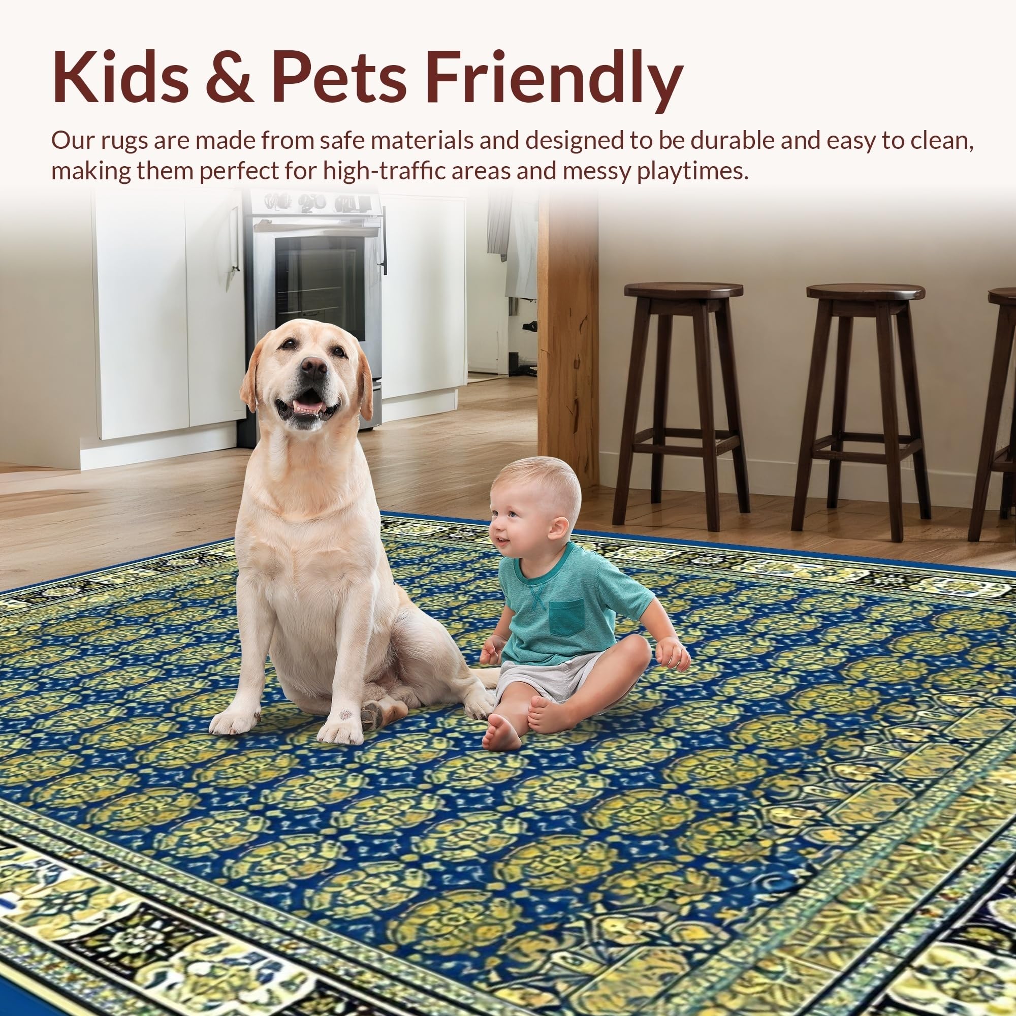 Ultra Soft Area Rug, Non Slip, Stain Resistant, Washable Area Rugs for Living Room, Bedroom, Stylish Abstract Blue Tones(Blue) Overview: