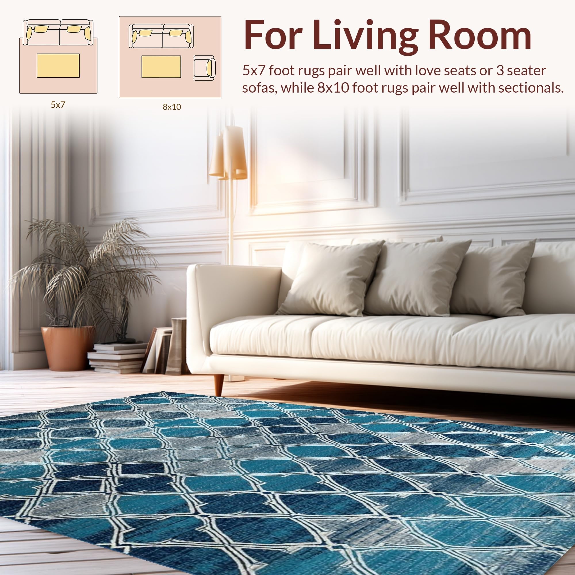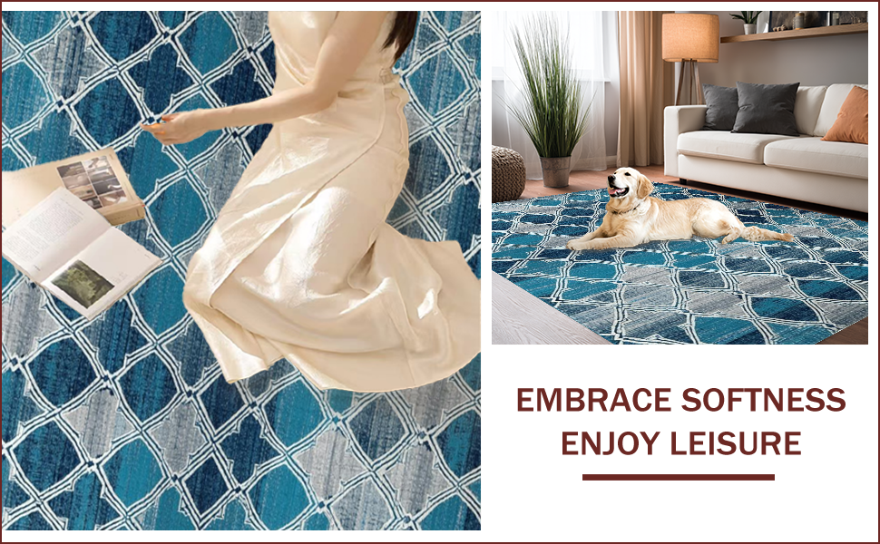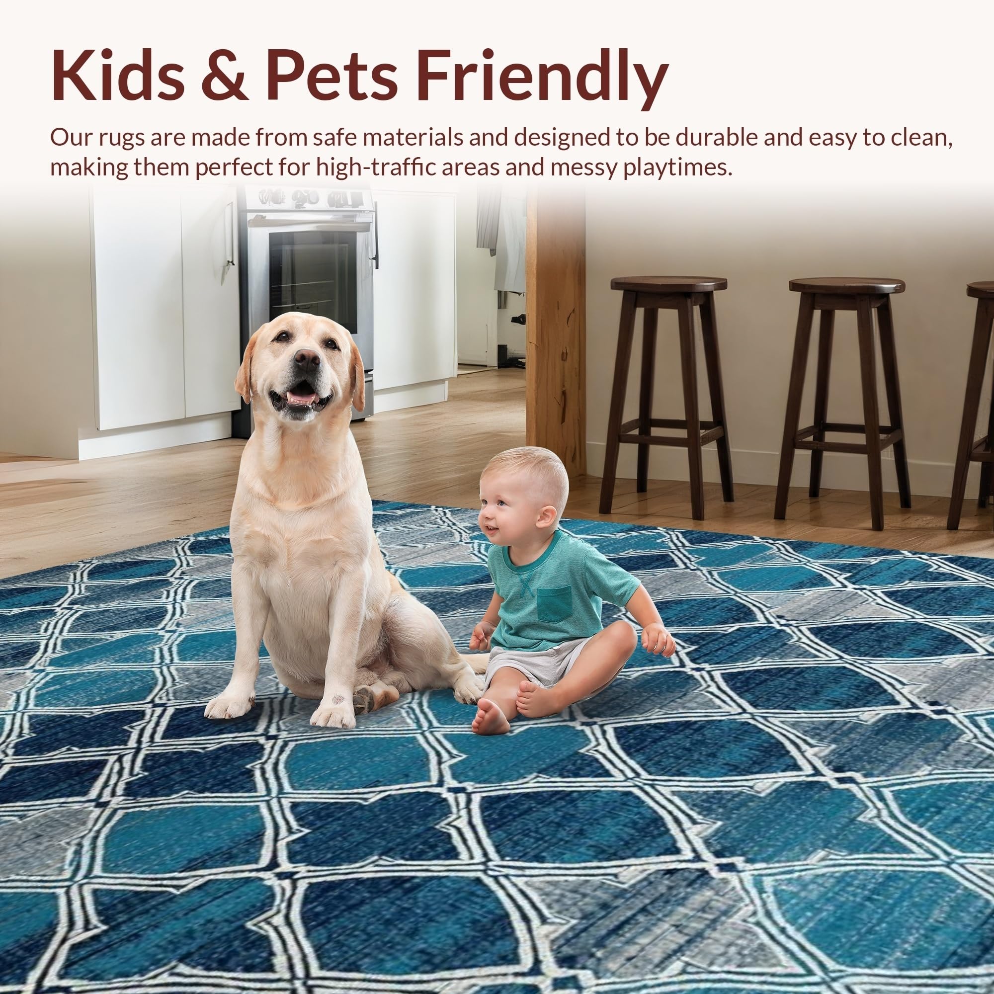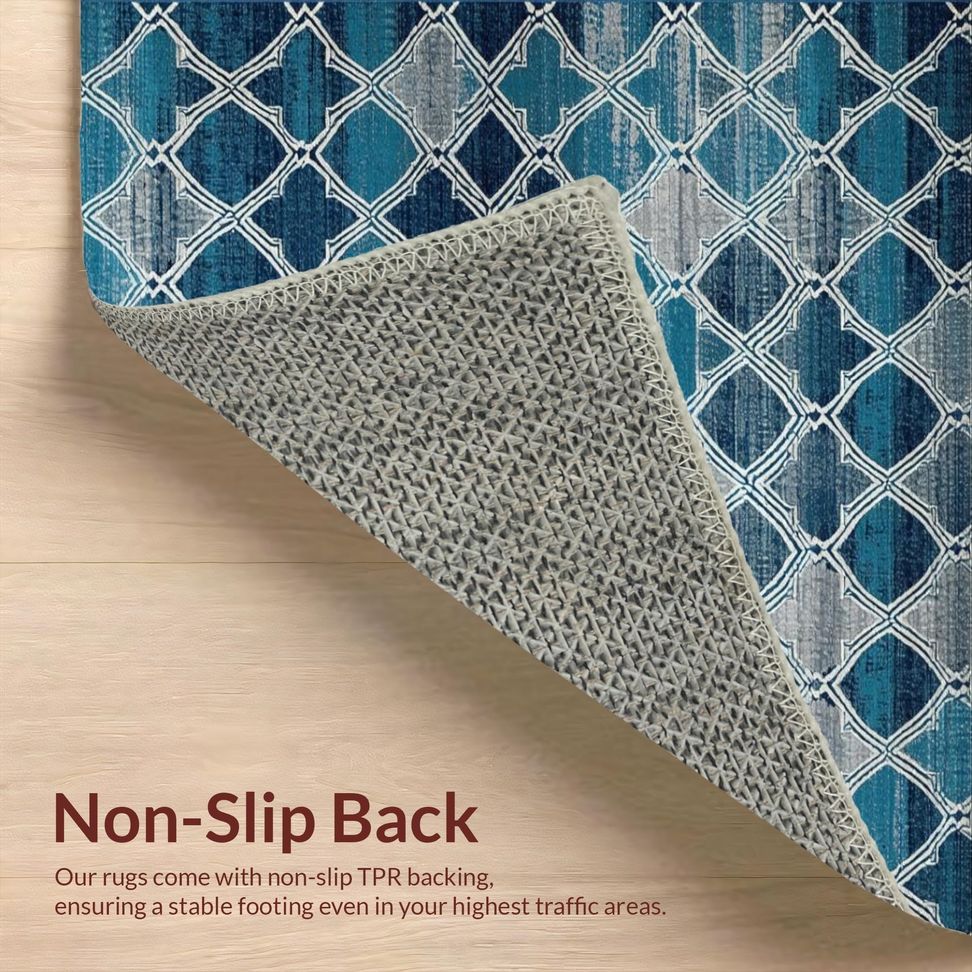 Ultra Soft Area Rug, Non Slip, Stain Resistant, Washable Area Rugs for Living Room, Bedroom, Stylish Abstract Floral Arrangement(Blue) Overview: