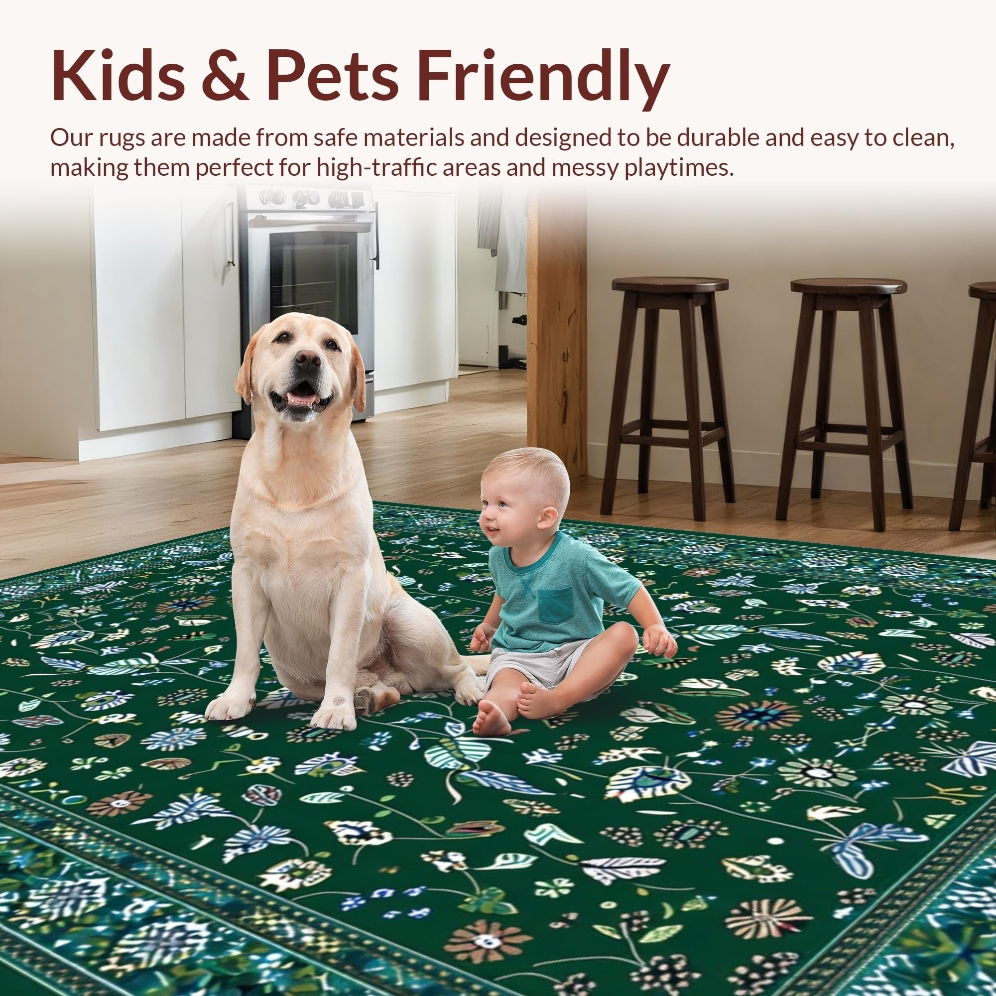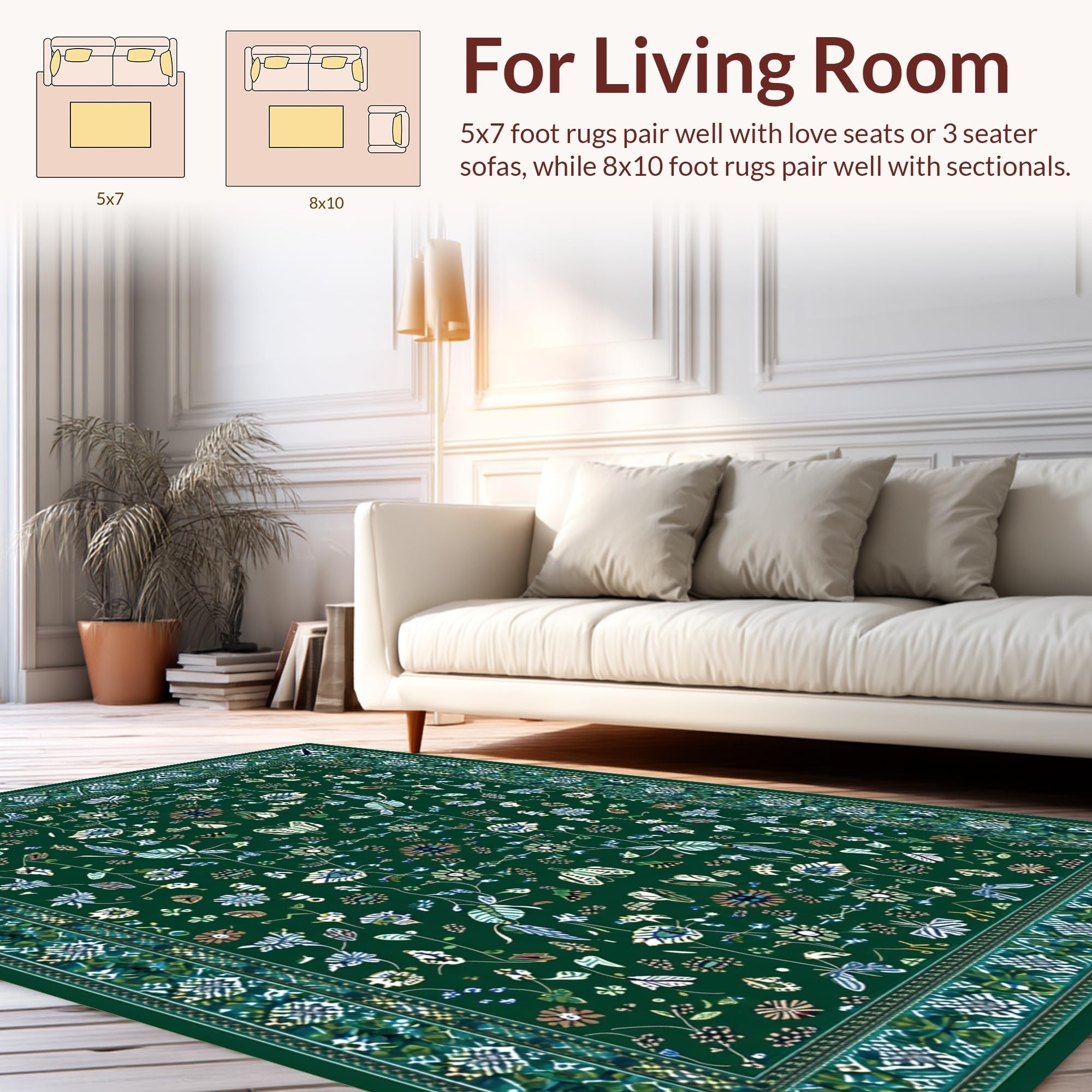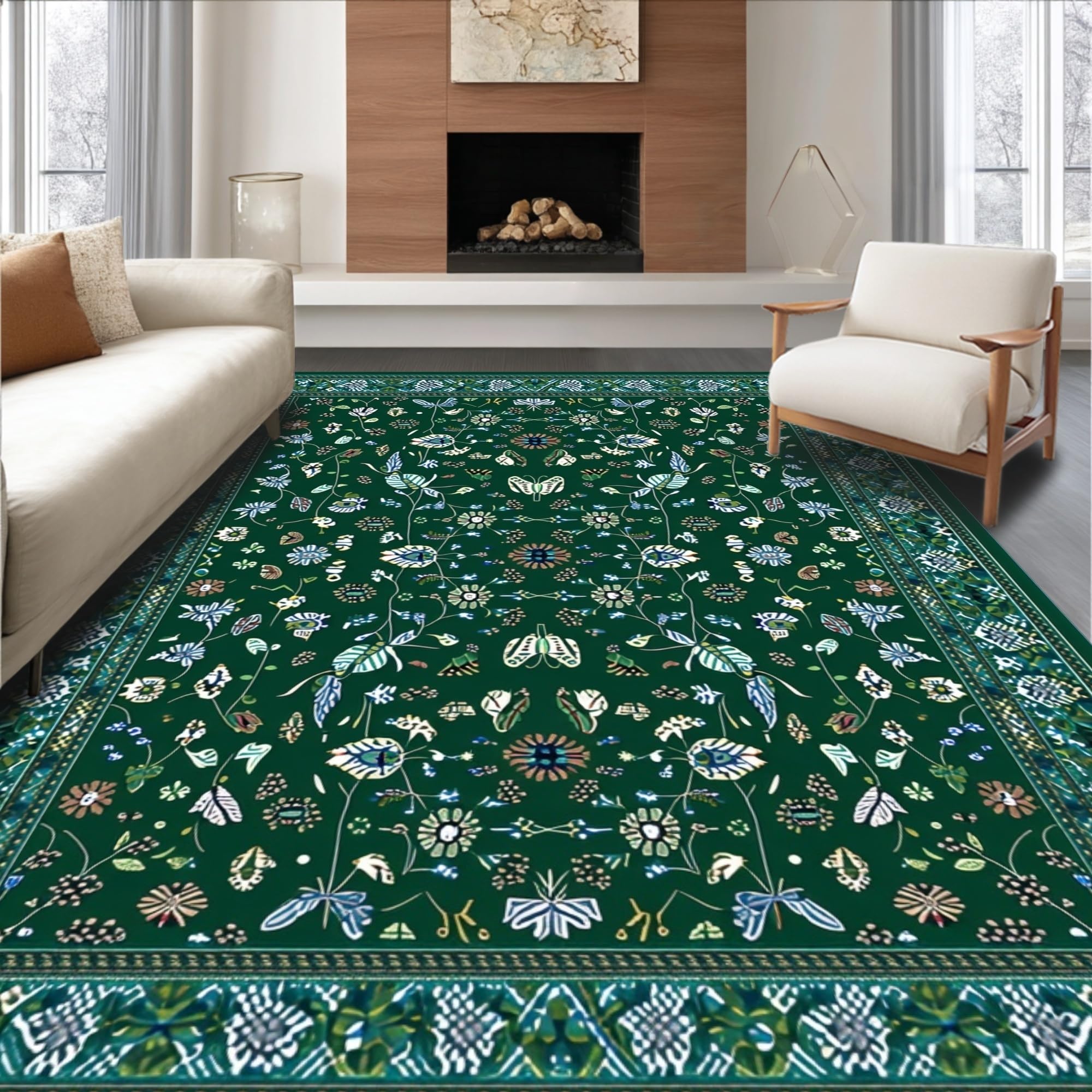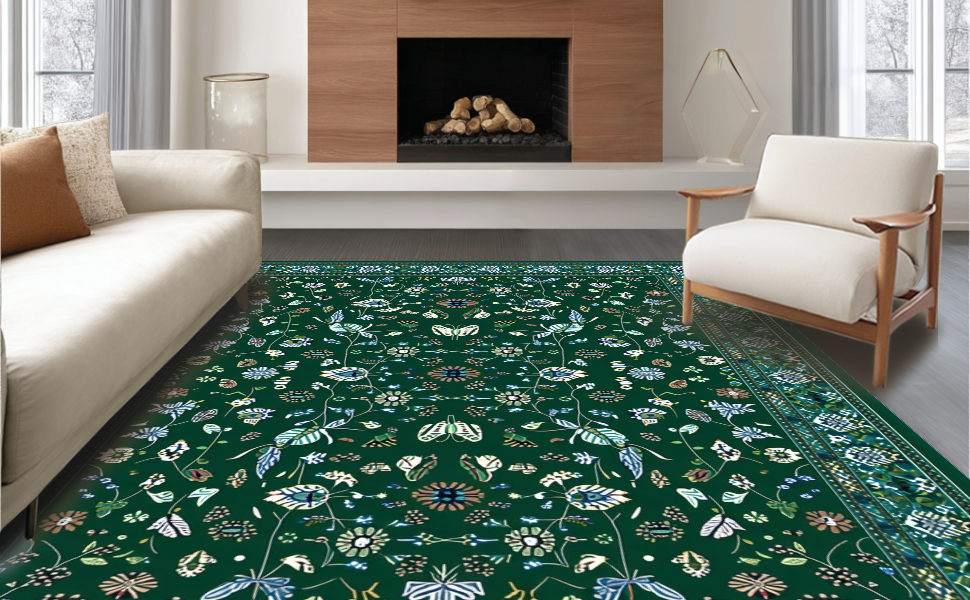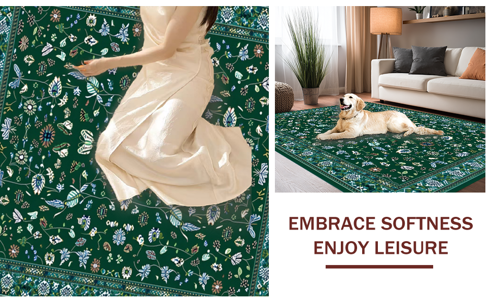 Ultra Soft Area Rug, Non Slip, Stain Resistant, Washable Area Rugs for Living Room, Bedroom, Stylish Abstract Green Aesthetic(Green) Overview: