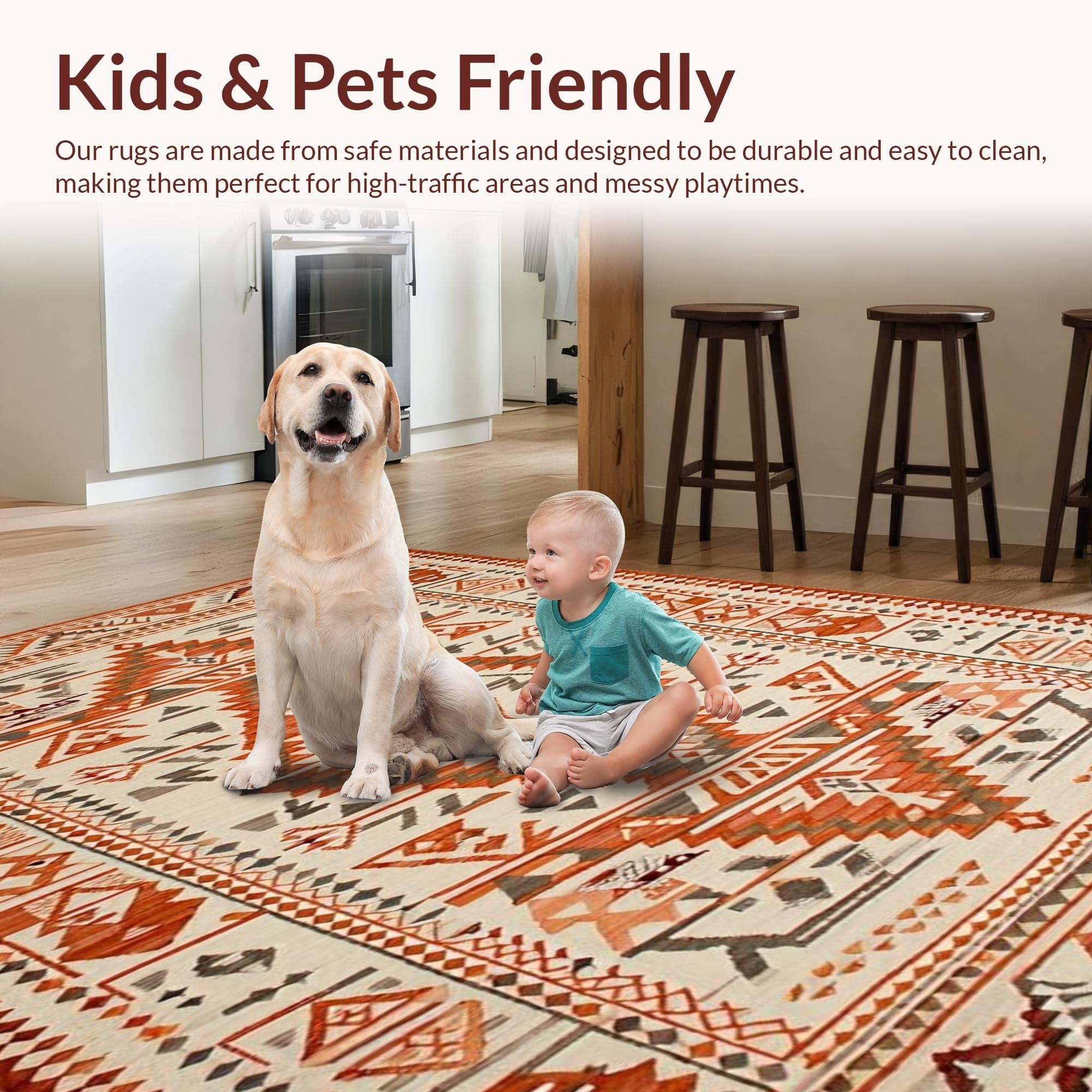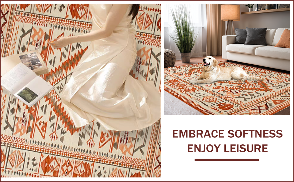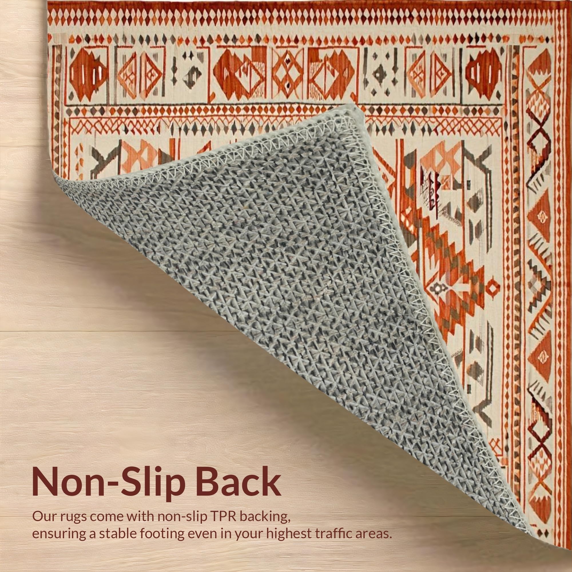 Ultra Soft Area Rug, Non Slip, Stain Resistant, Washable Area Rugs for Living Room, Bedroom, Stylish Abstract Linear Aesthetic(Orange) Overview: