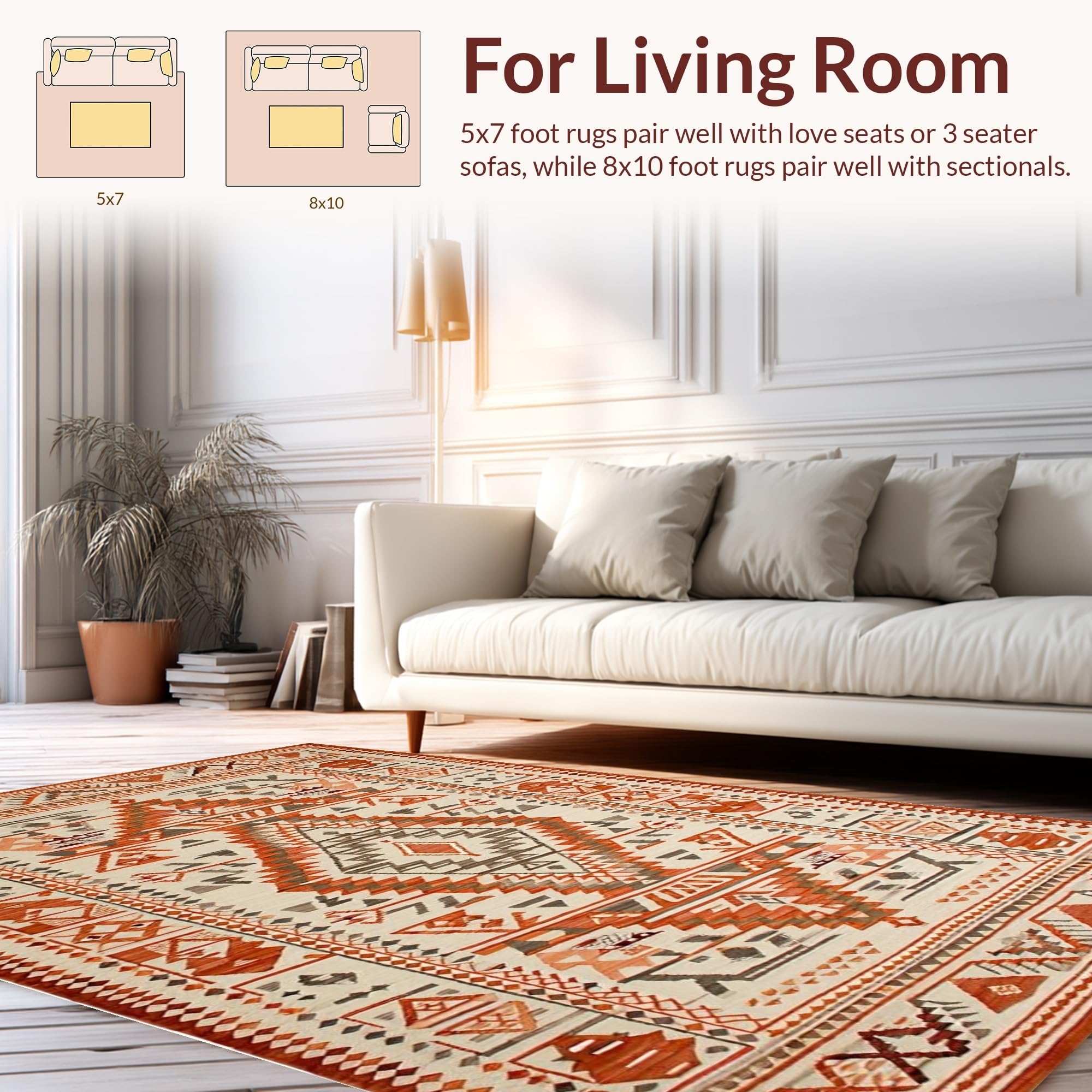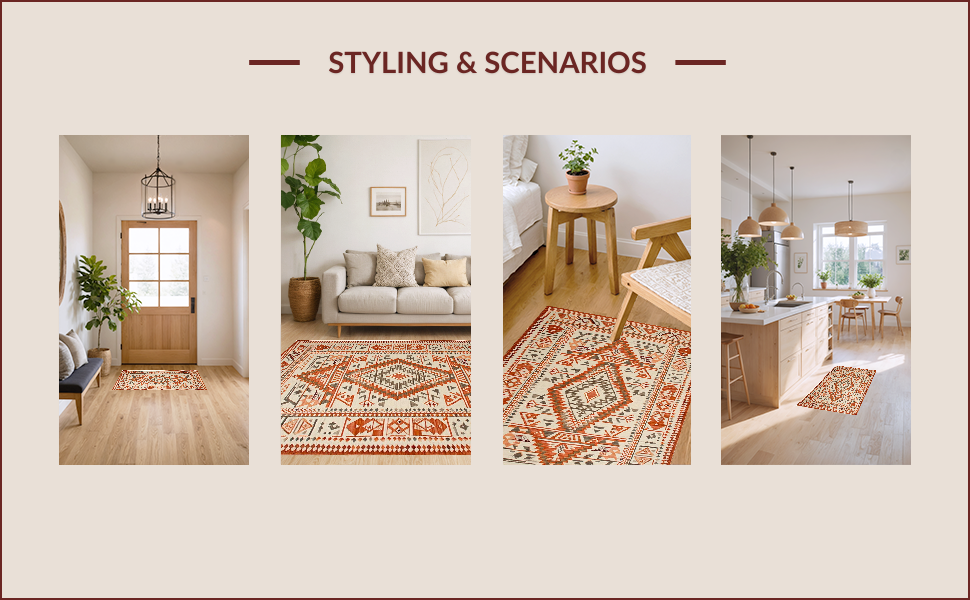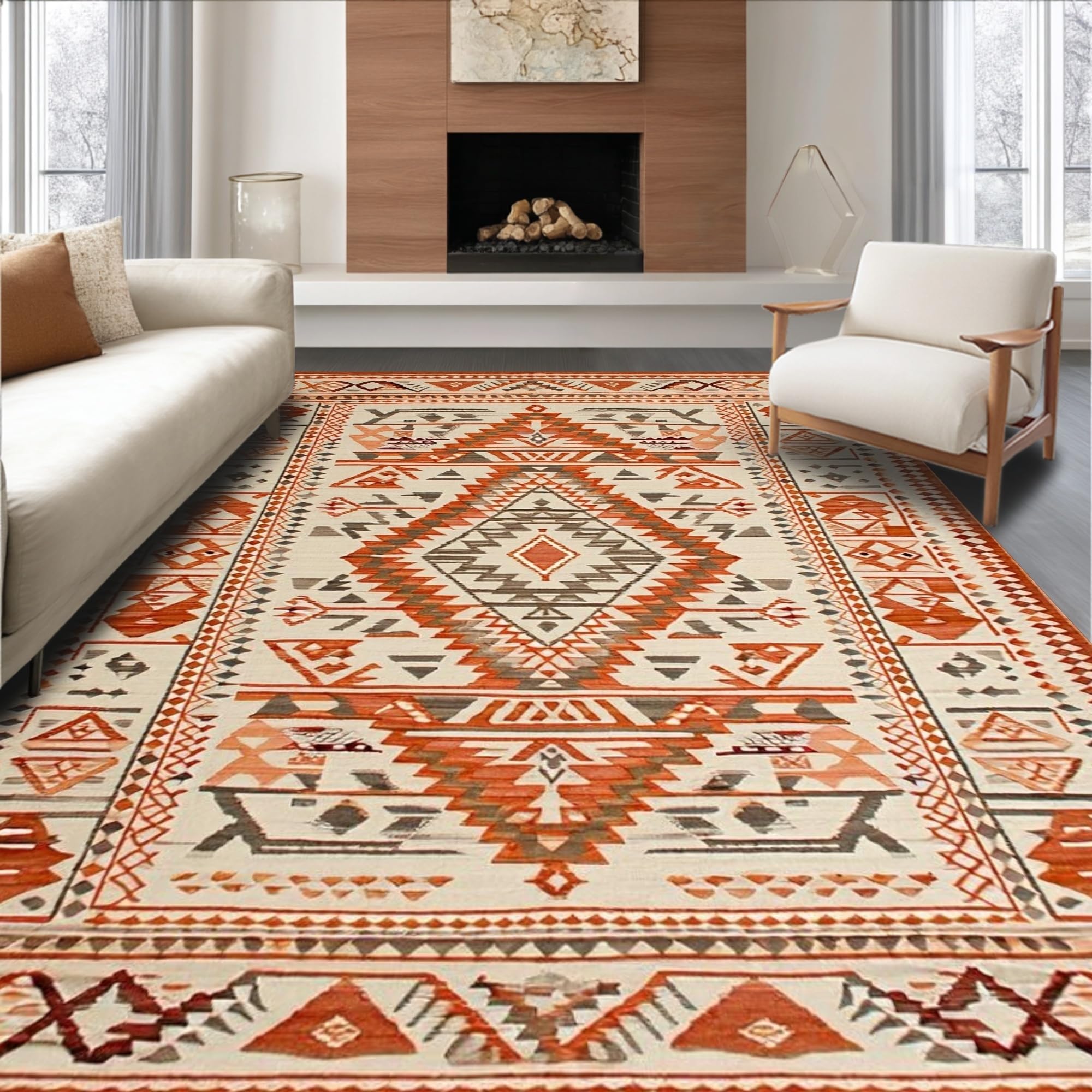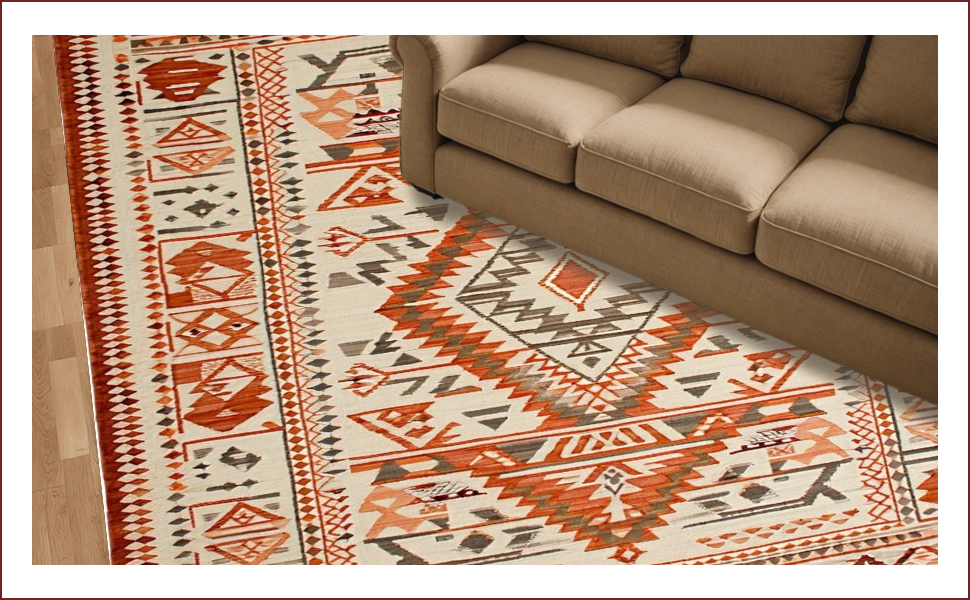 Ultra Soft Area Rug, Non Slip, Stain Resistant, Washable Area Rugs for Living Room, Bedroom, Stylish Abstract Linear Aesthetic(Orange) Overview: