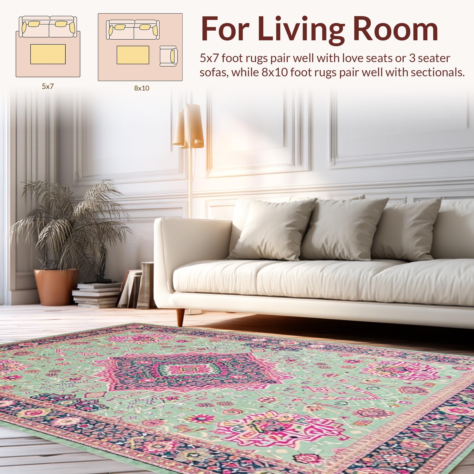 Ultra Soft Area Rug, Non Slip, Stain Resistant, Washable Area Rugs for Living Room, Bedroom, Stylish Abstract Medallion Theme(Ivory) Overview: