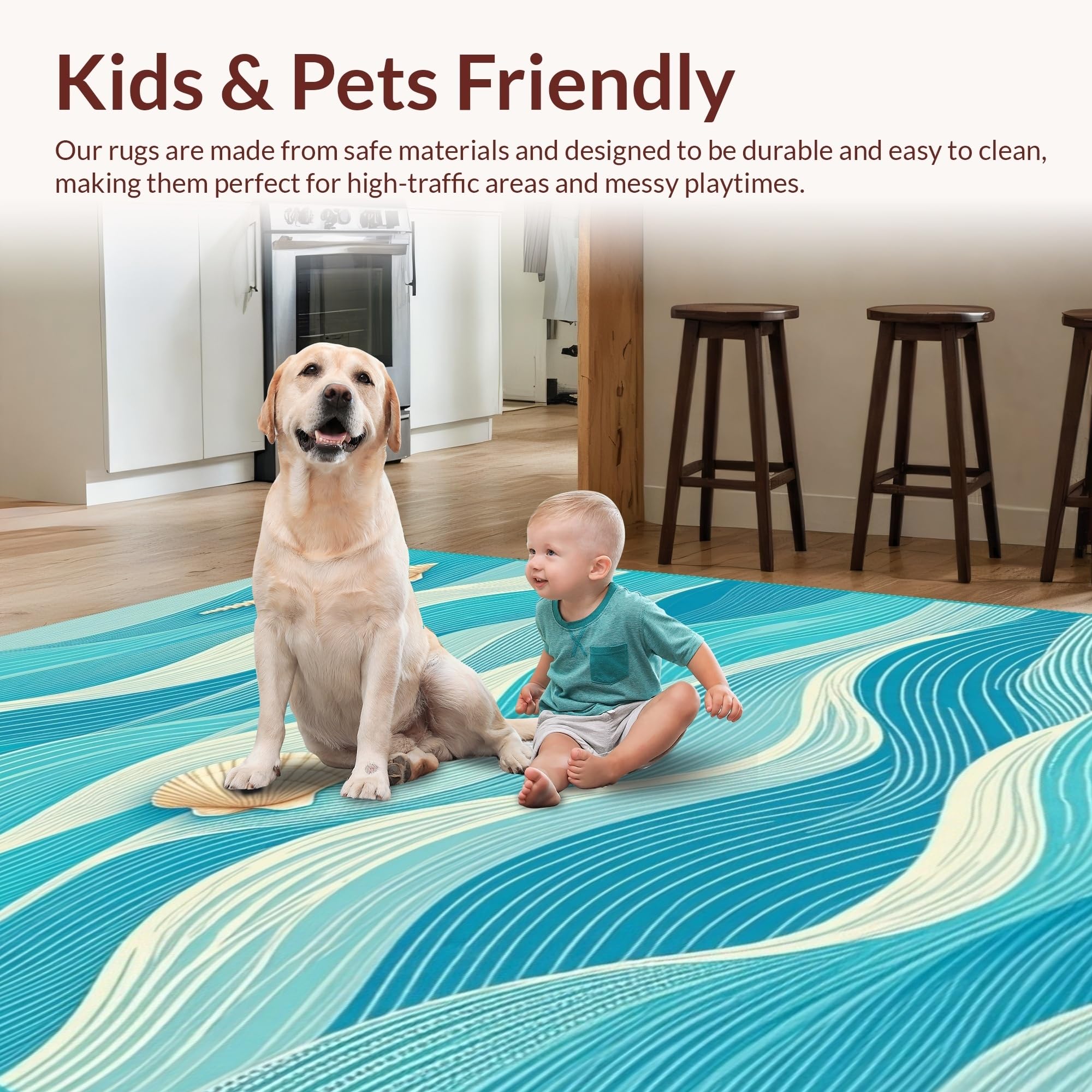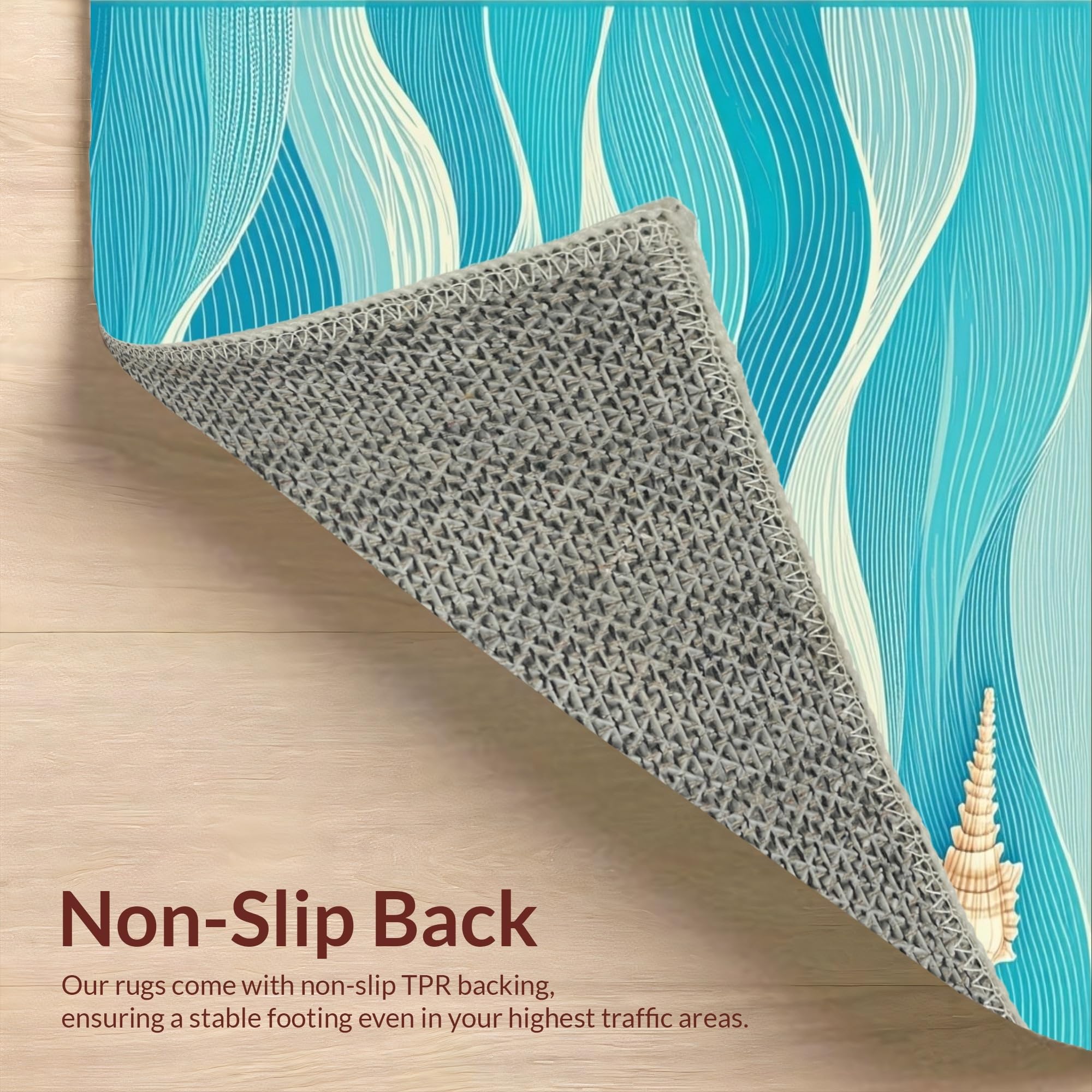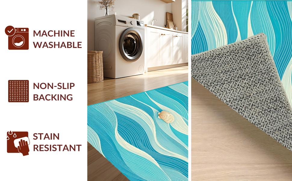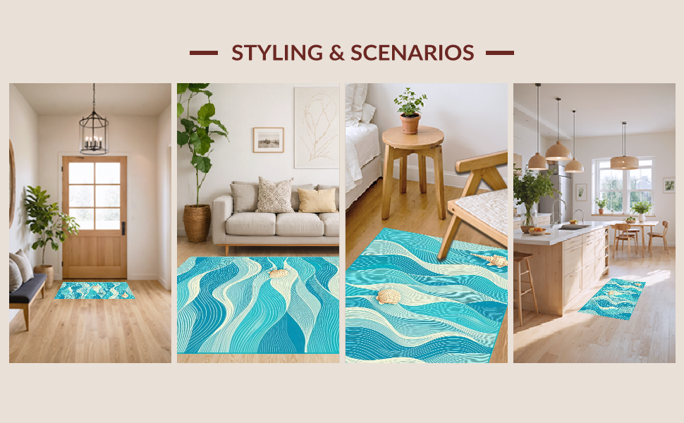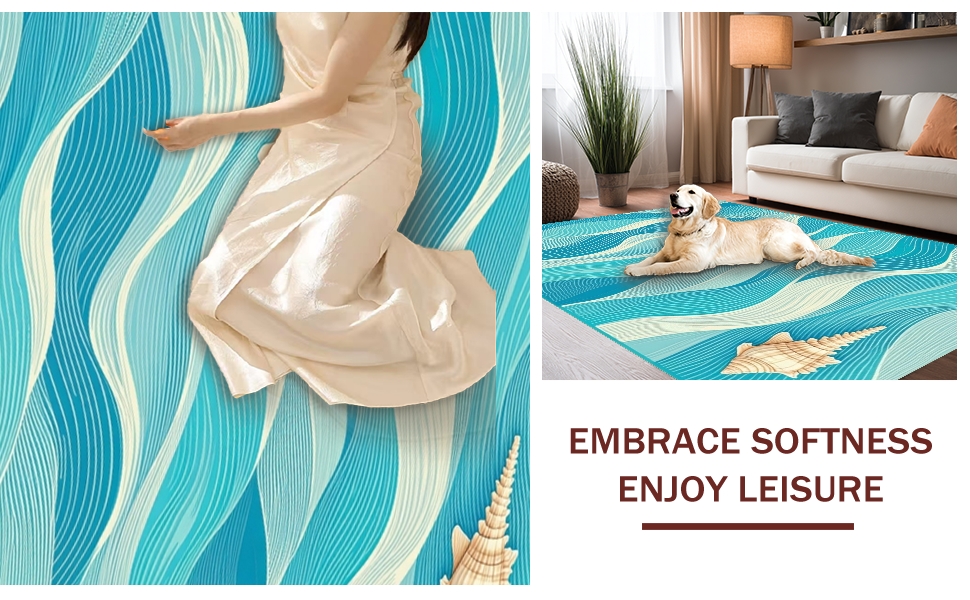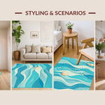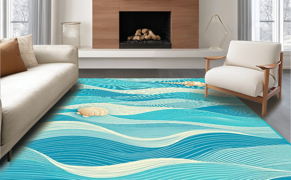 Ultra Soft Area Rug, Non Slip, Stain Resistant, Washable Area Rugs for Living Room, Bedroom, Stylish Abstract Seaside Elements(Blue) Overview: